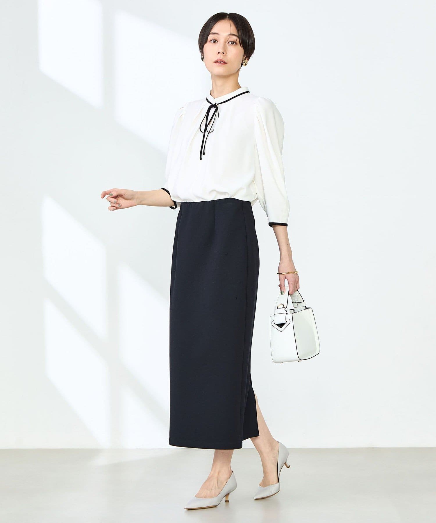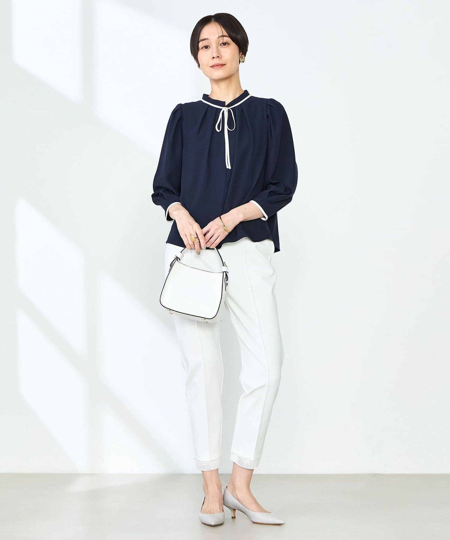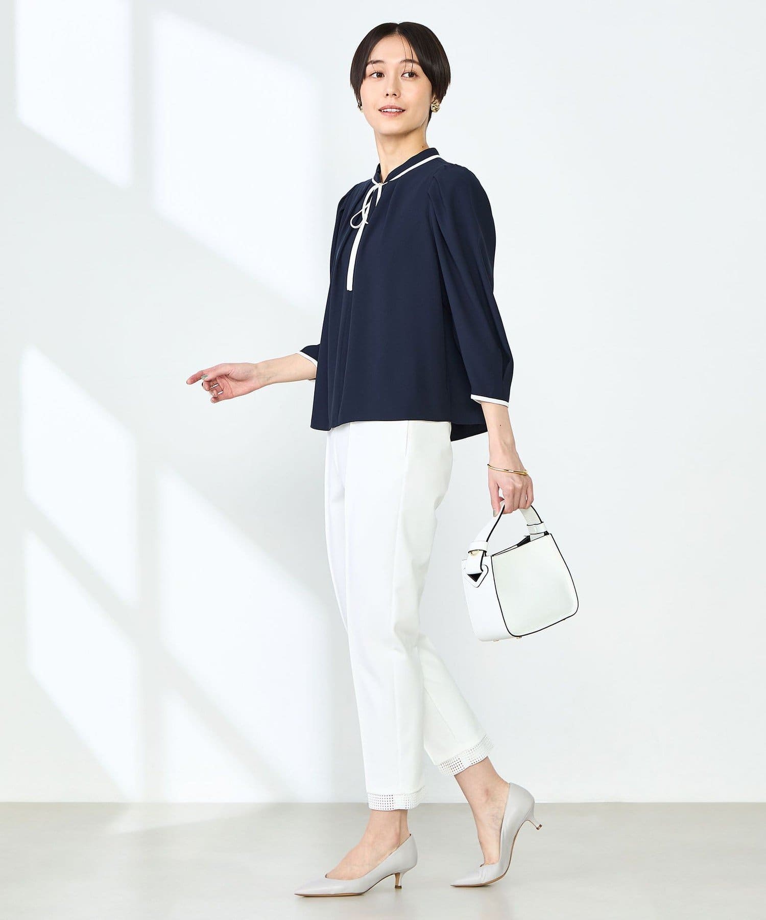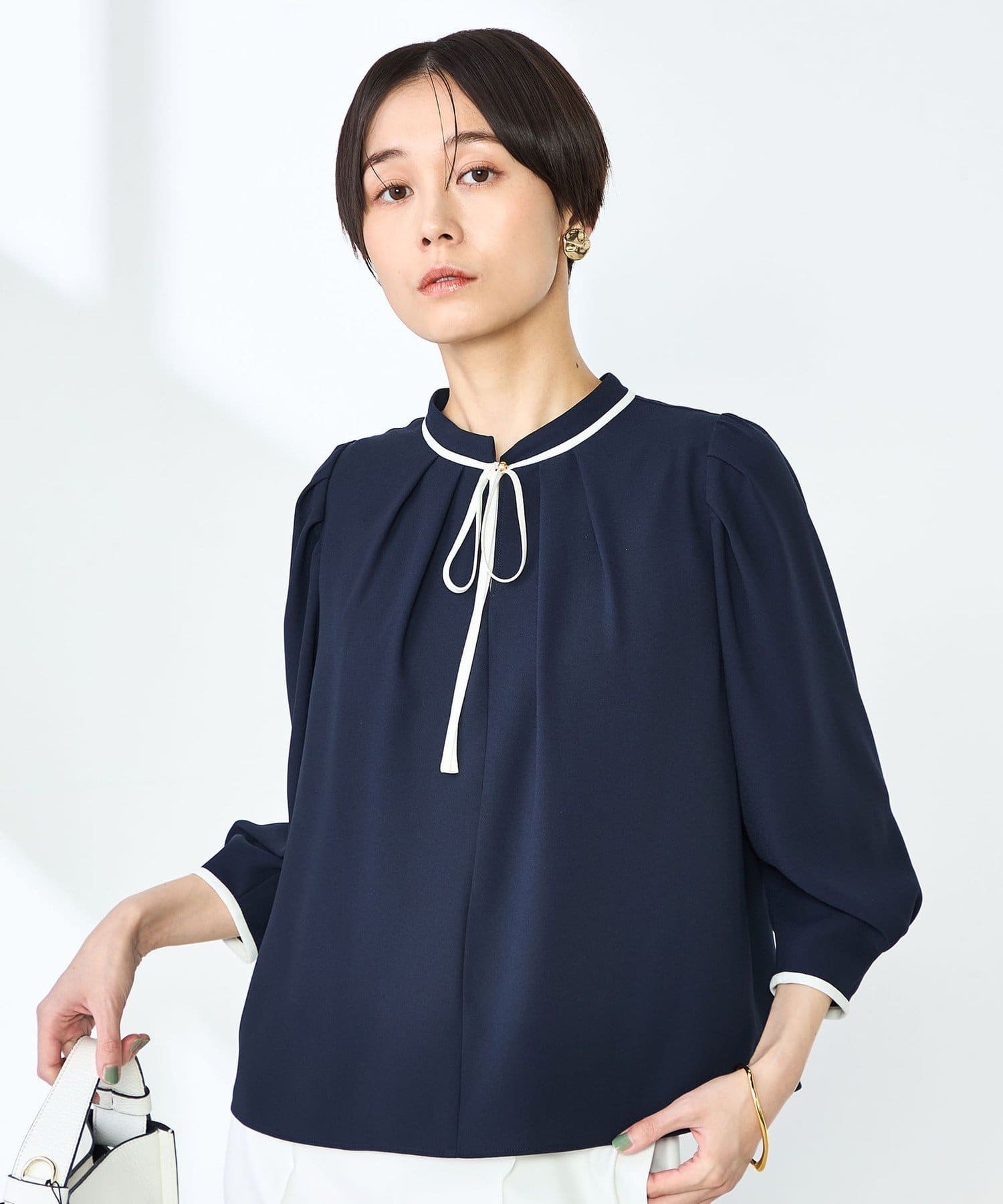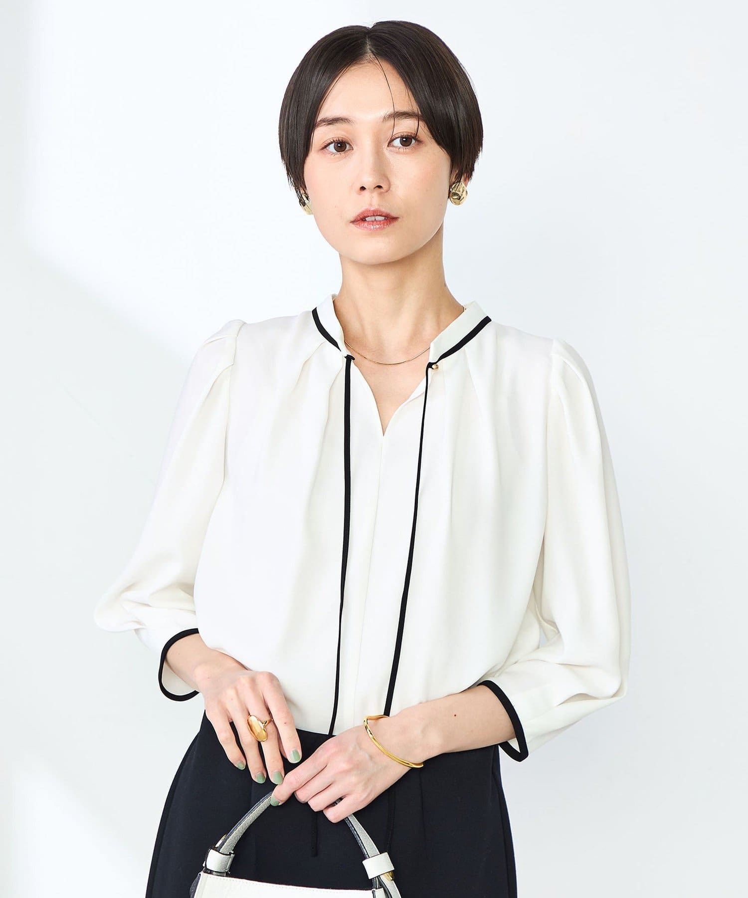 ・定番人気のきちんと感と上品さのあるリボン付きブラウス