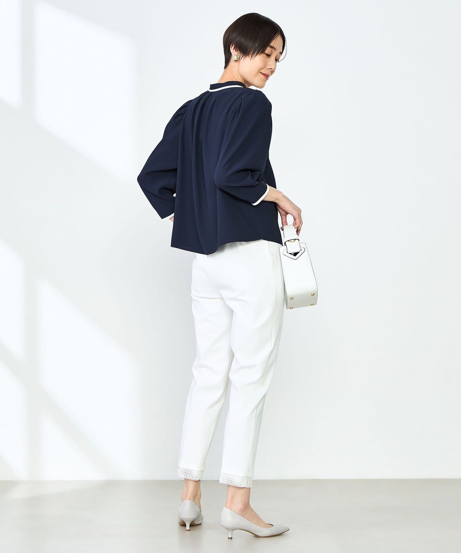 ・配色パイピングがアクセントになり、1枚でも華やかな印象に