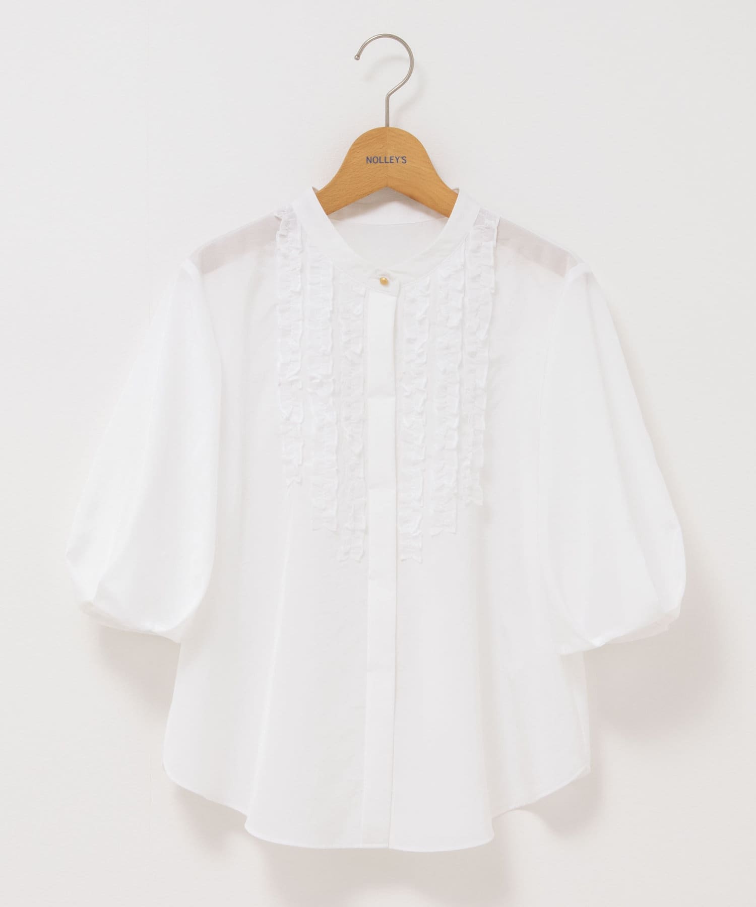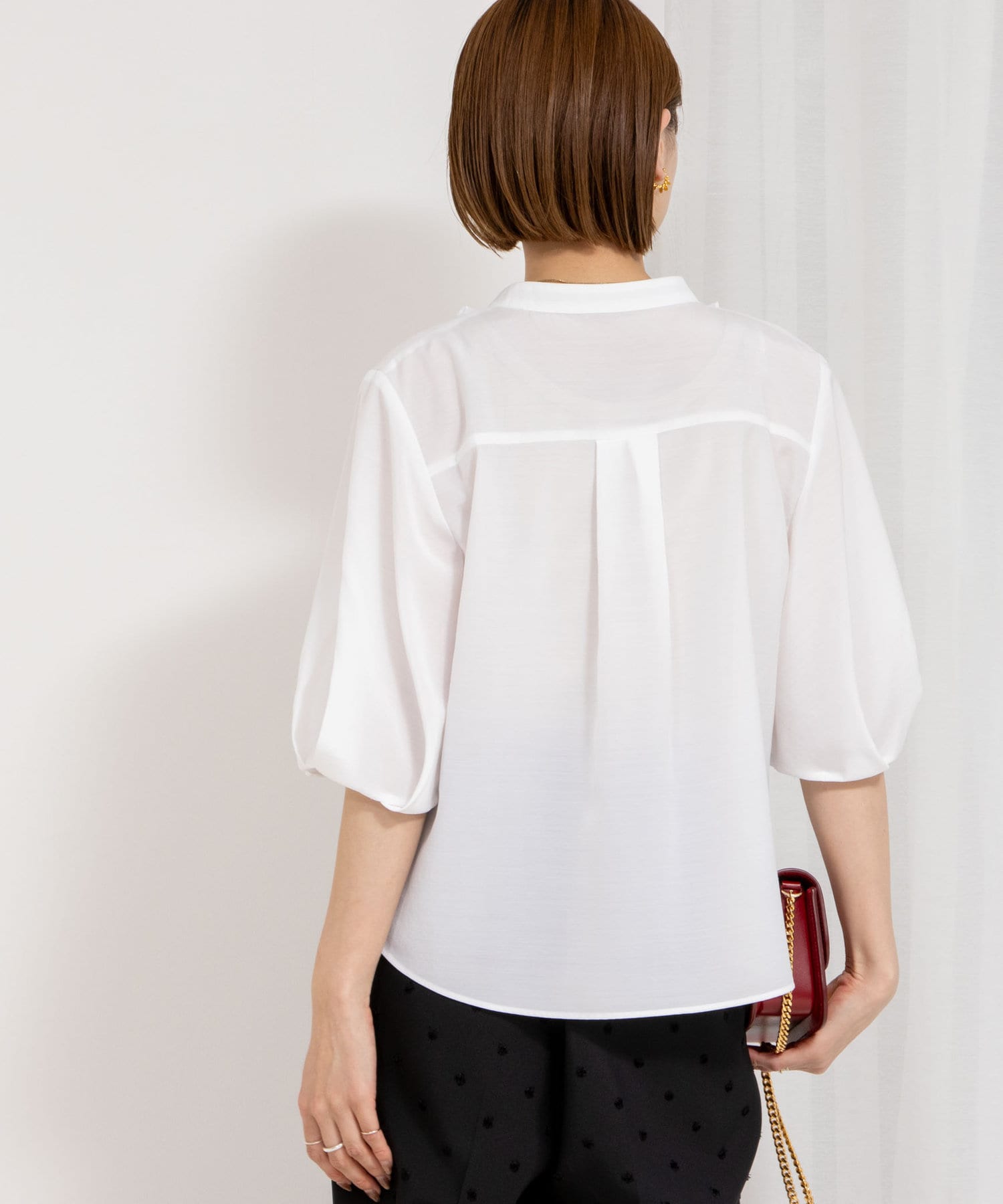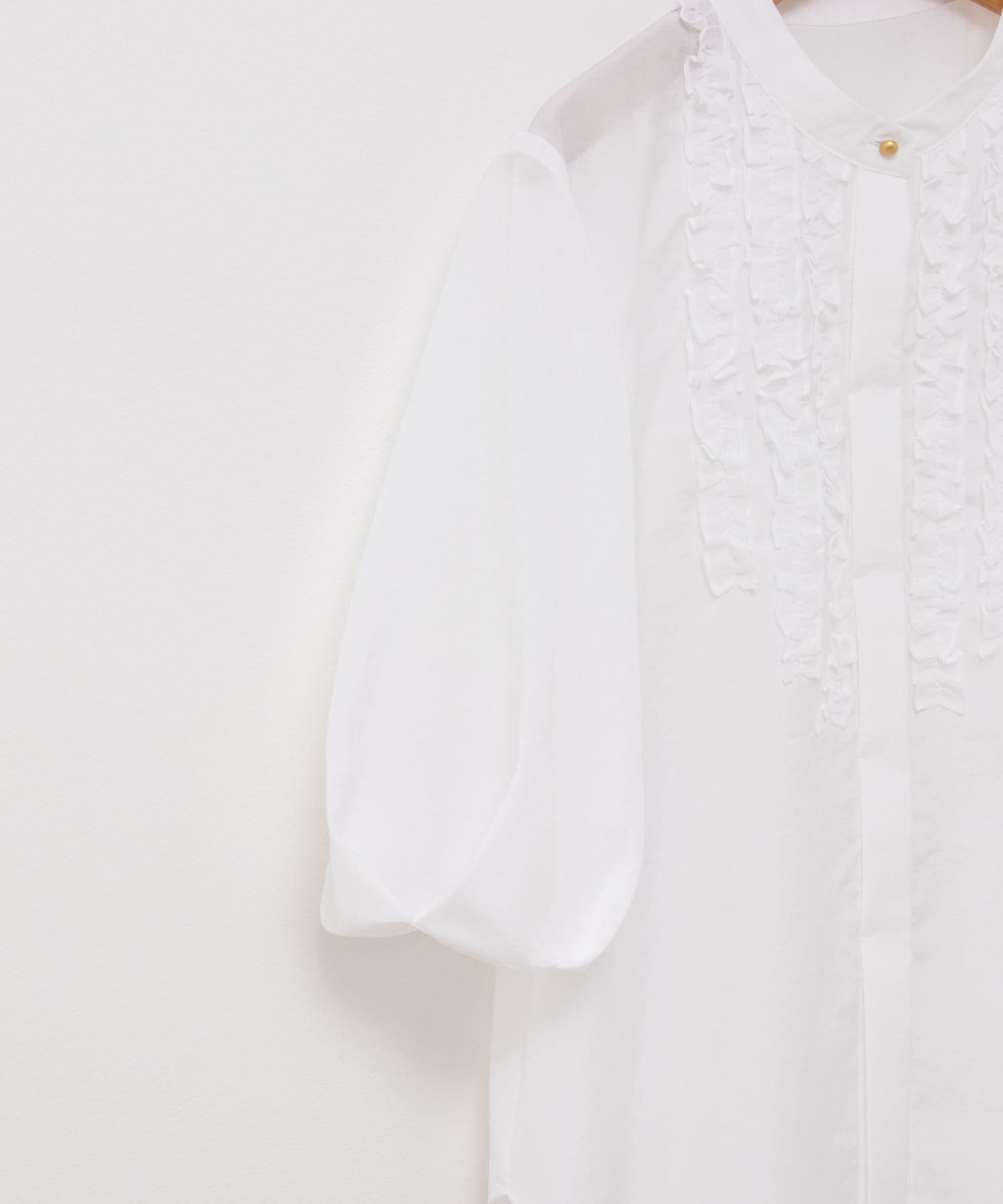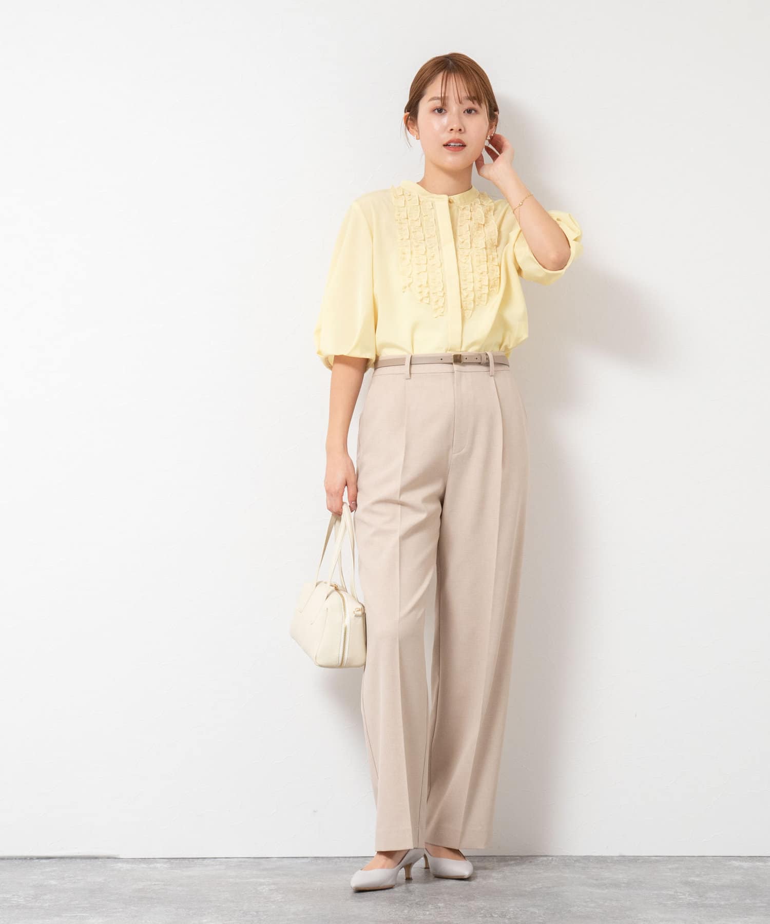 ・透け感のあるジョーゼット素材でフリルが程よい甘さのブラウス