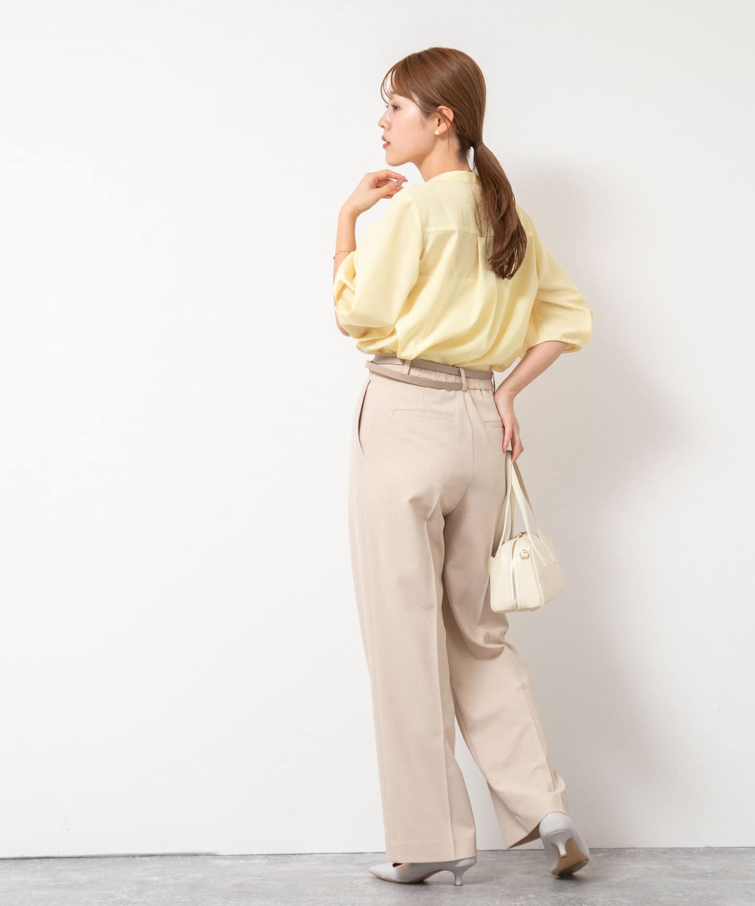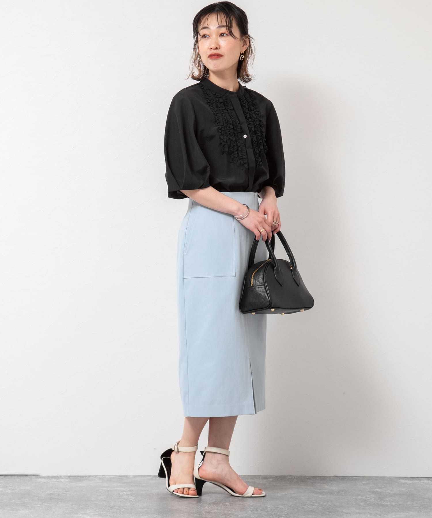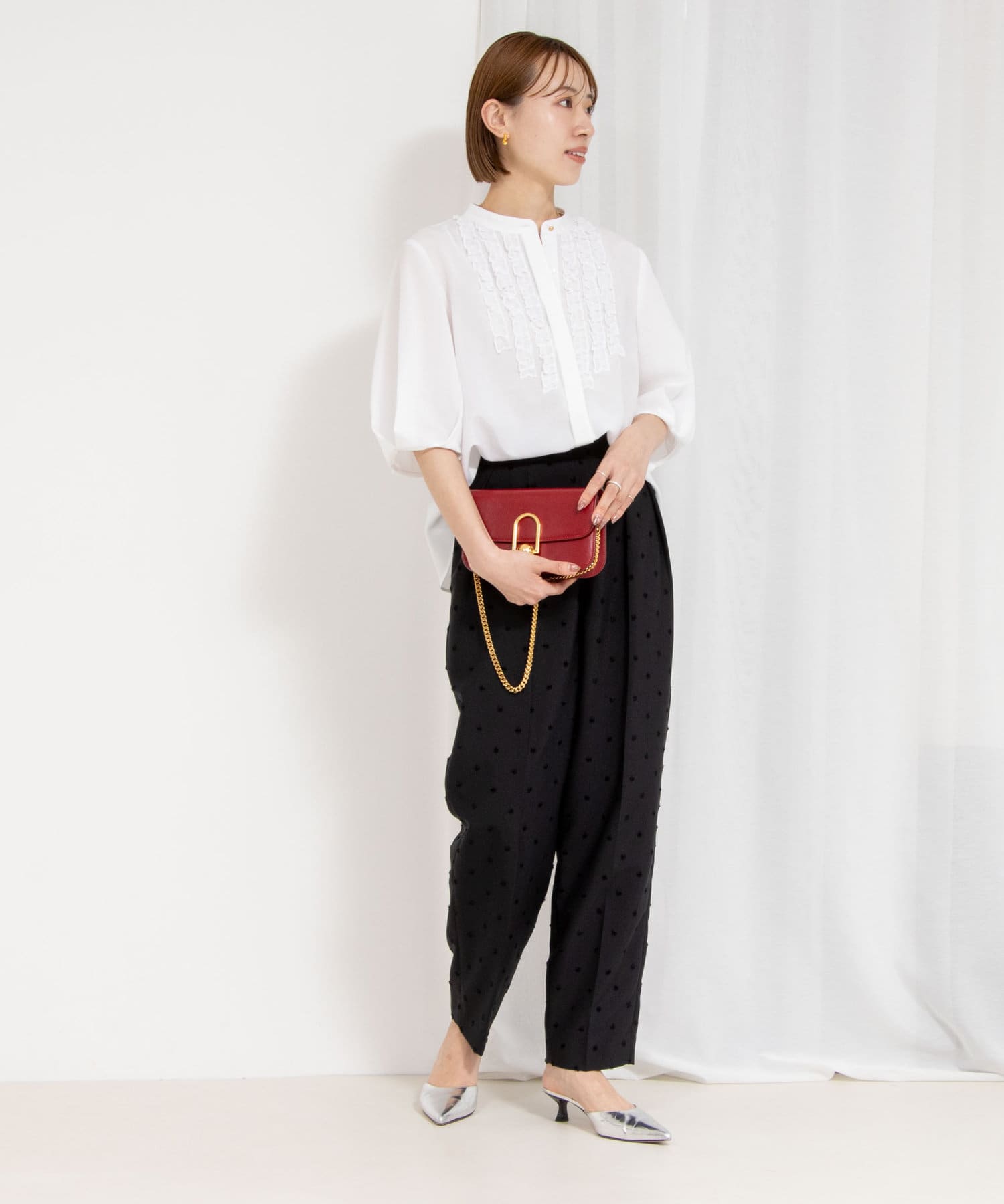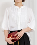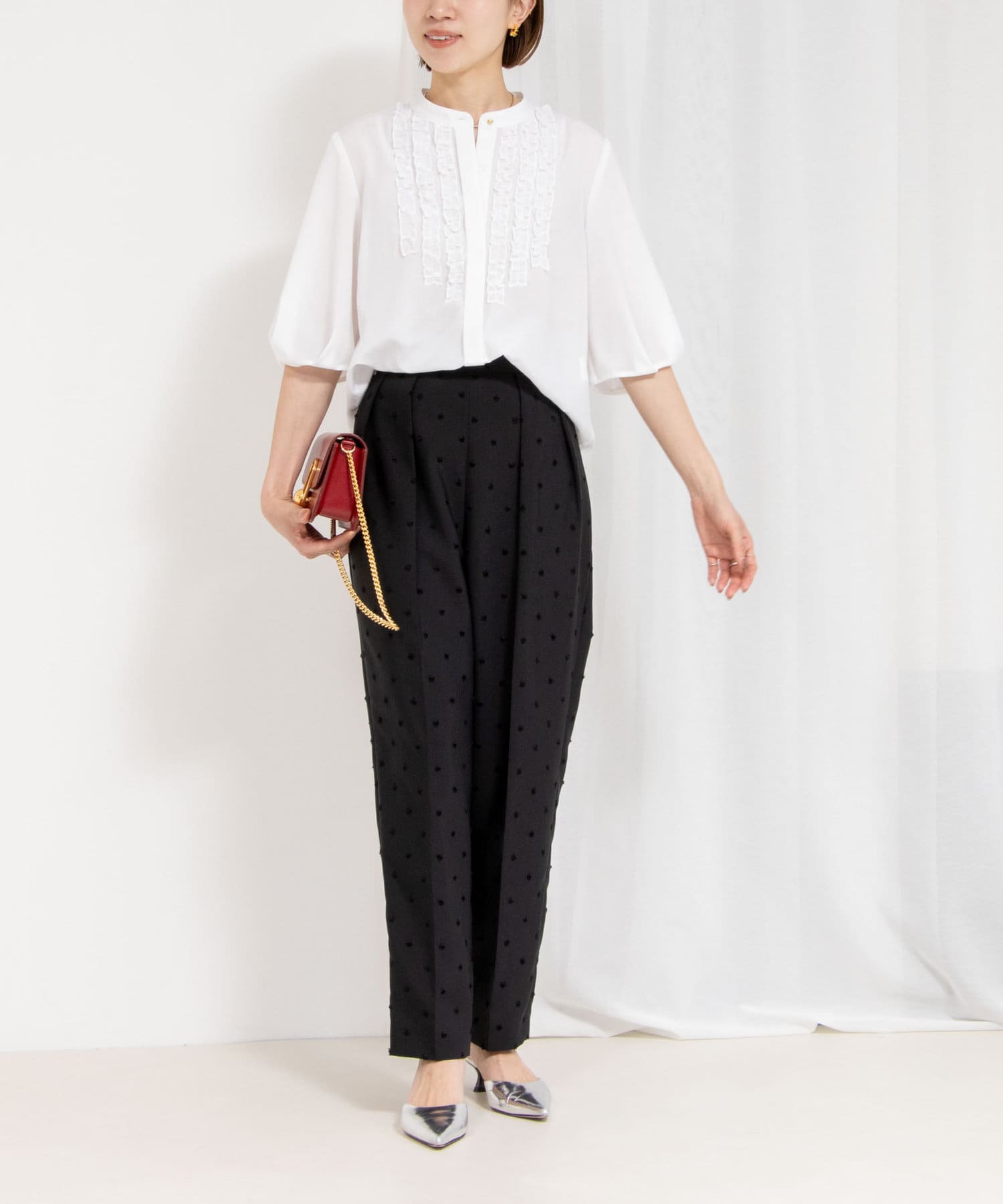 ・透け感のあるジョーゼット素材でフリルが程よい甘さのブラウス