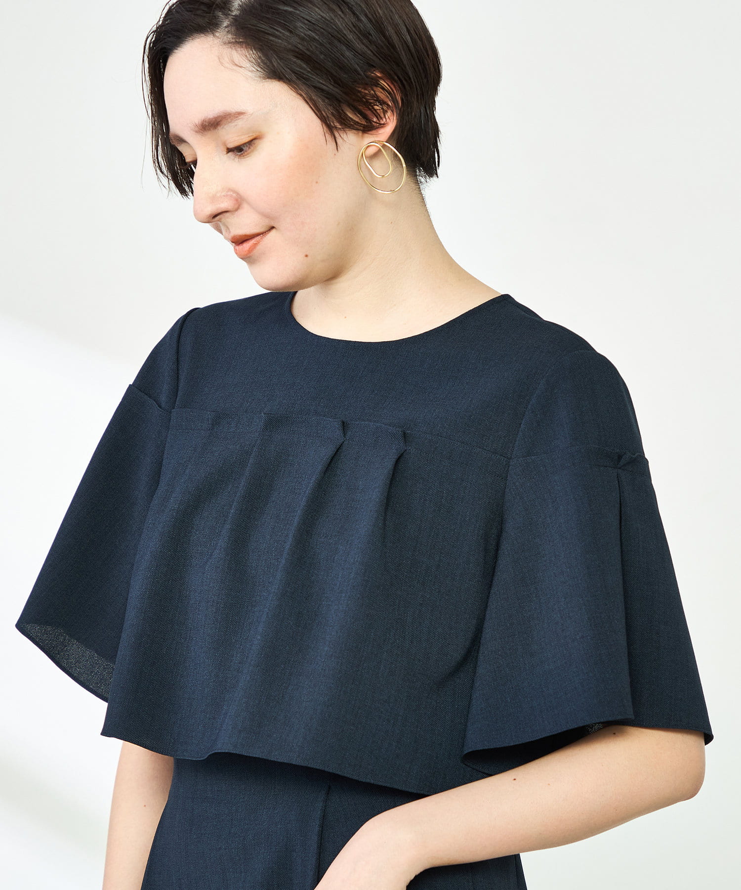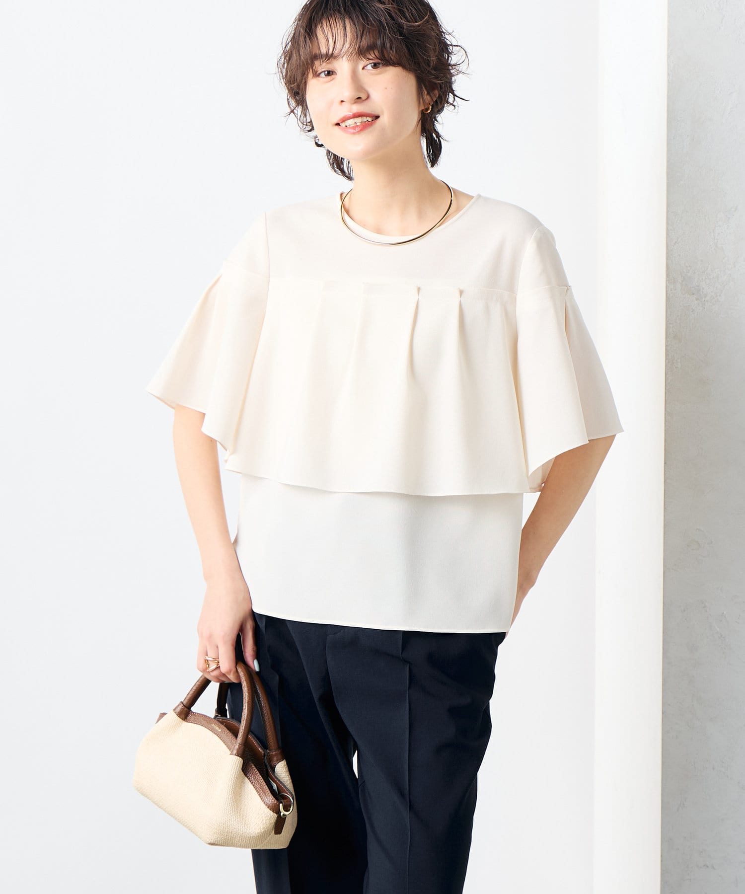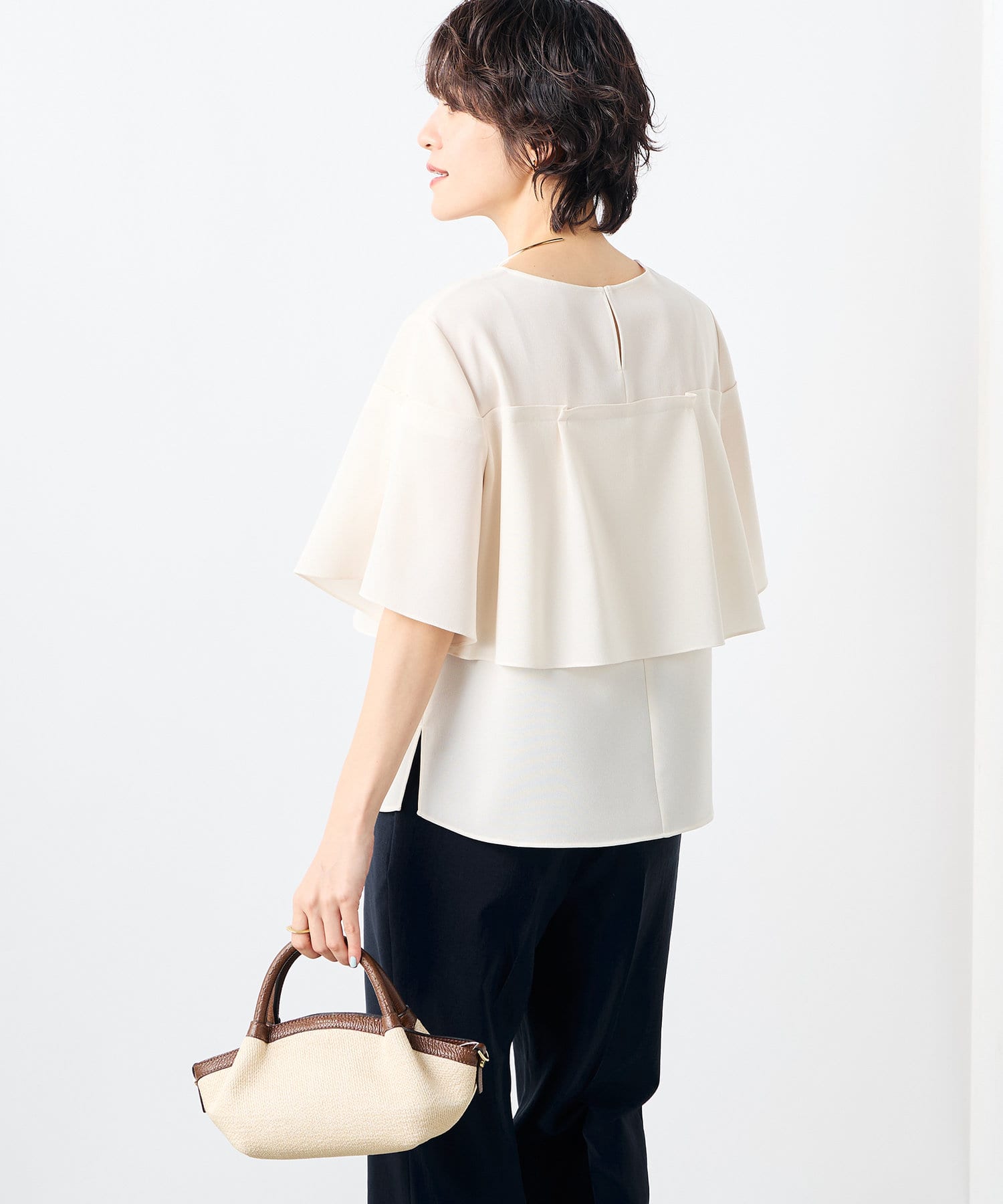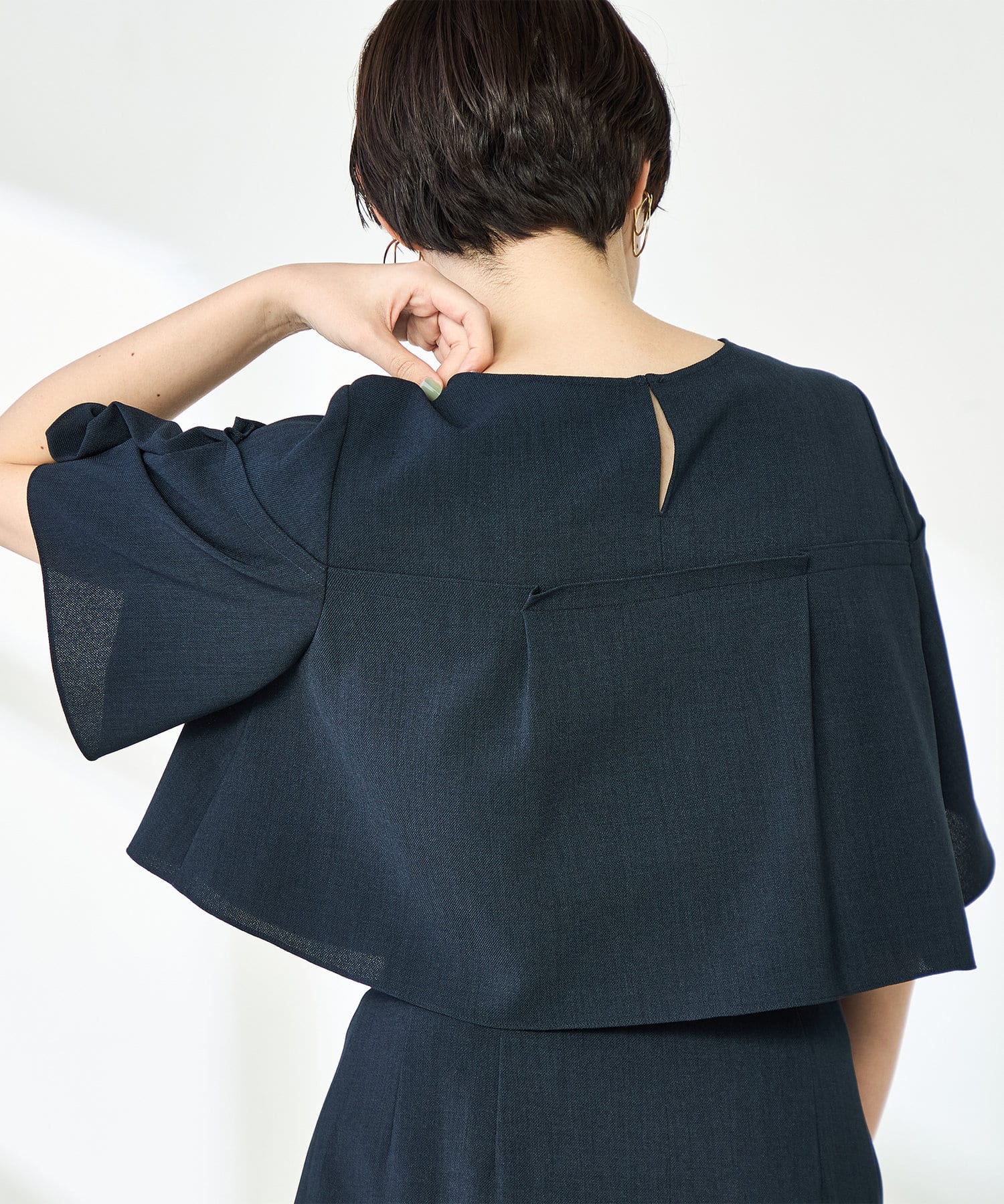 ・プレーンな身頃にケープディテールをプラスした着映えトップス