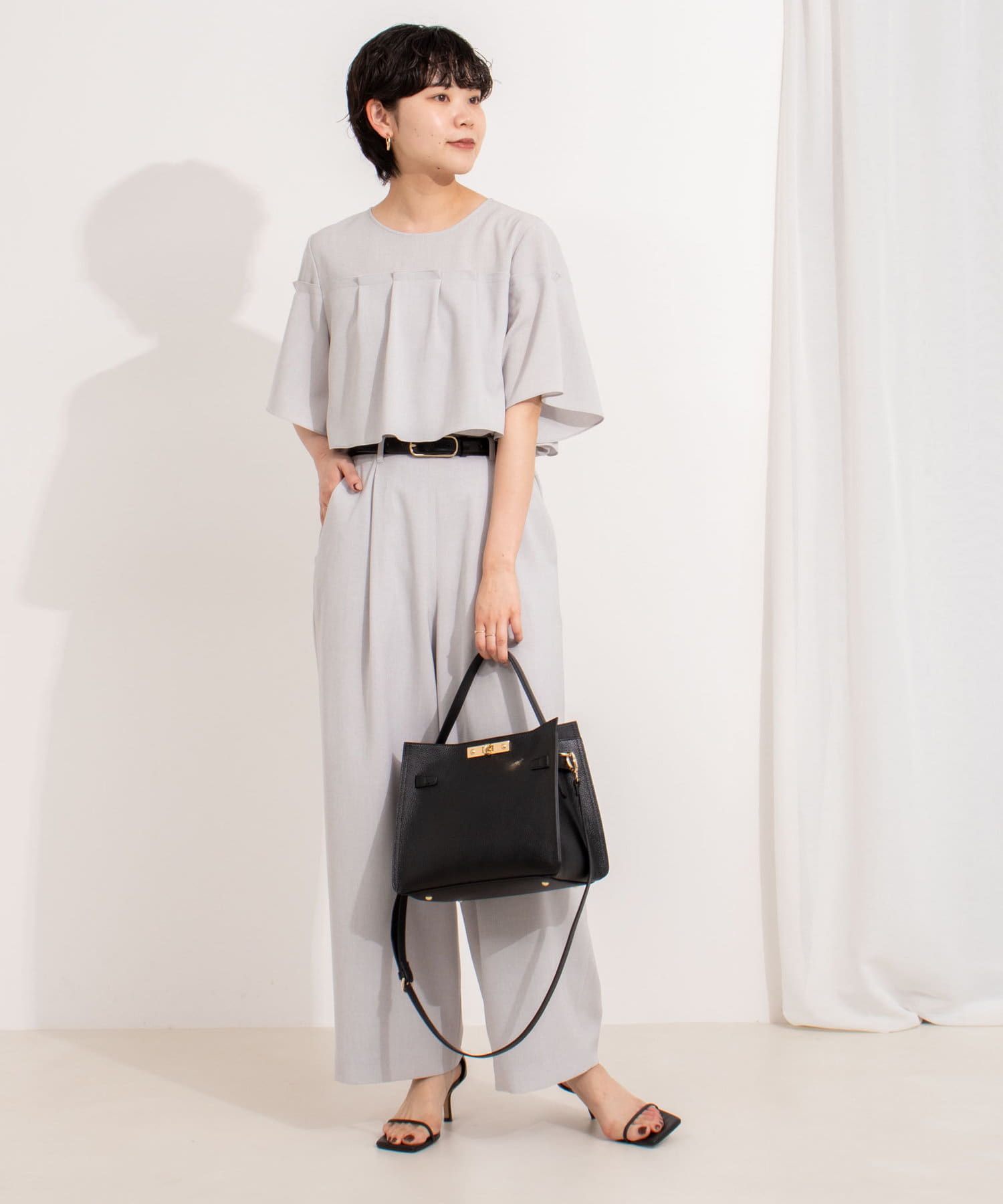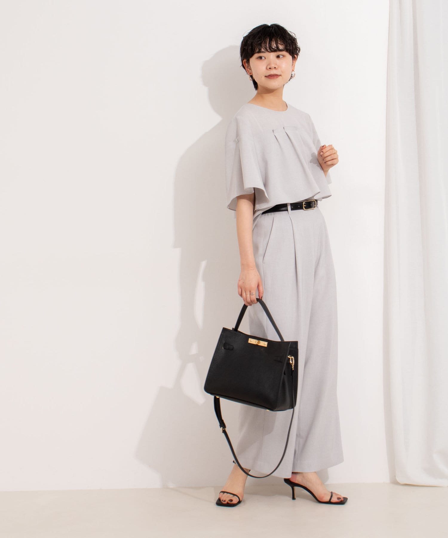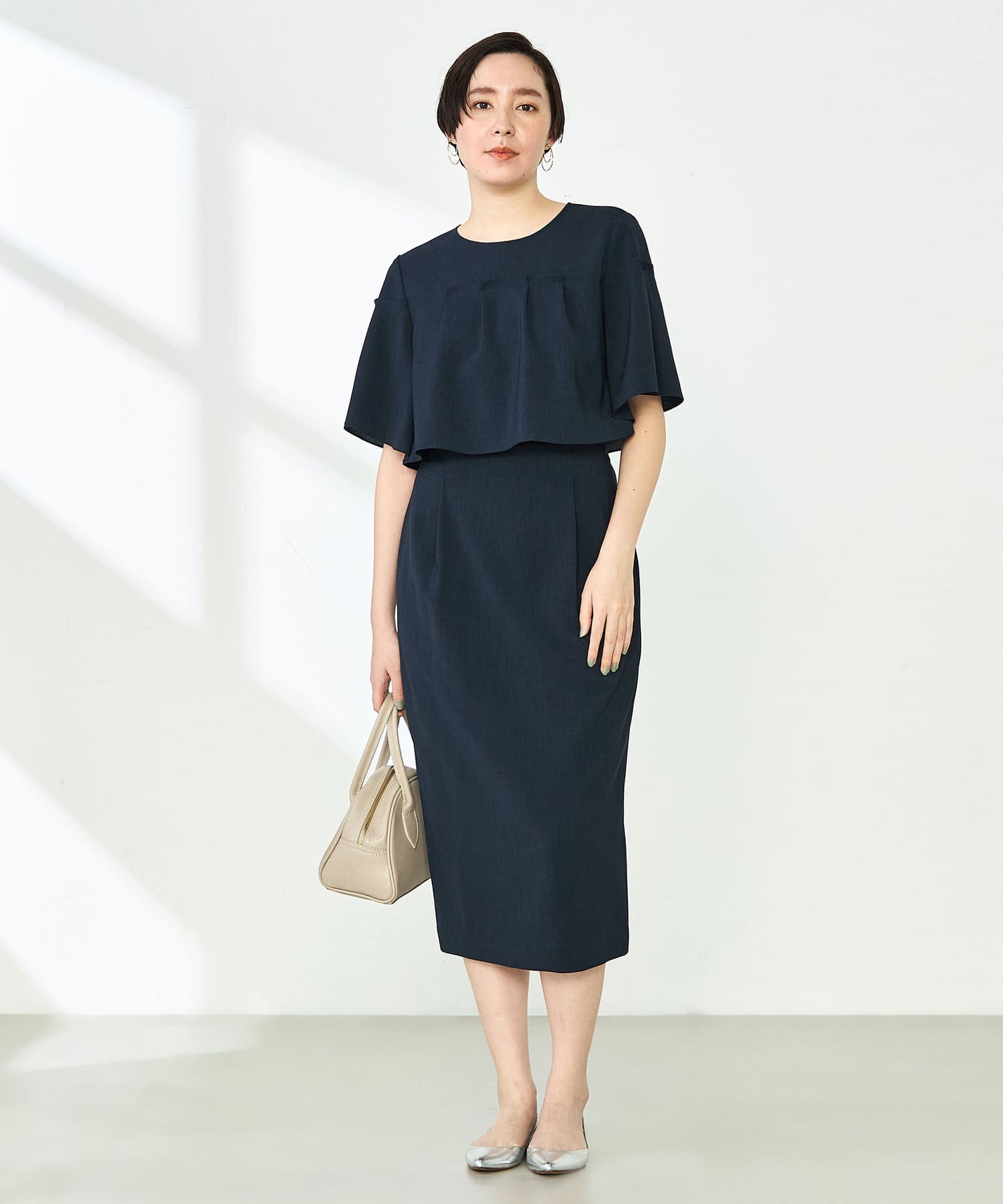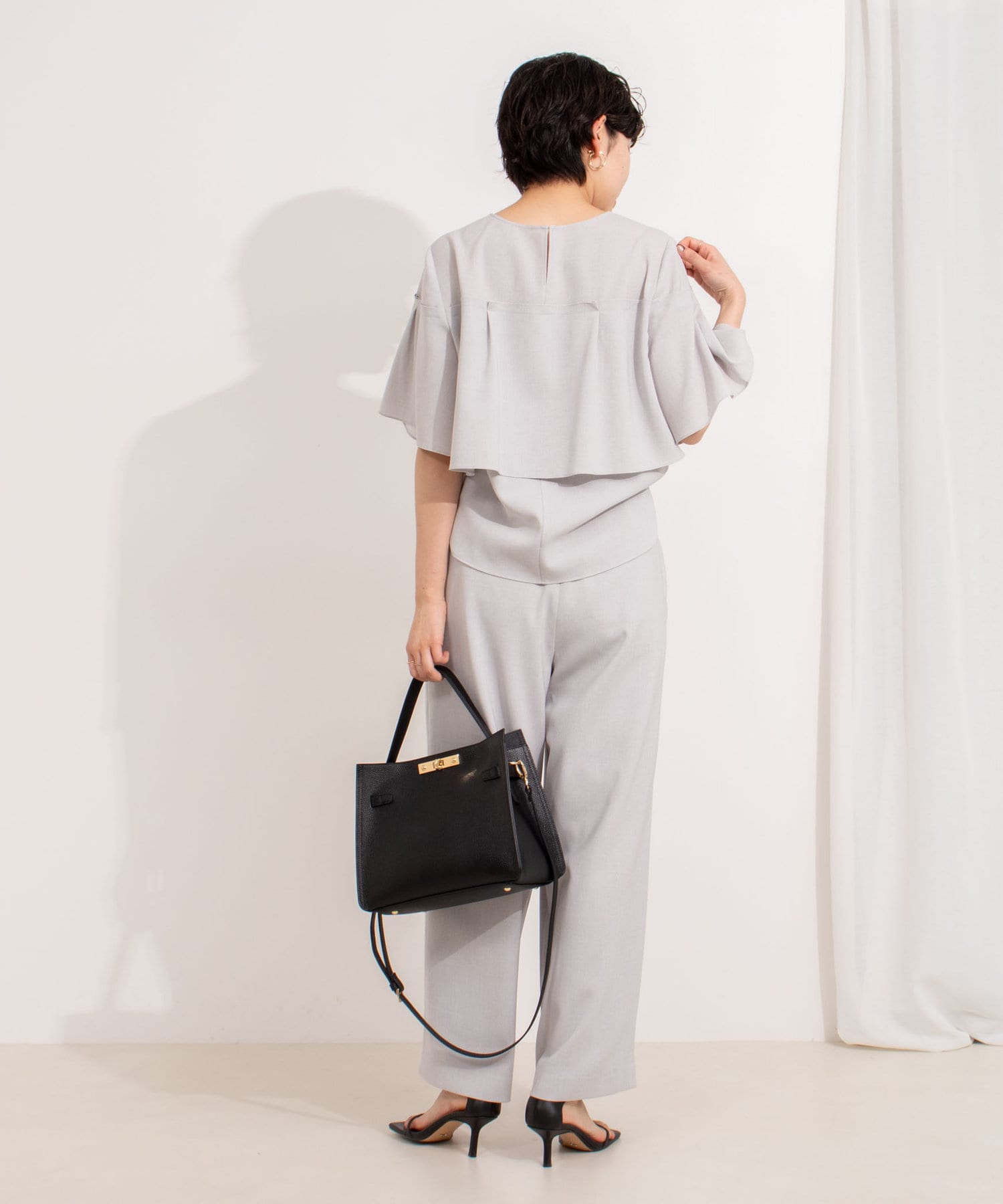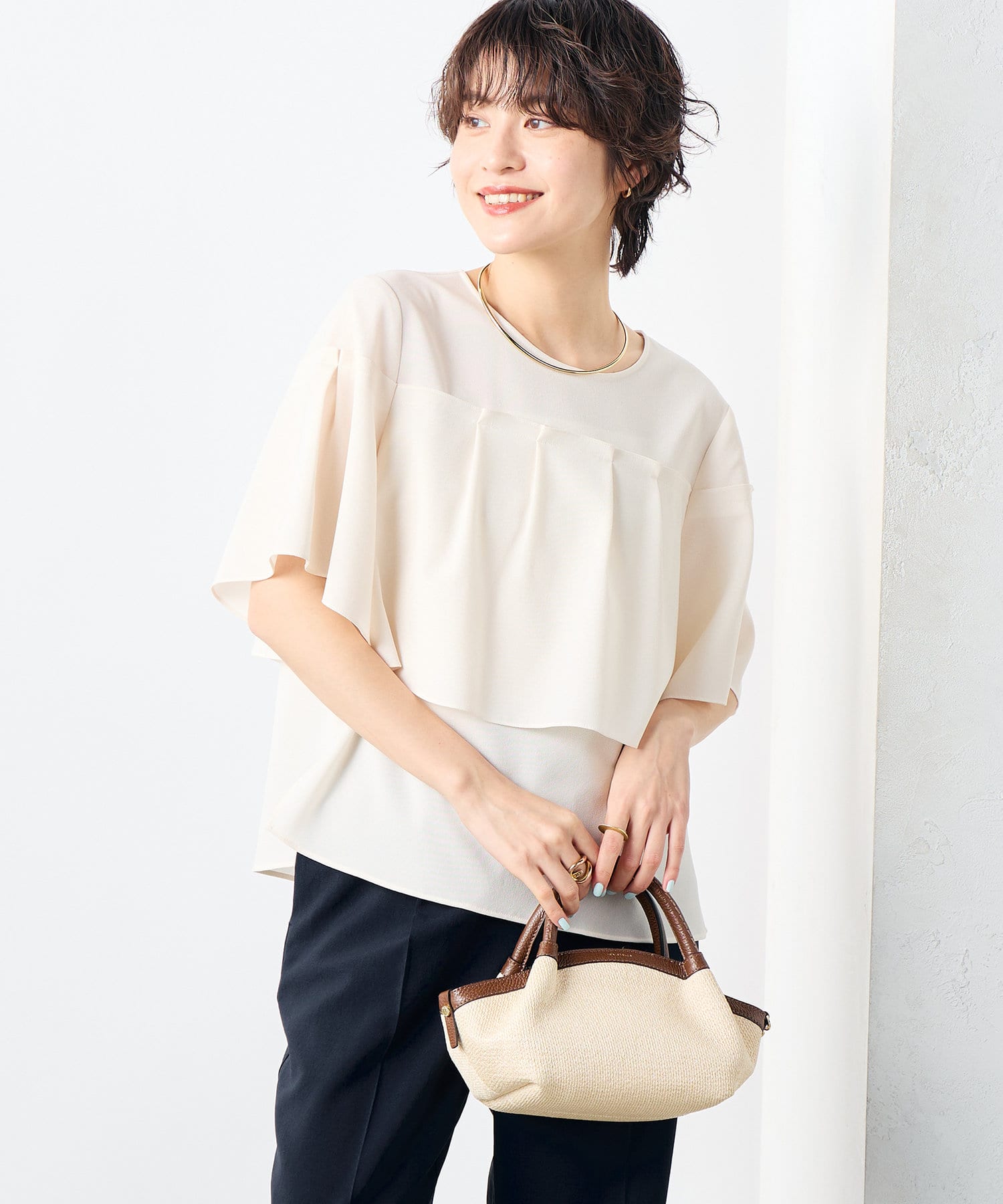 ・プレーンな身頃にケープディテールをプラスした着映えトップス