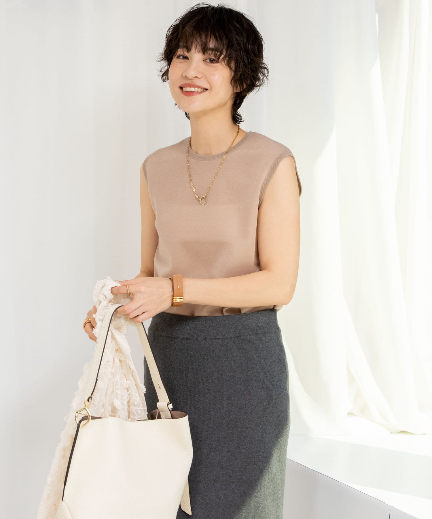 《アンサンブル対応》ハーフシアーノースリーブプルオーバーニット