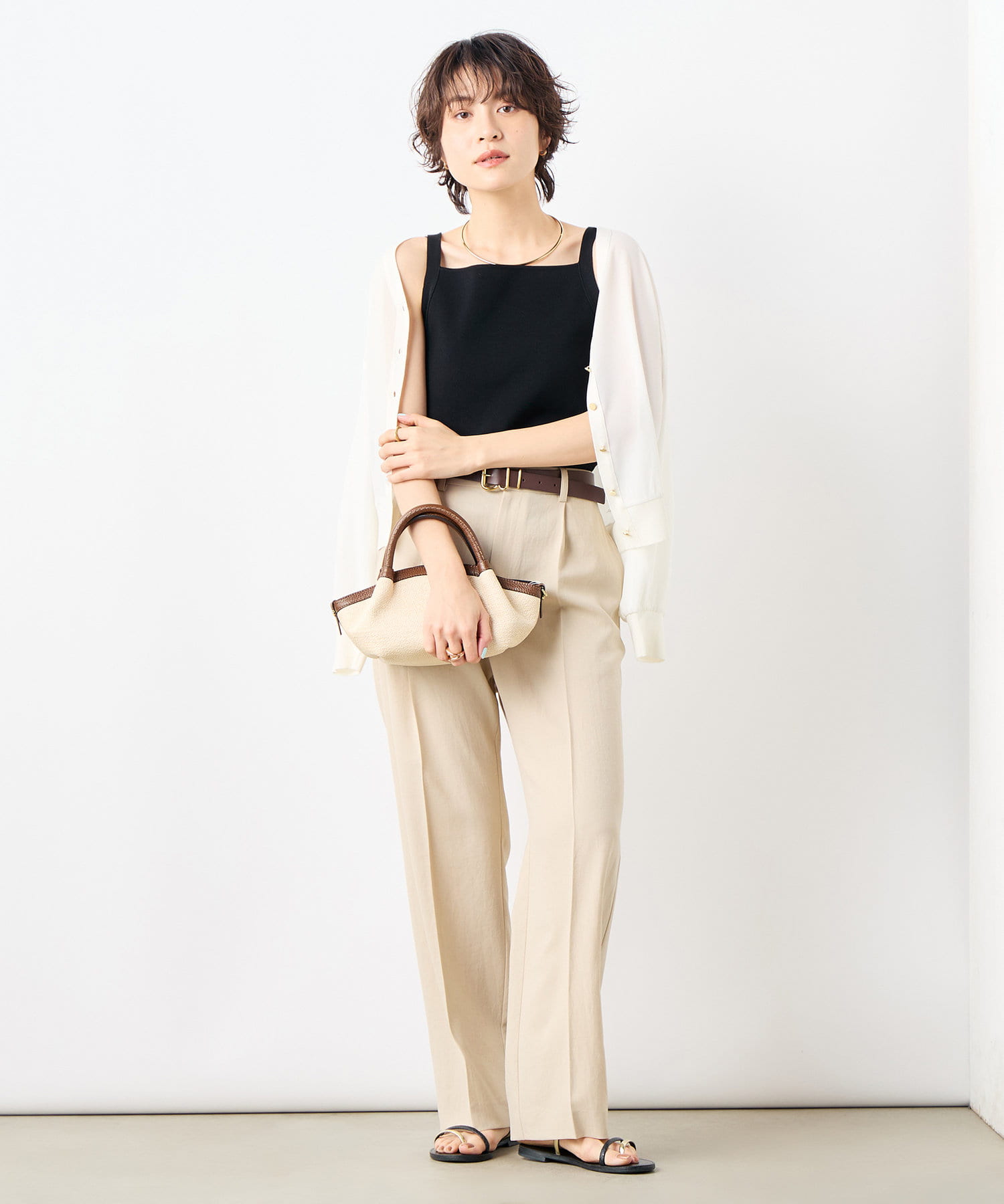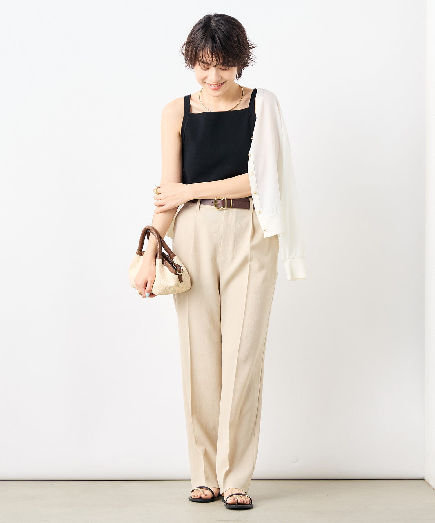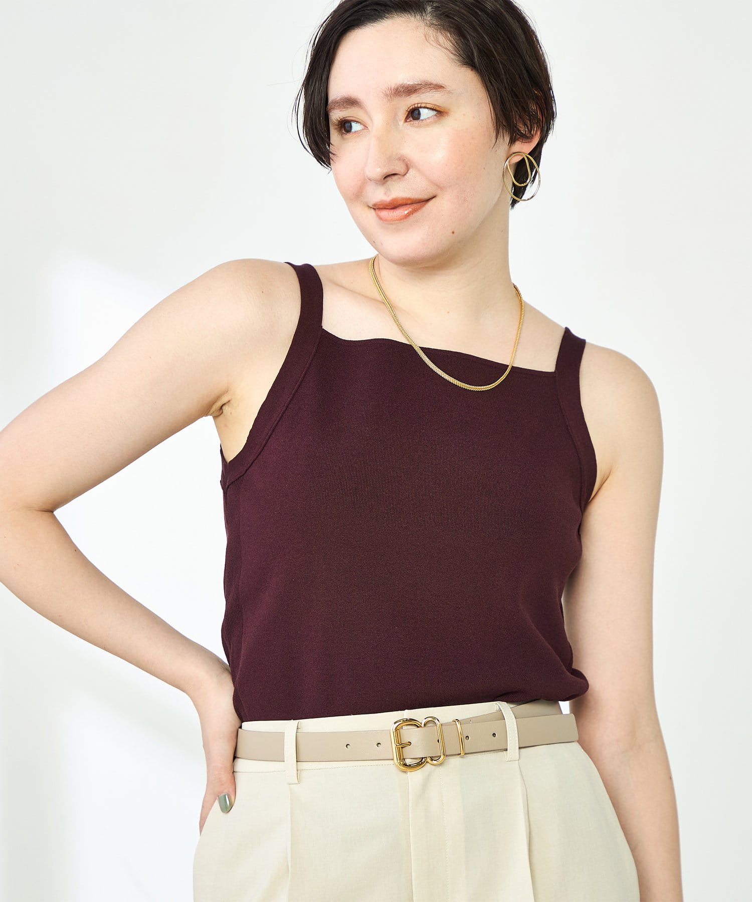 ・スクエアネックが特徴のヘルシーなタンクトップ