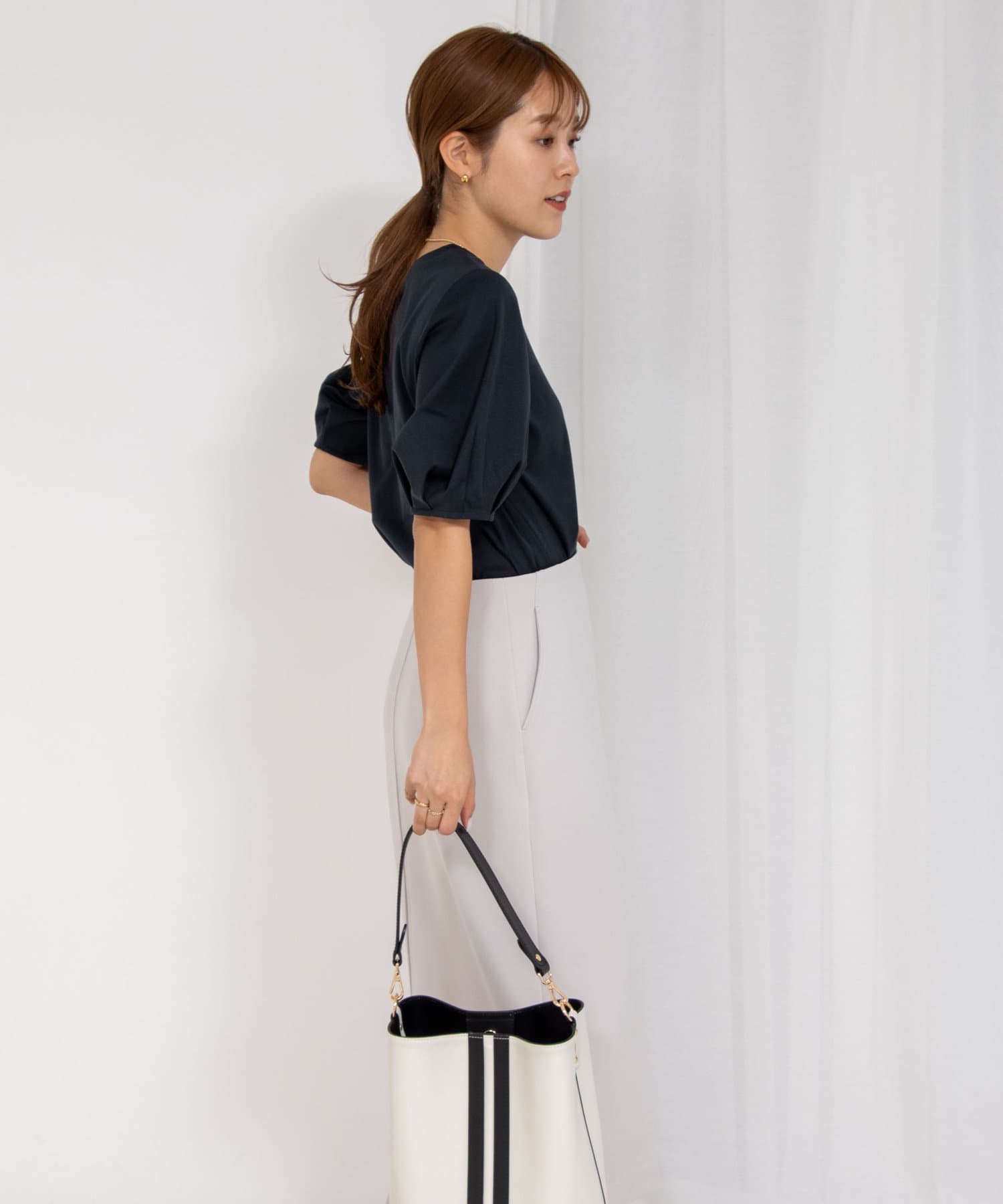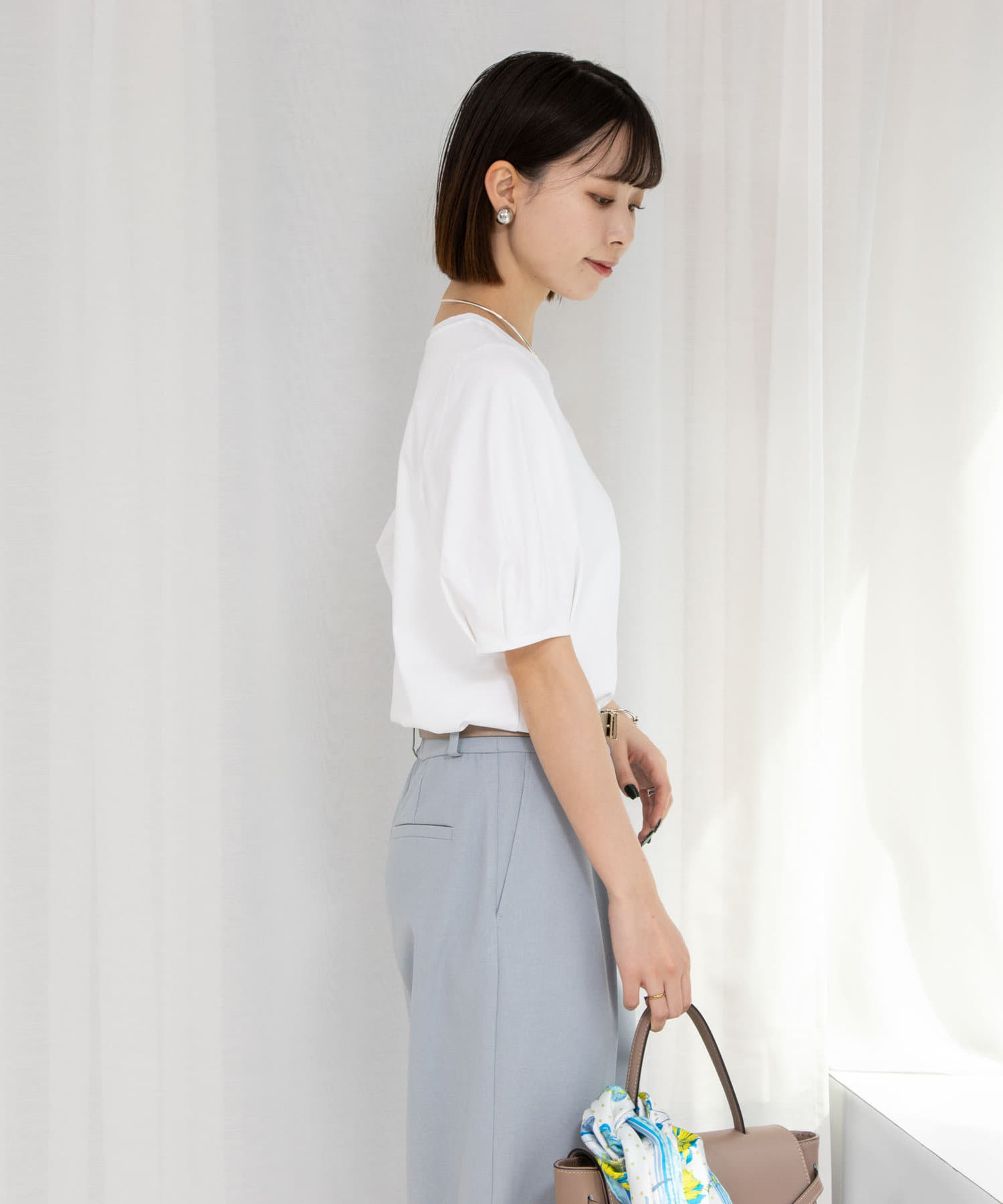 ・5分袖のパフスリーブがポイントのカットソー