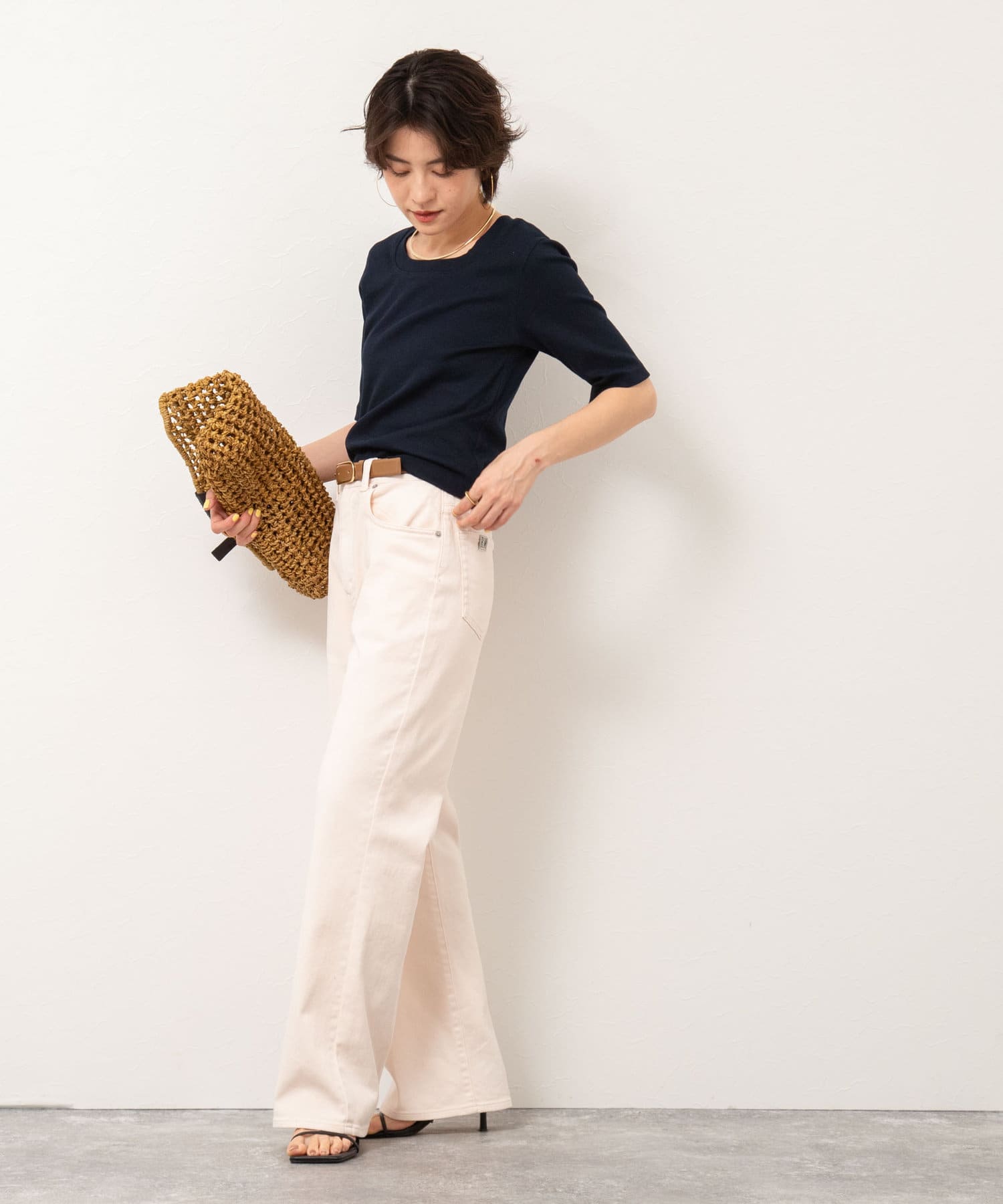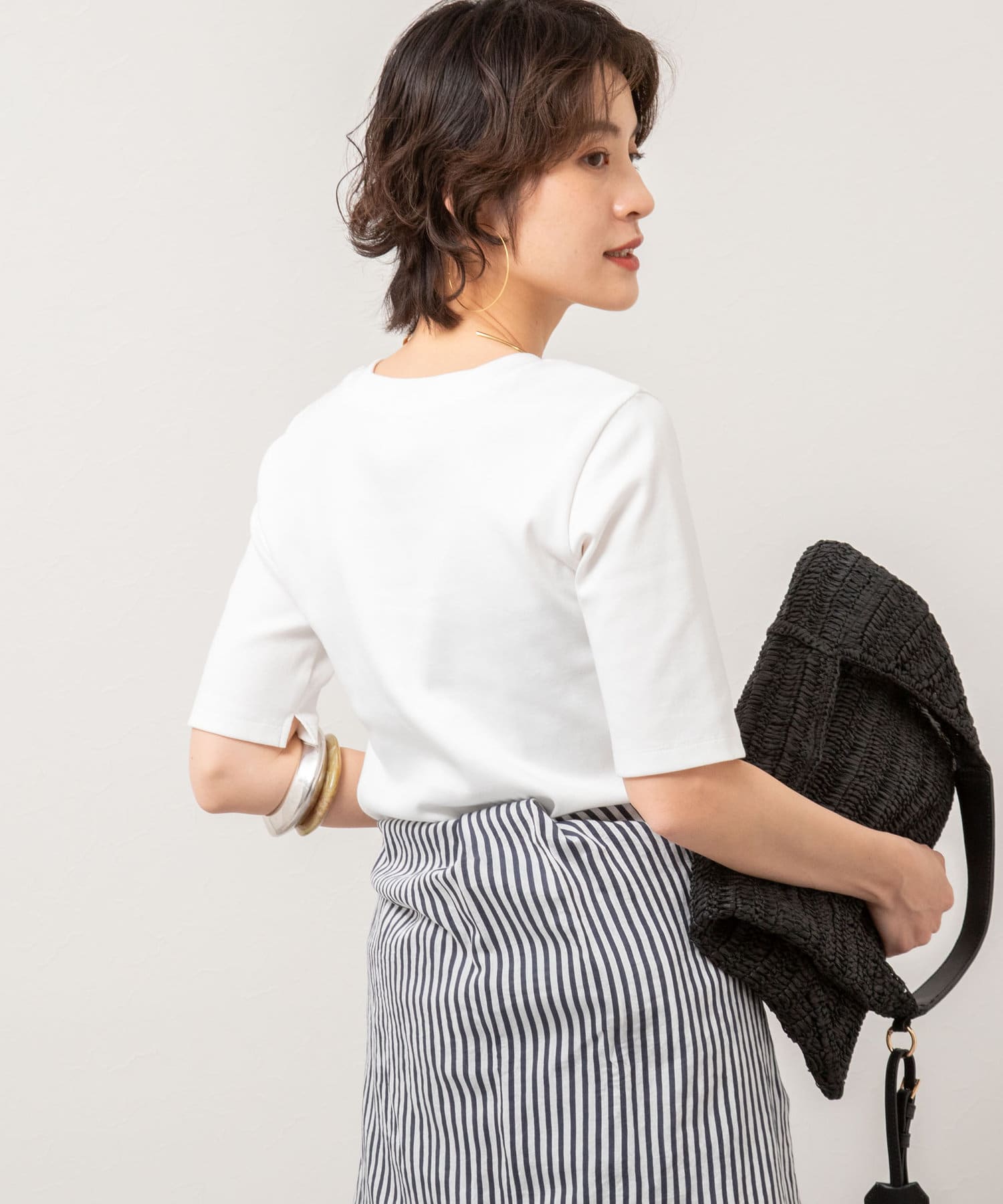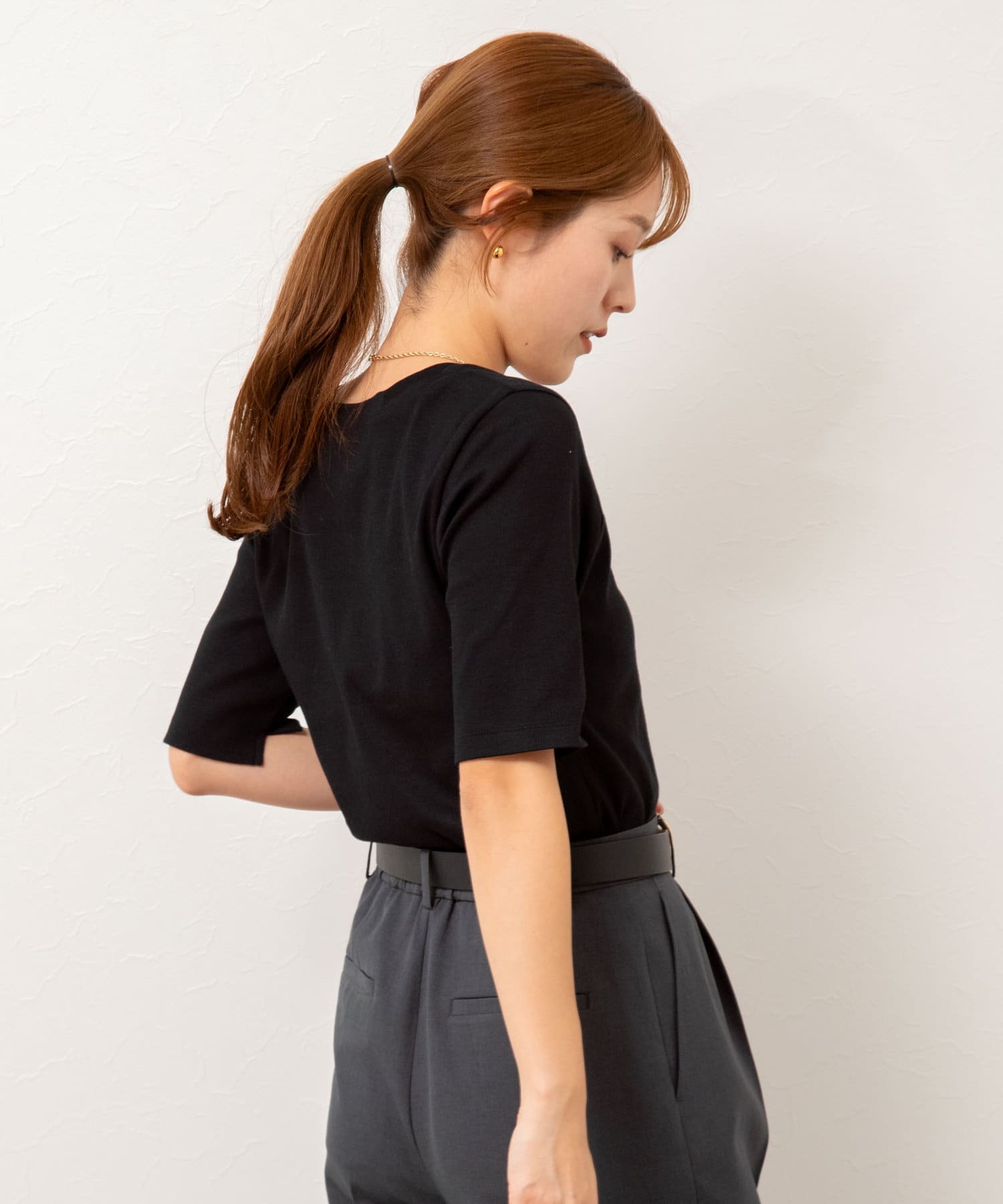 TOP > NOLLEY'S > レディース > トップス > Tシャツ/カットソー > ◇【WEB限定】コンパクトベアテレコスクエア5分袖プルオーバーカットソー
