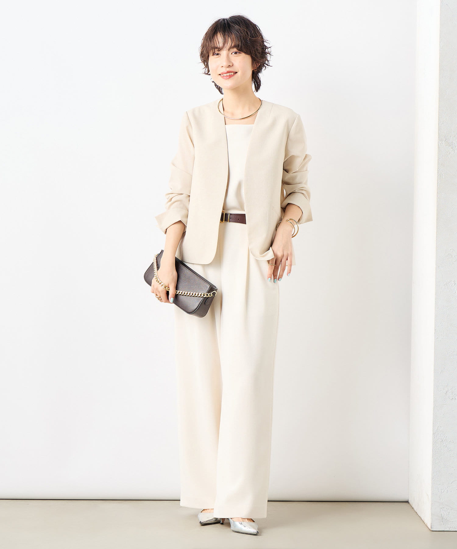 ・同シリーズのワイドパンツとセットアップ着用も可能