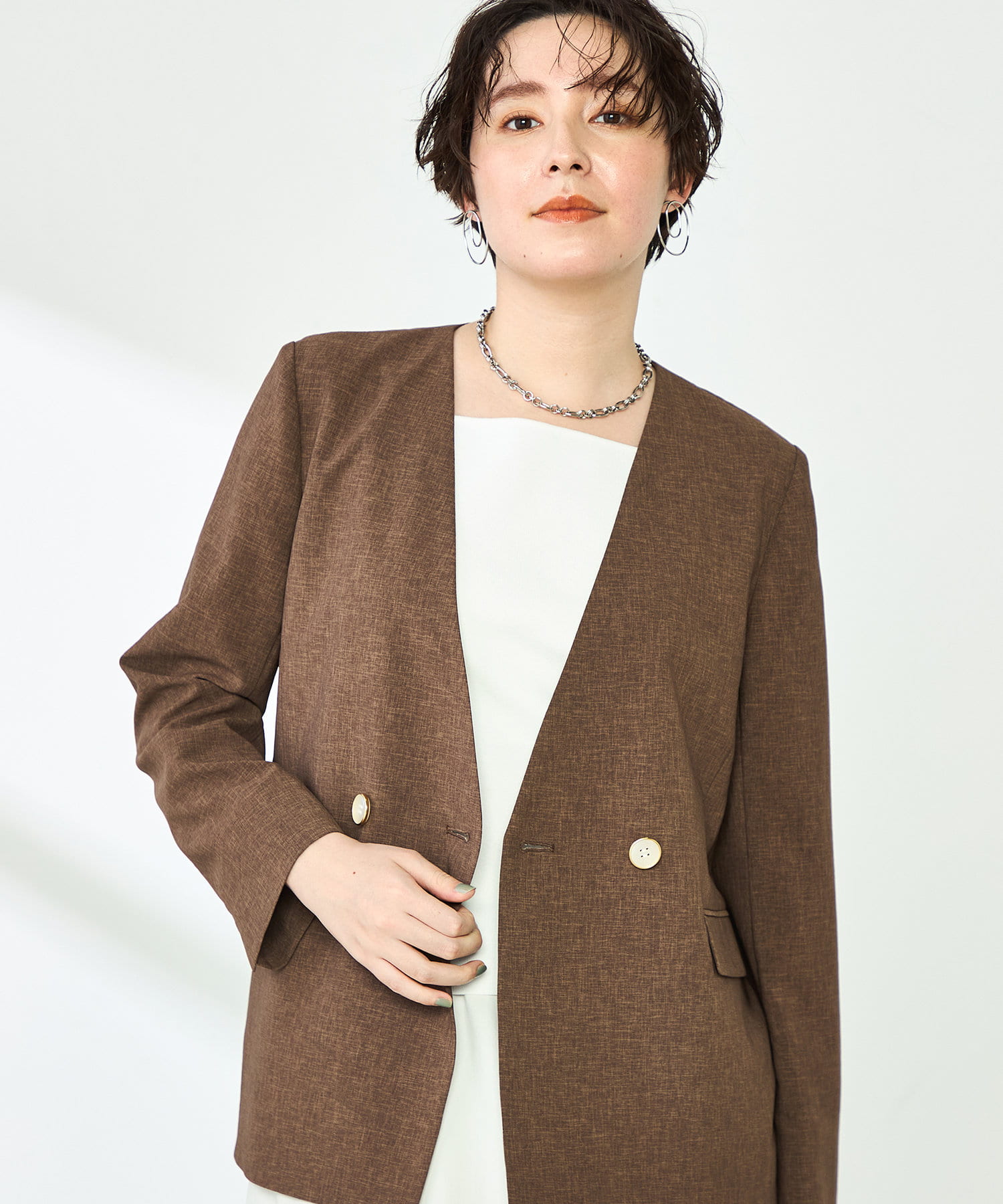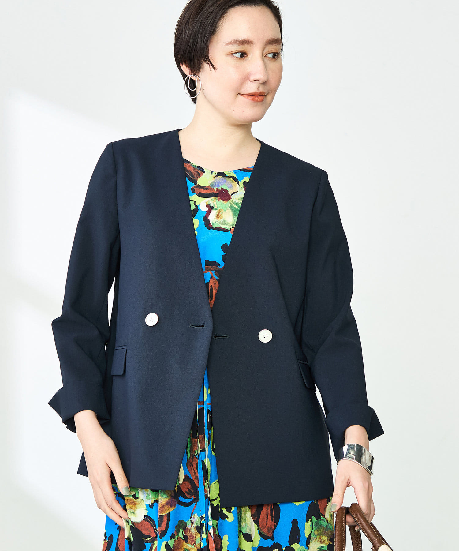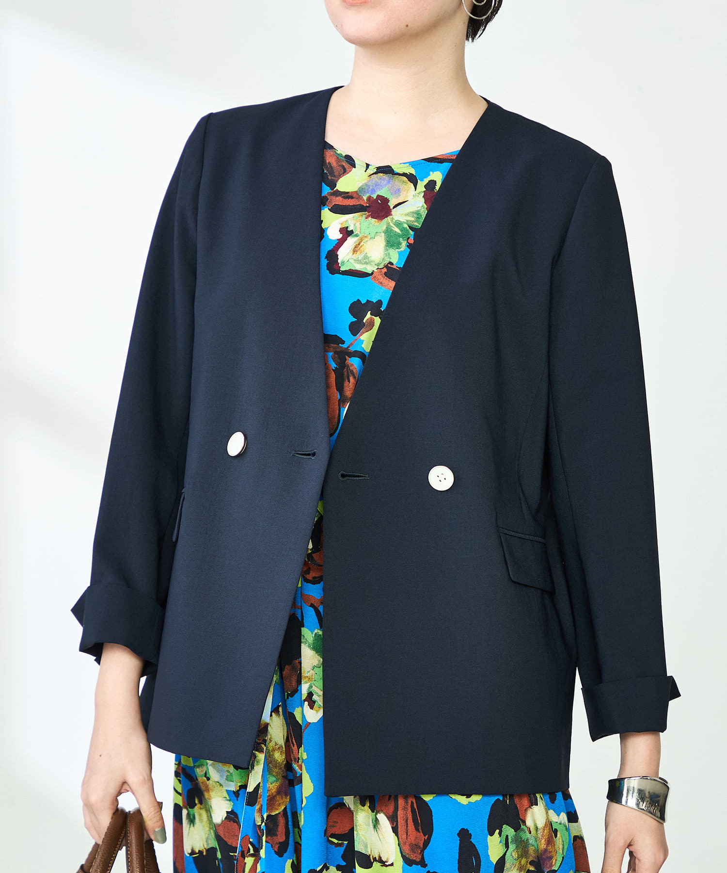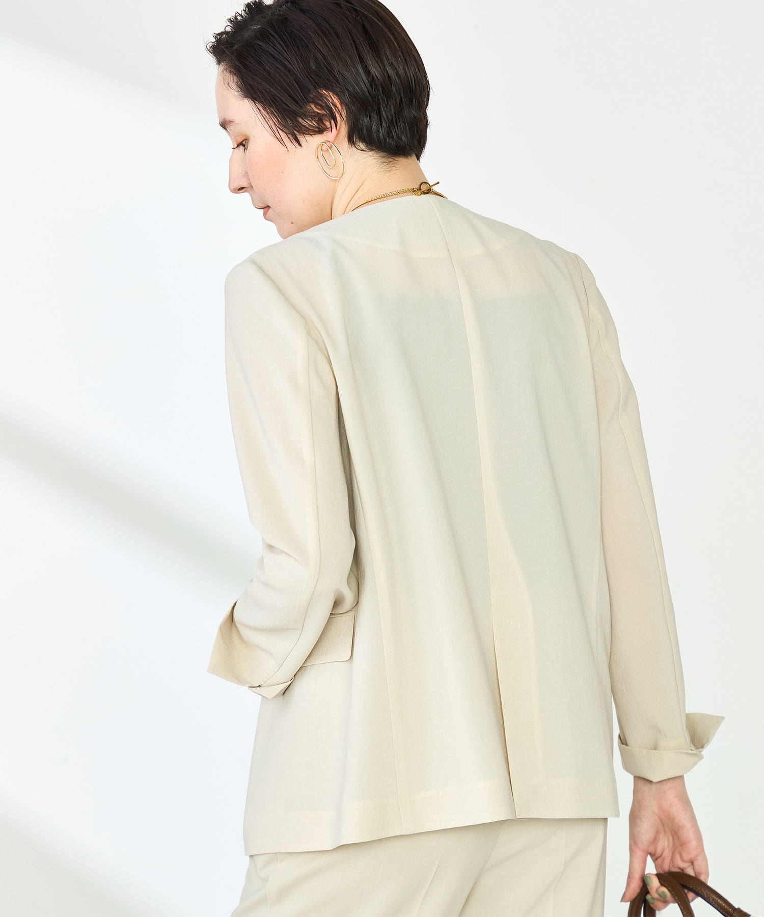 《セットアップ対応》ウォッシャブルドライトロピカルノーカラーダブルジャケット