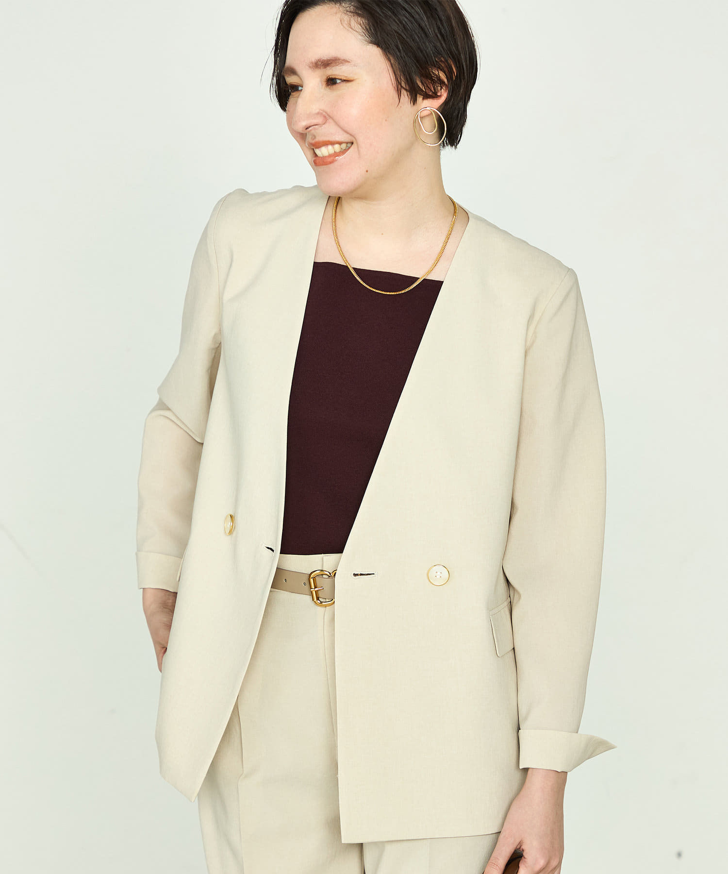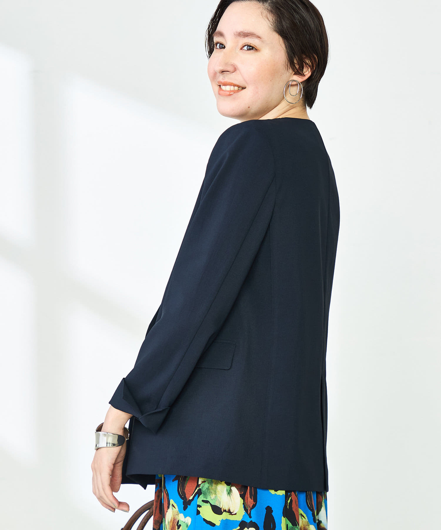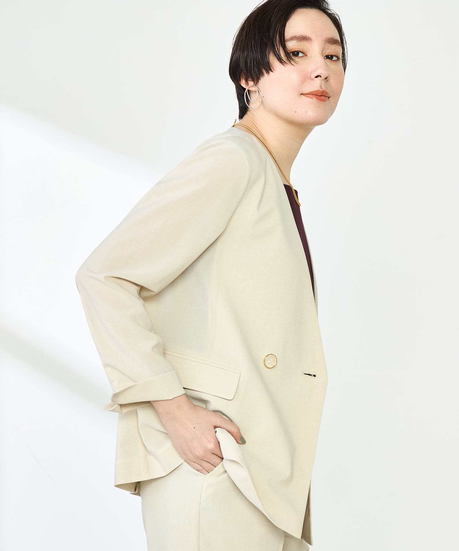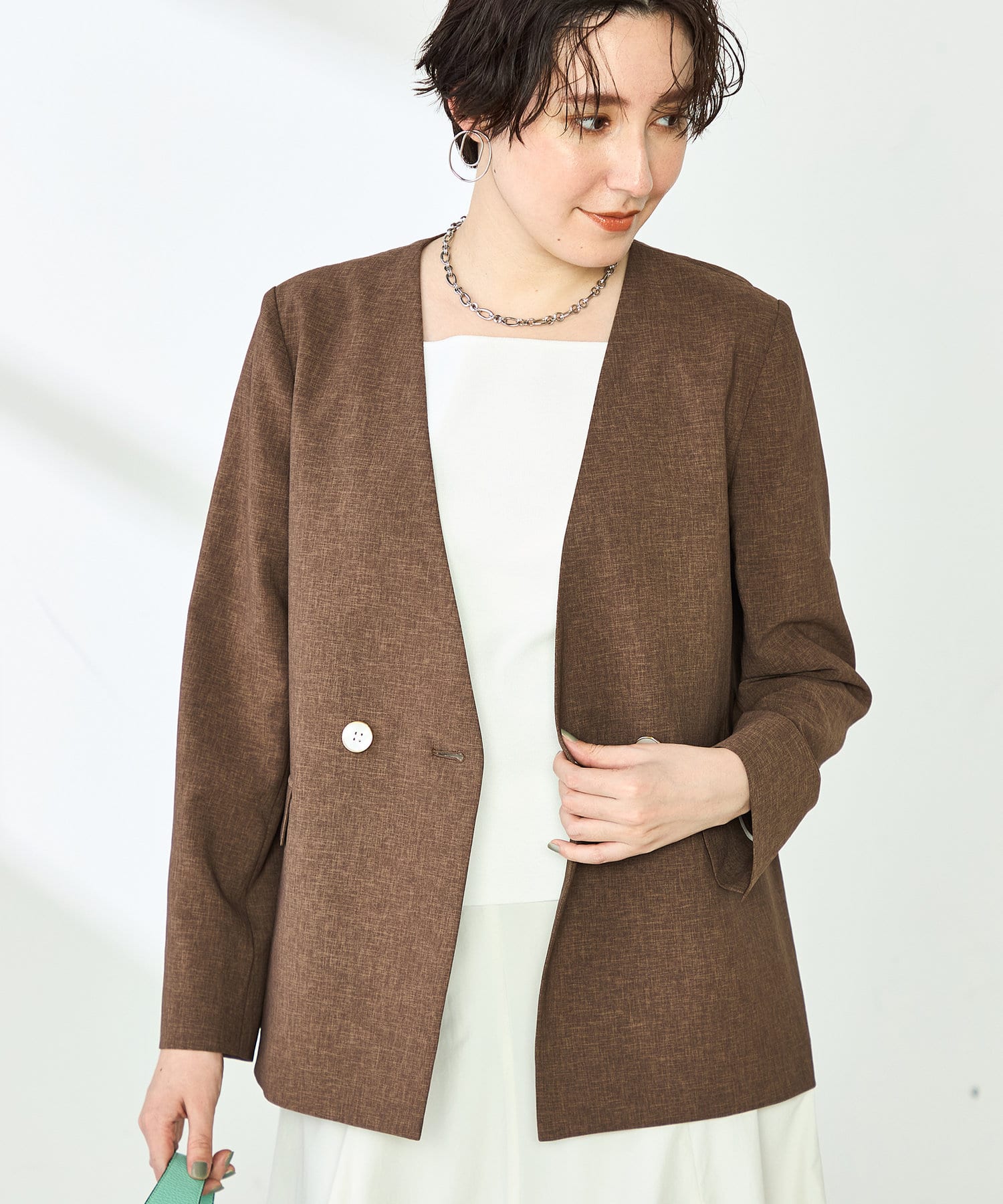 《セットアップ対応》ウォッシャブルドライトロピカルノーカラーダブルジャケット