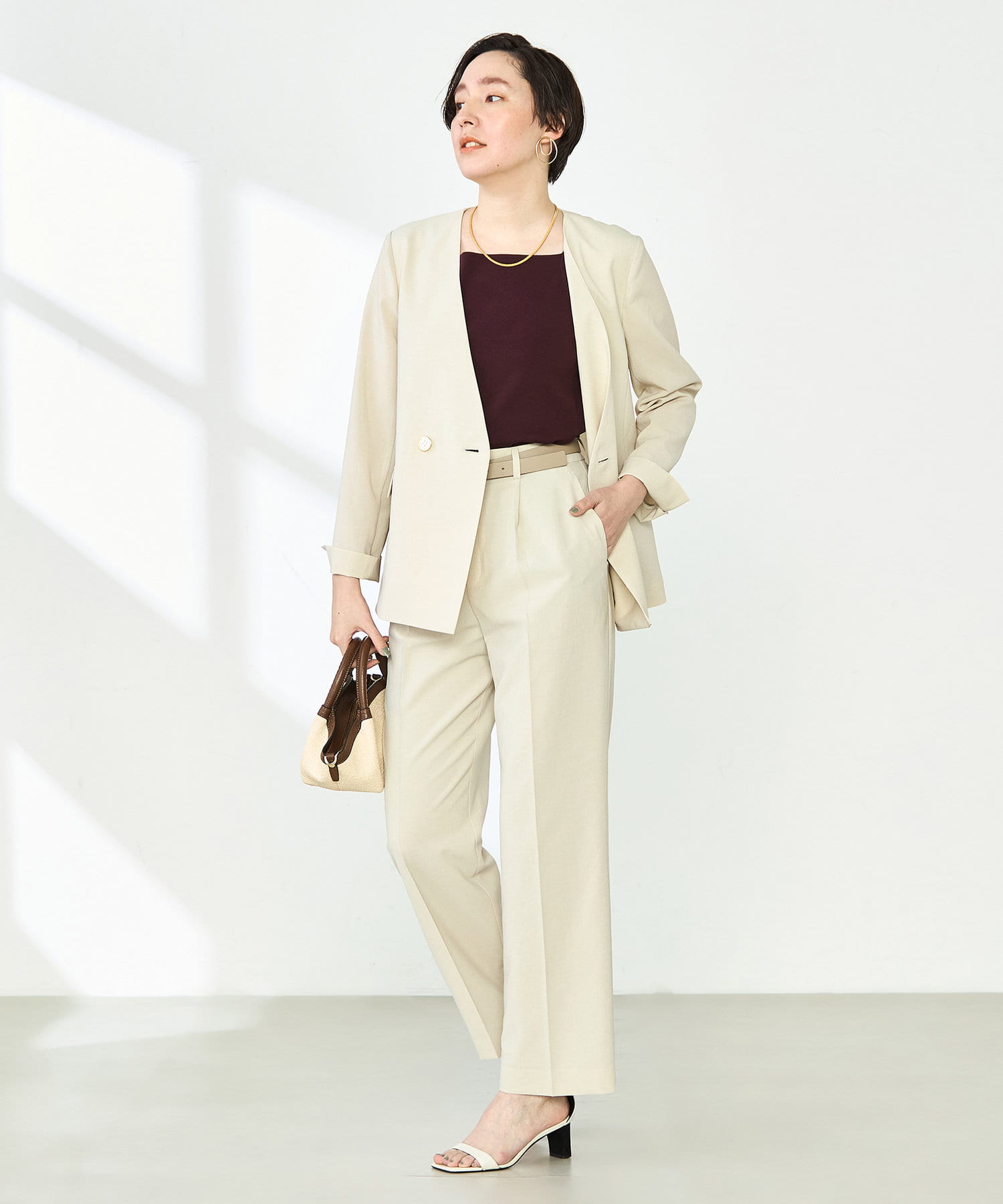 ・同シリーズのワイドパンツとセットアップ着用も可能