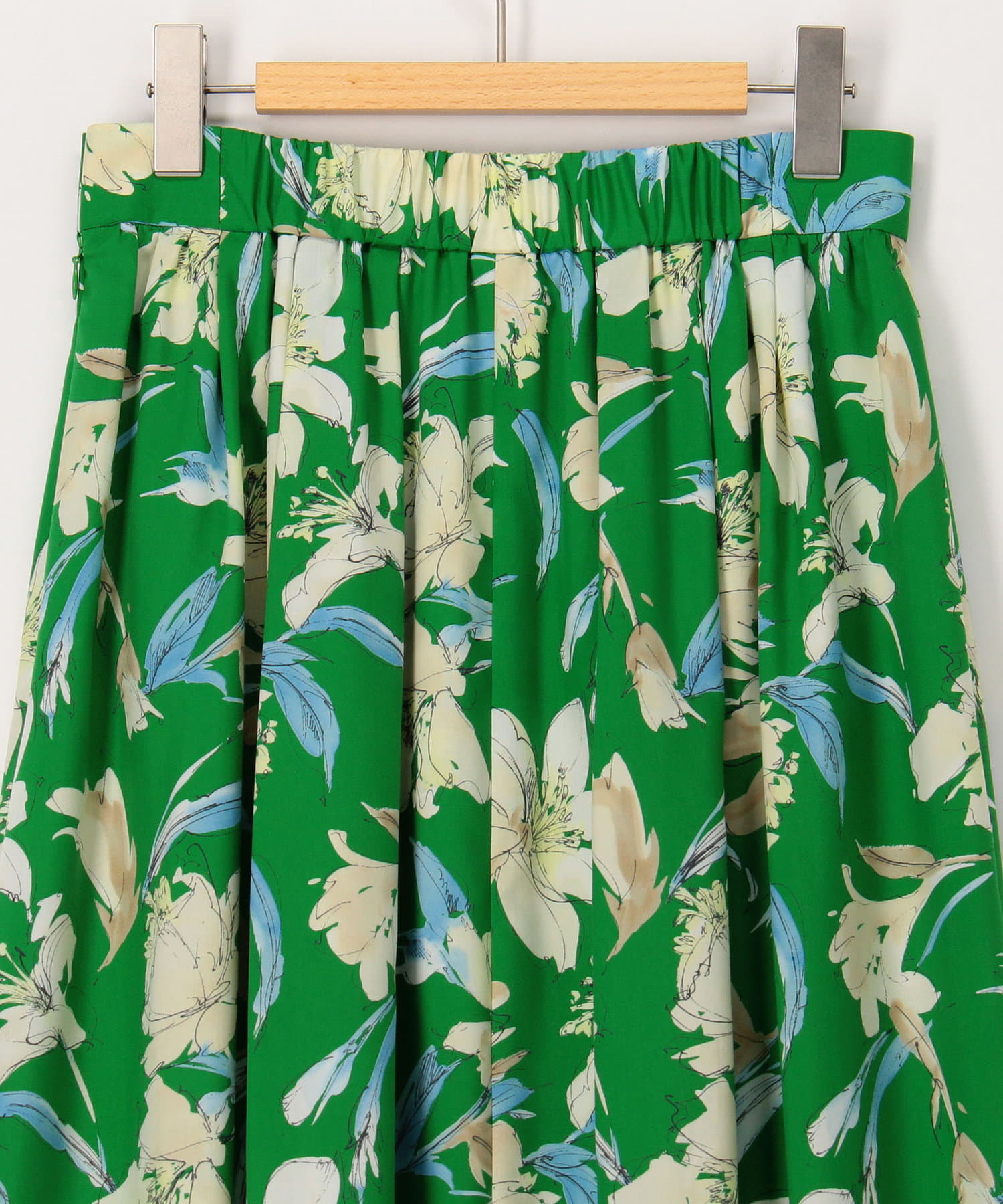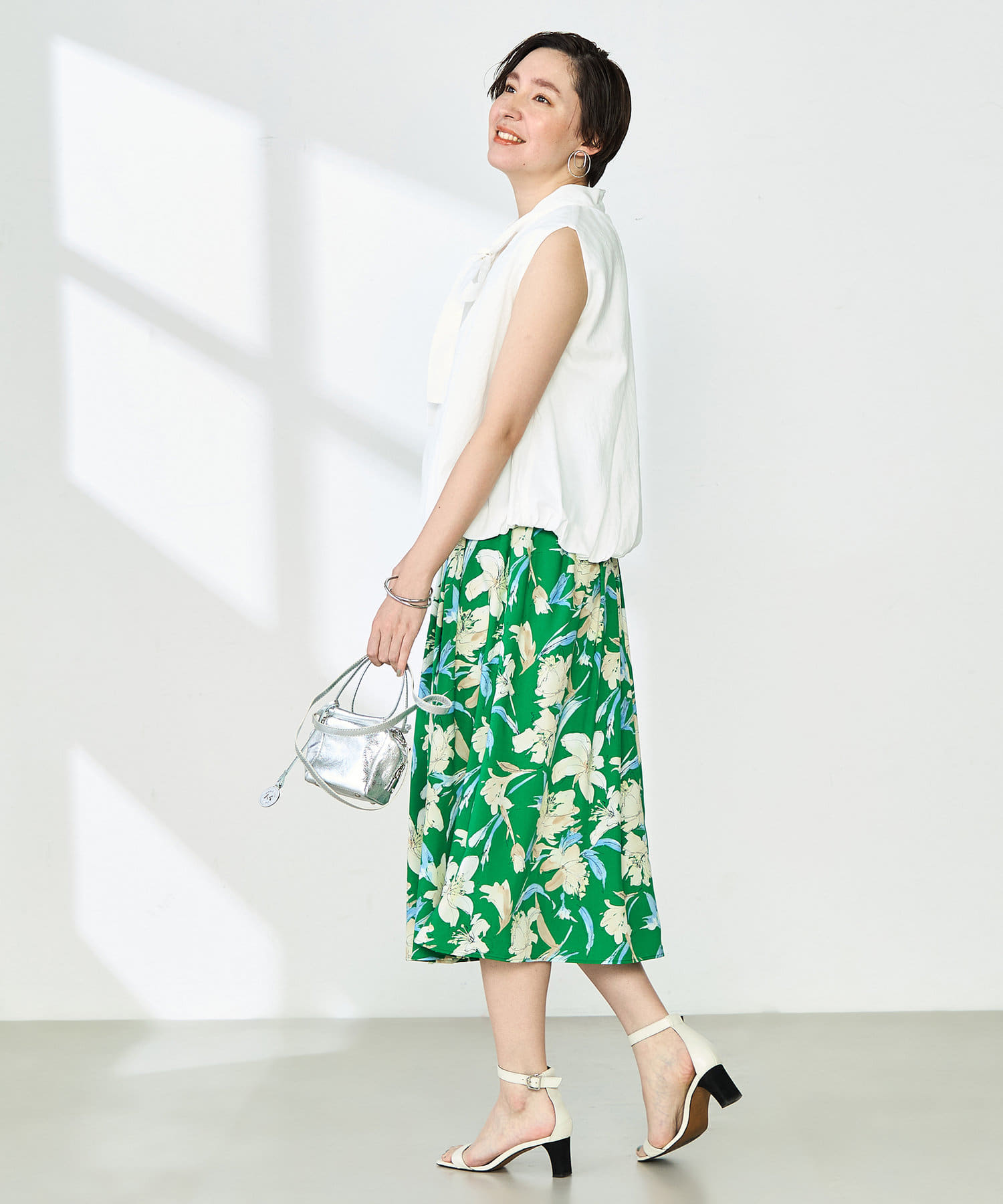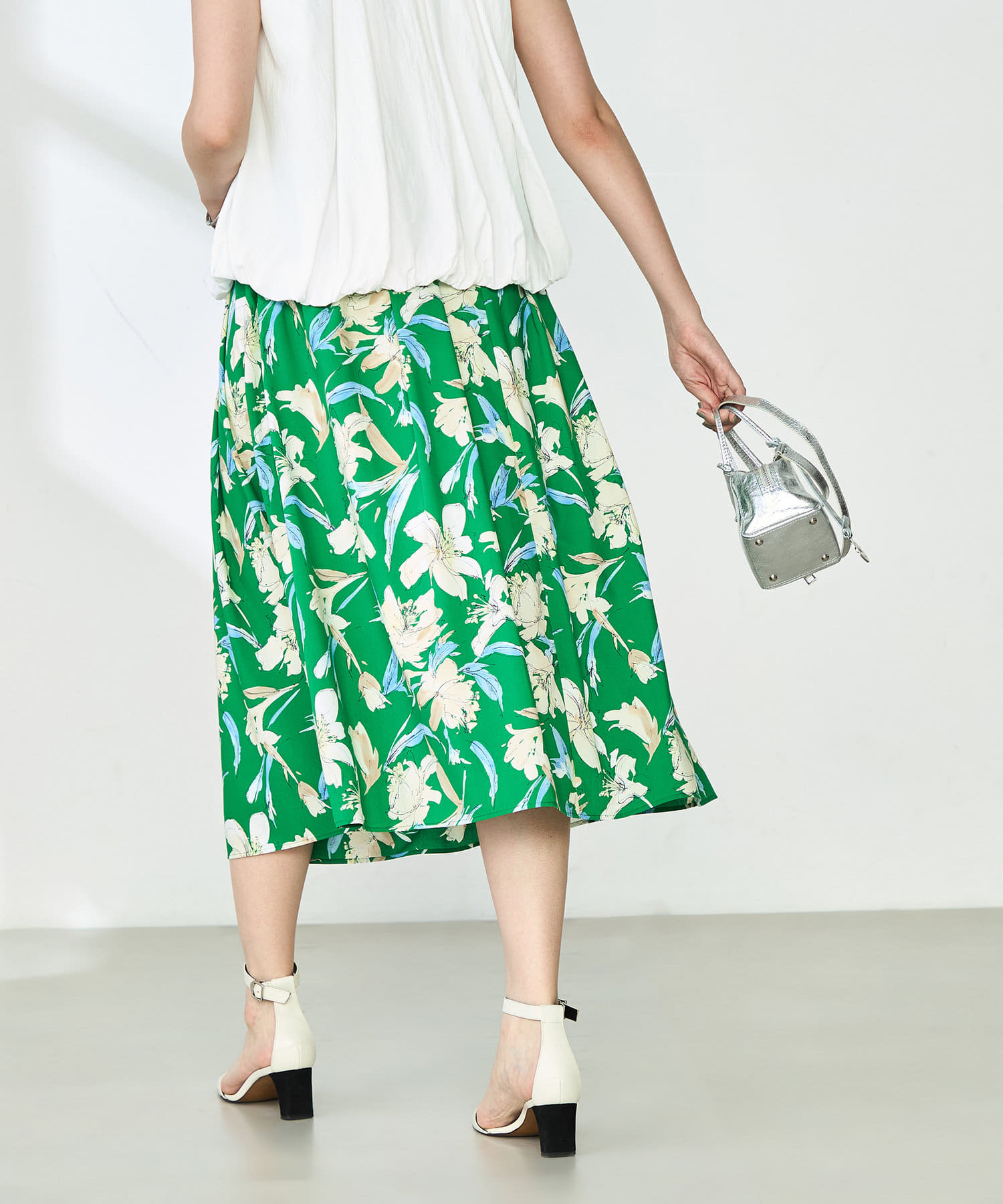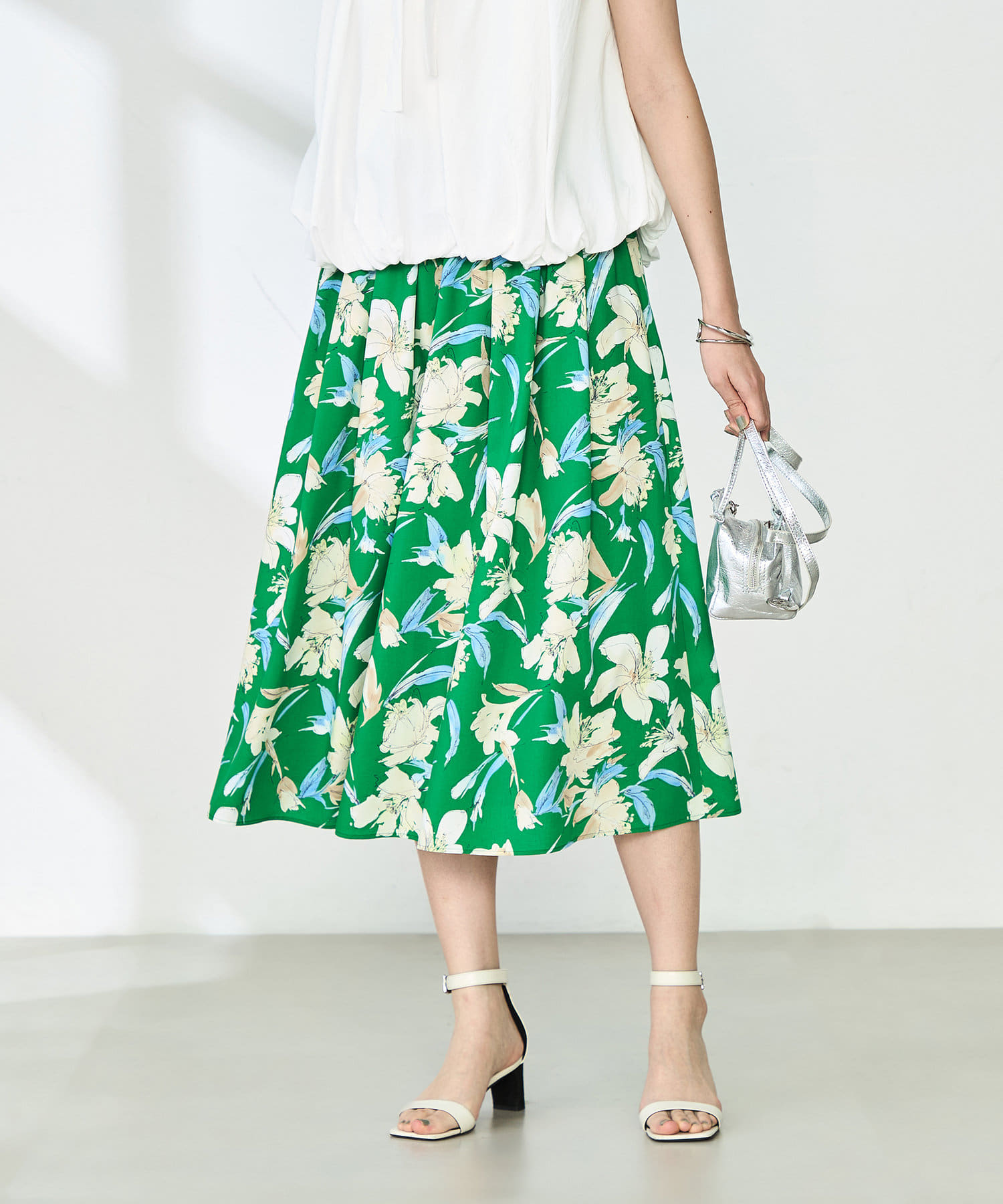 ・初夏らしい鮮やかなグリーンが基調のフラワープリントスカート