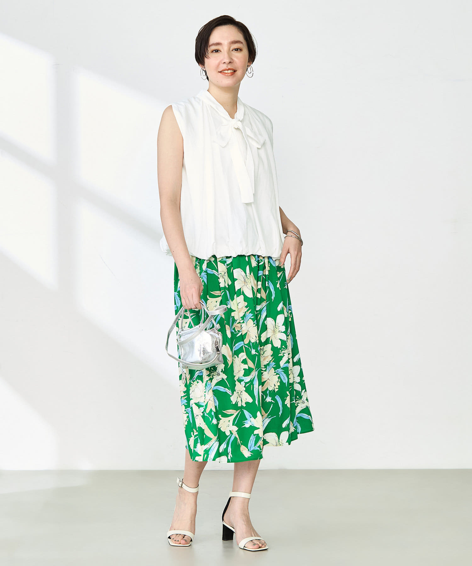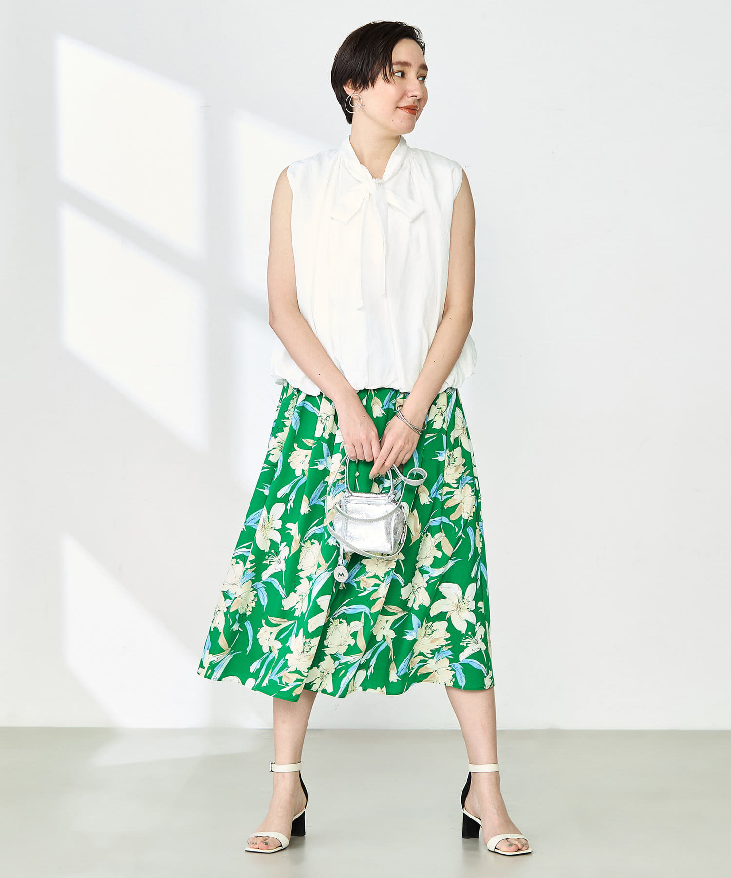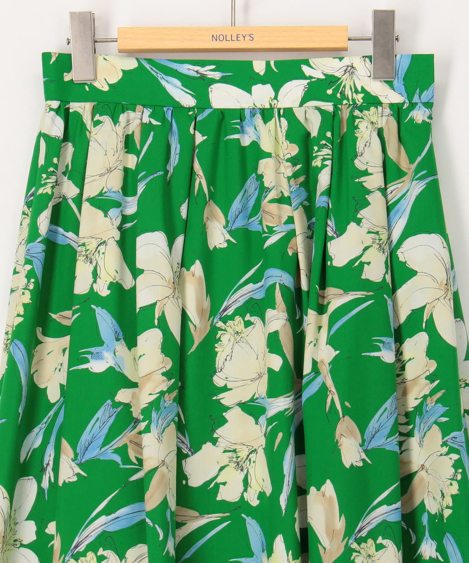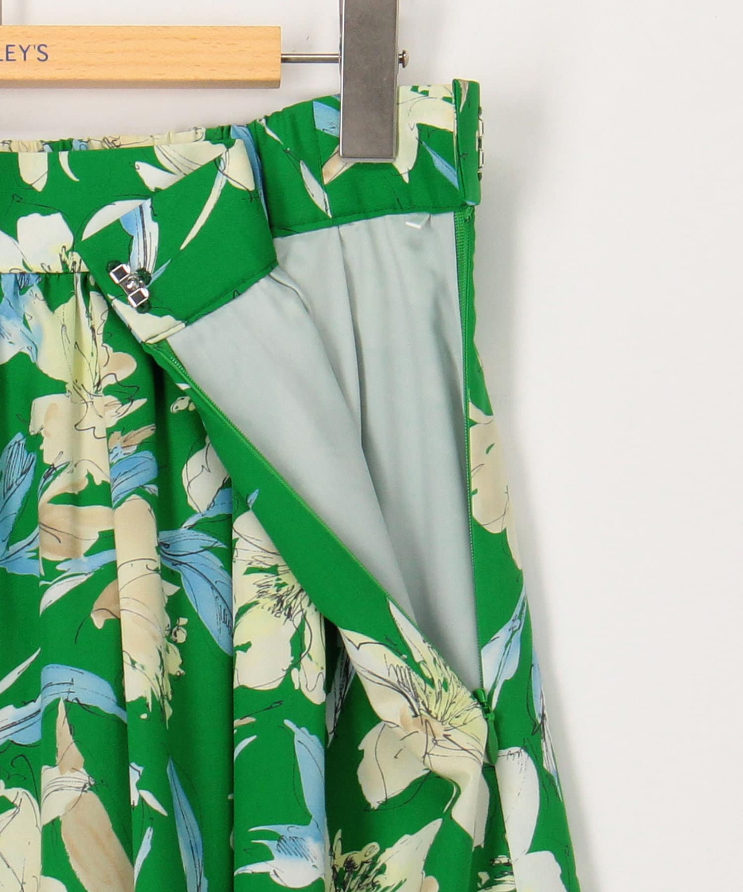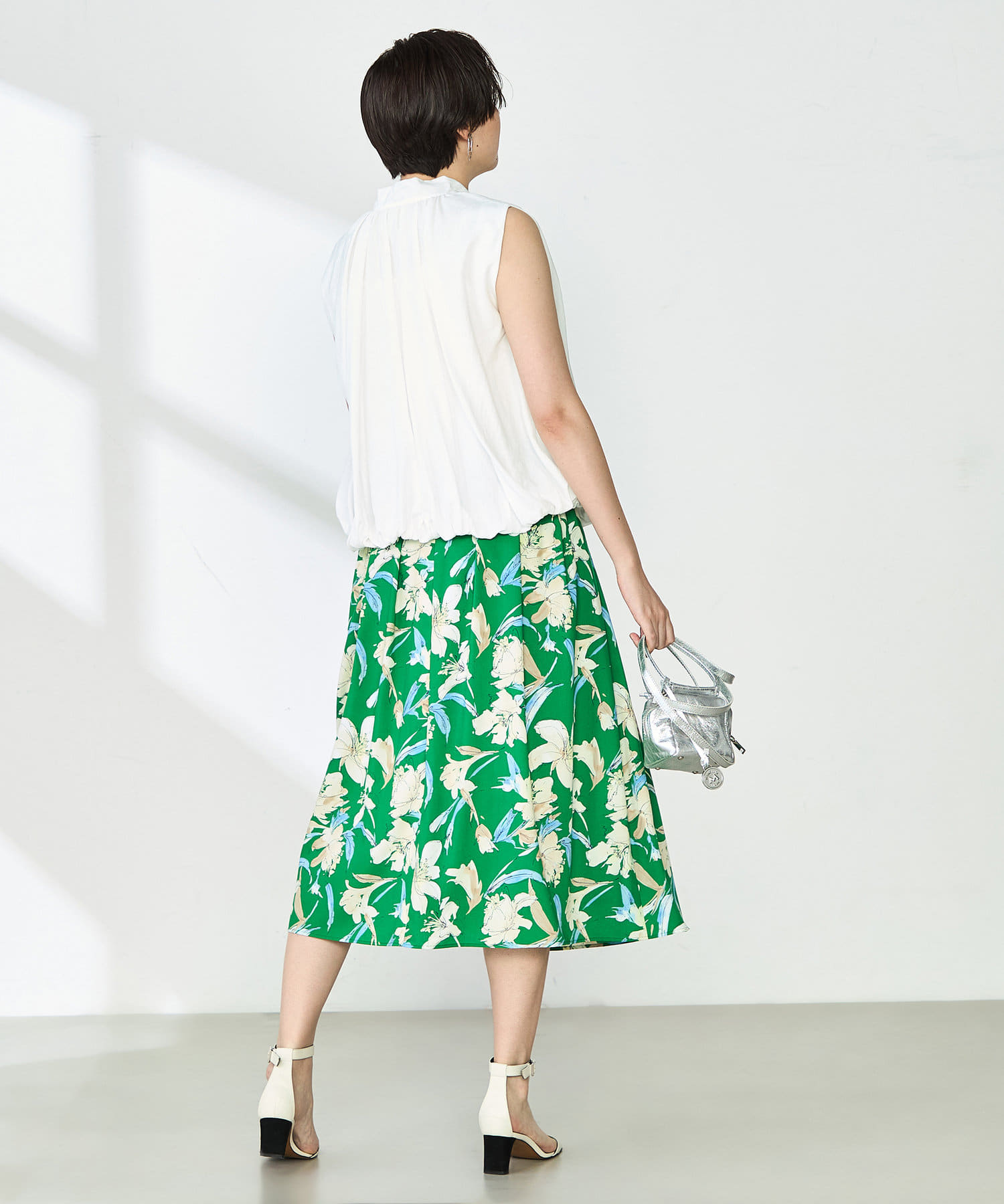 ・初夏らしい鮮やかなグリーンが基調のフラワープリントスカート