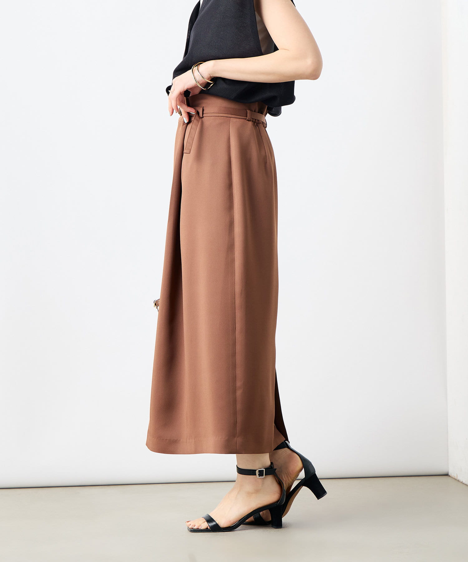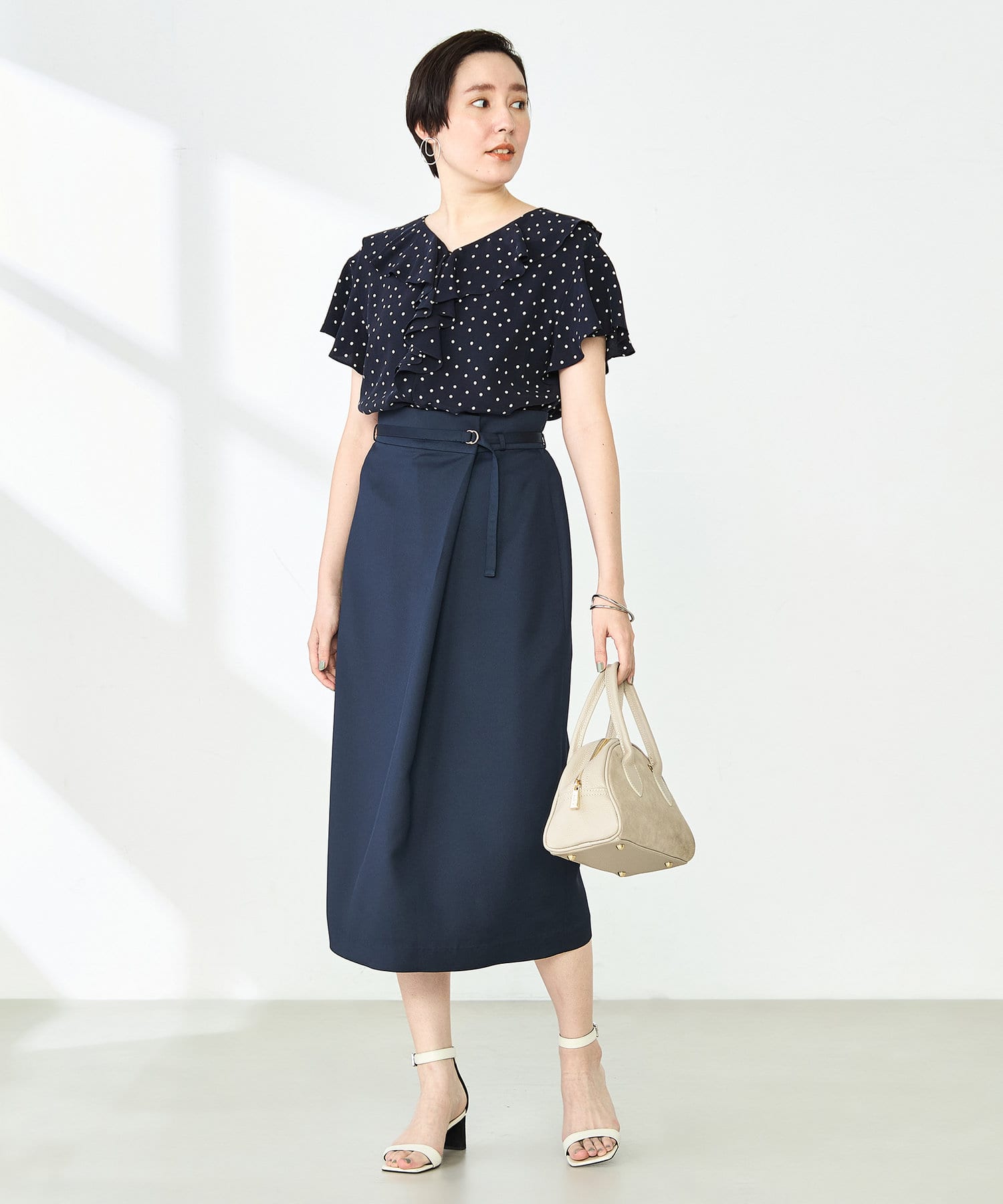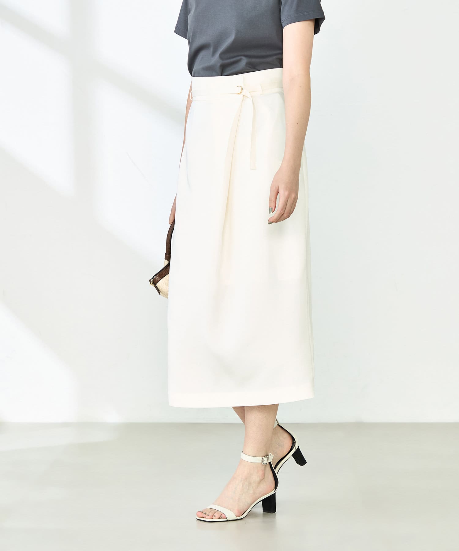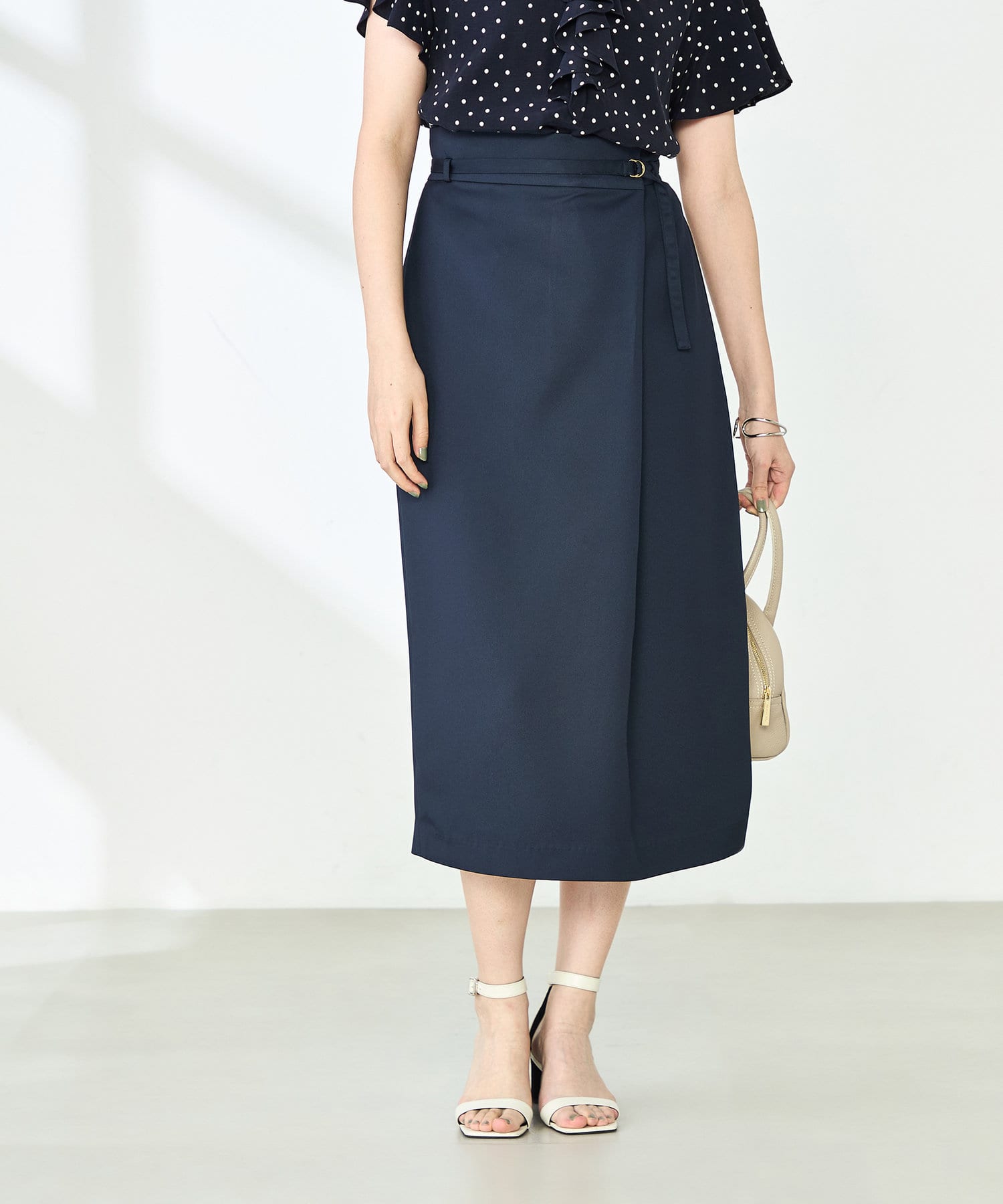 ・筒状の片側を折り込み、ラップ風にデザインされたスカート