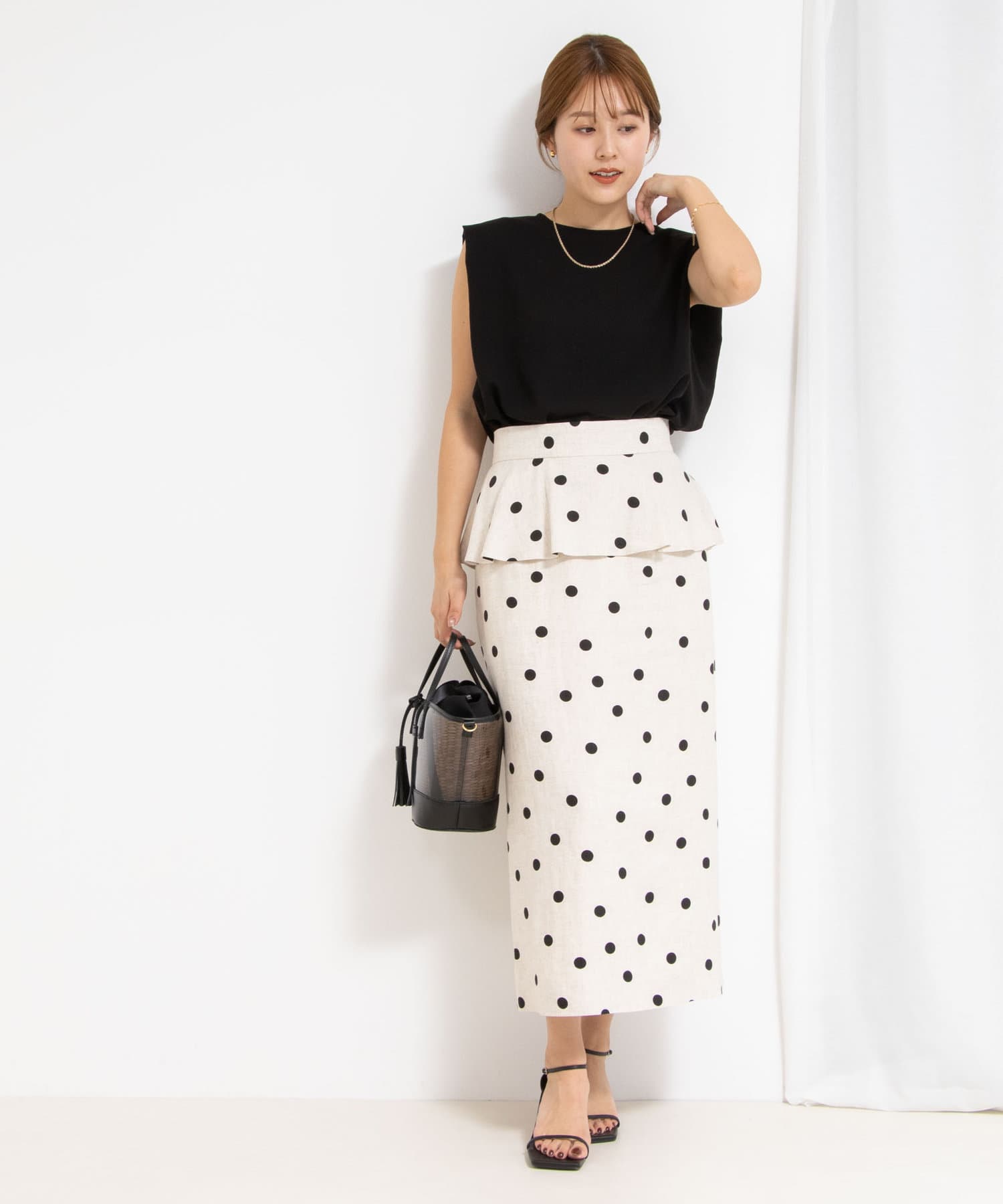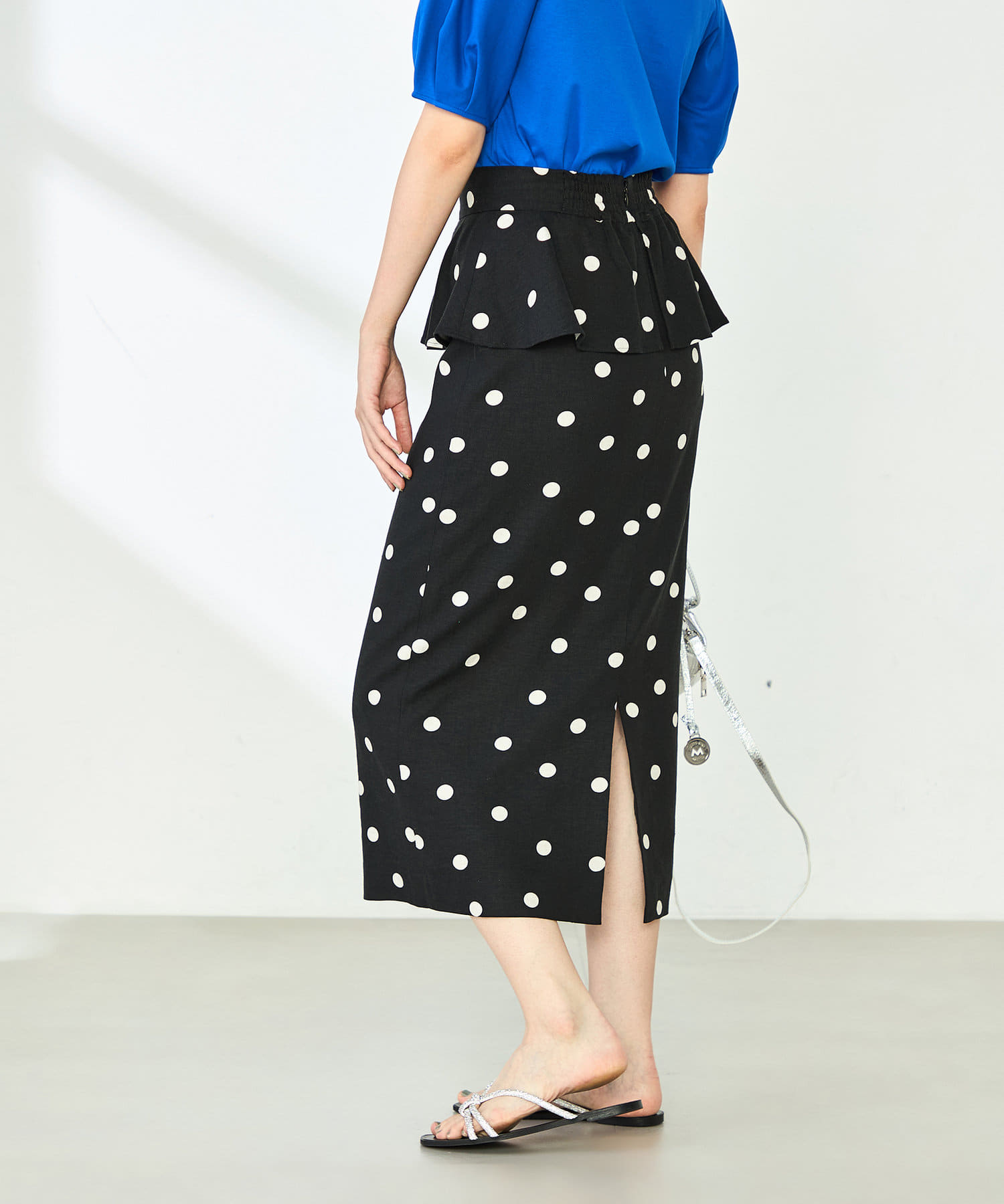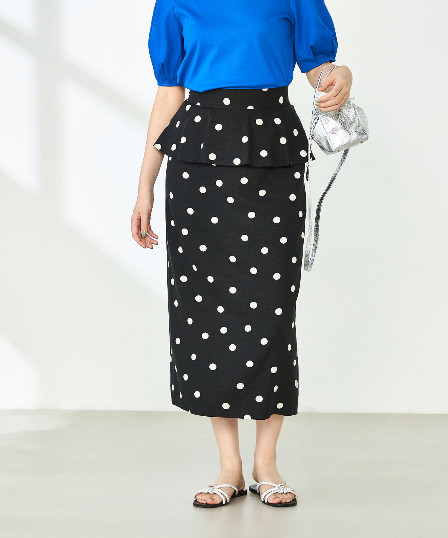 ウォッシャブルドットプリントタイトミディスカート