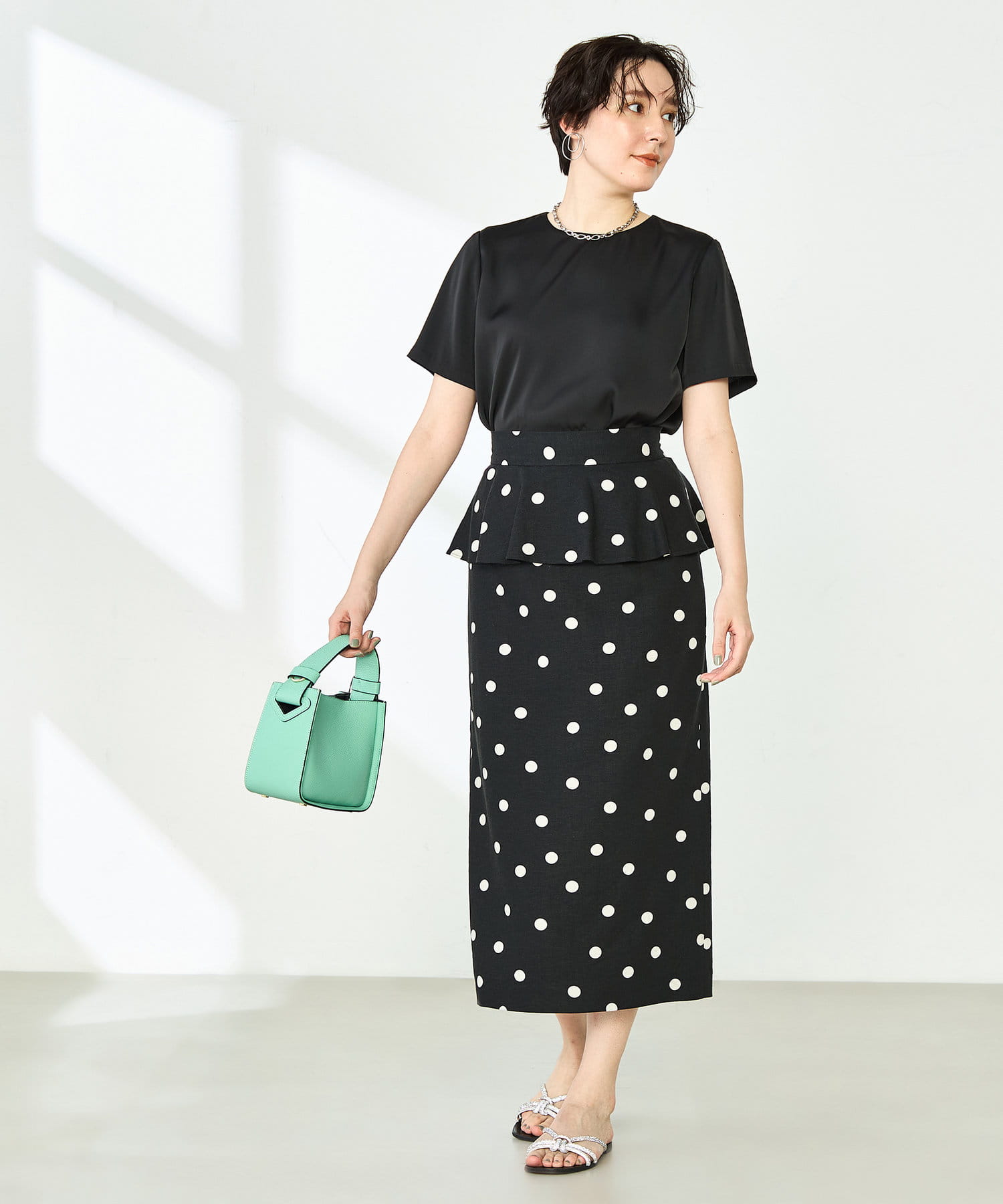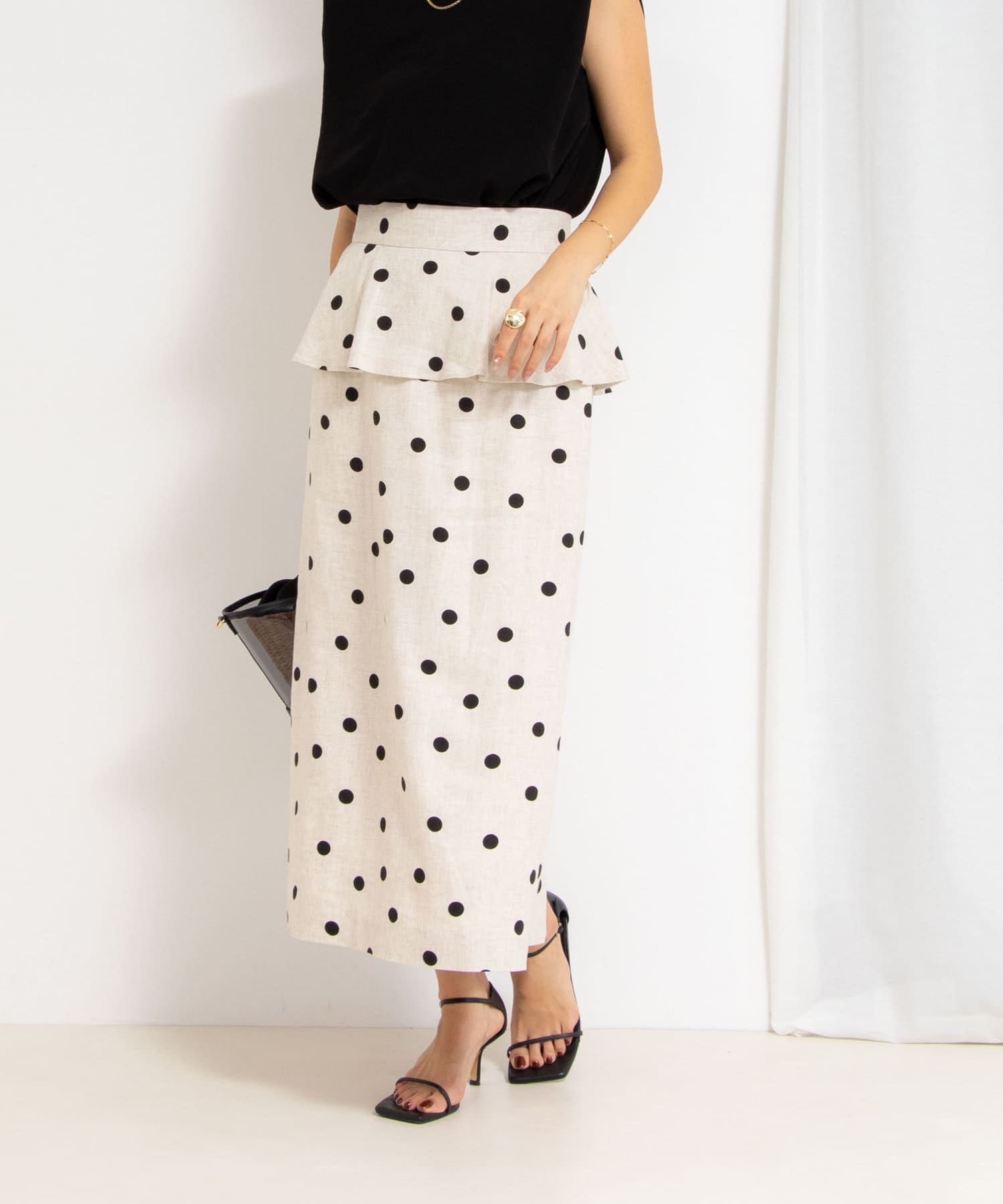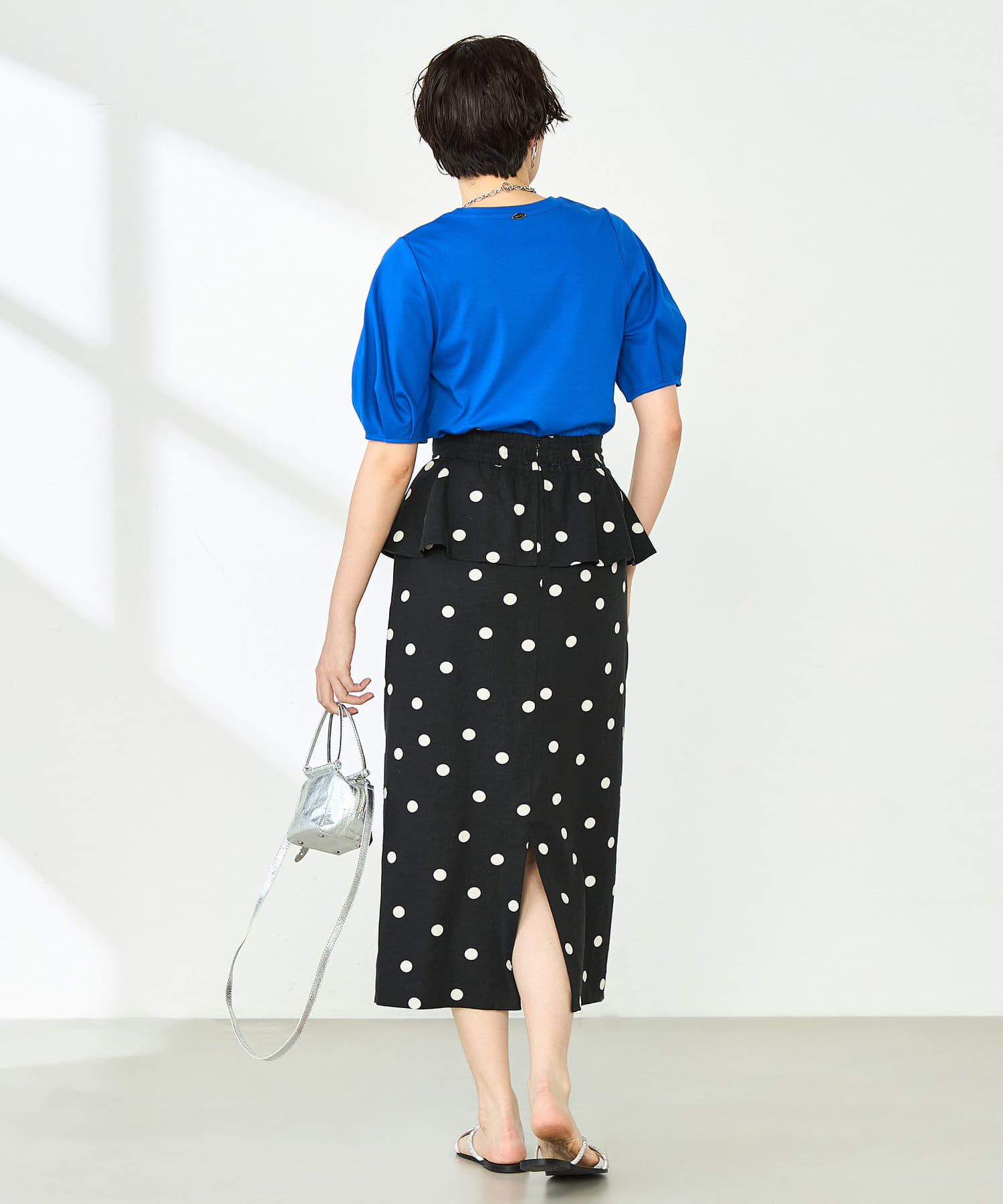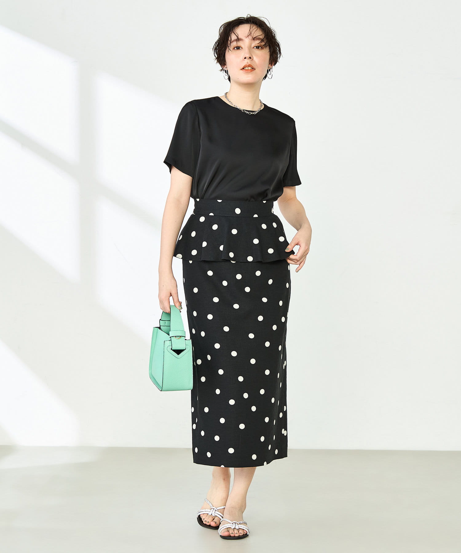 ウォッシャブルドットプリントタイトミディスカート