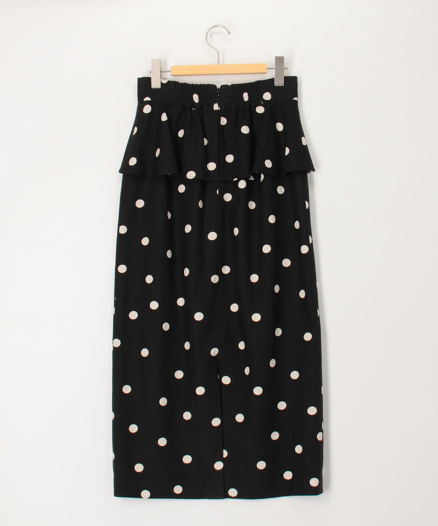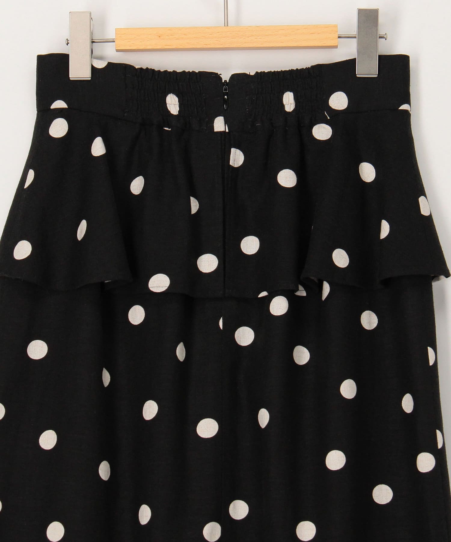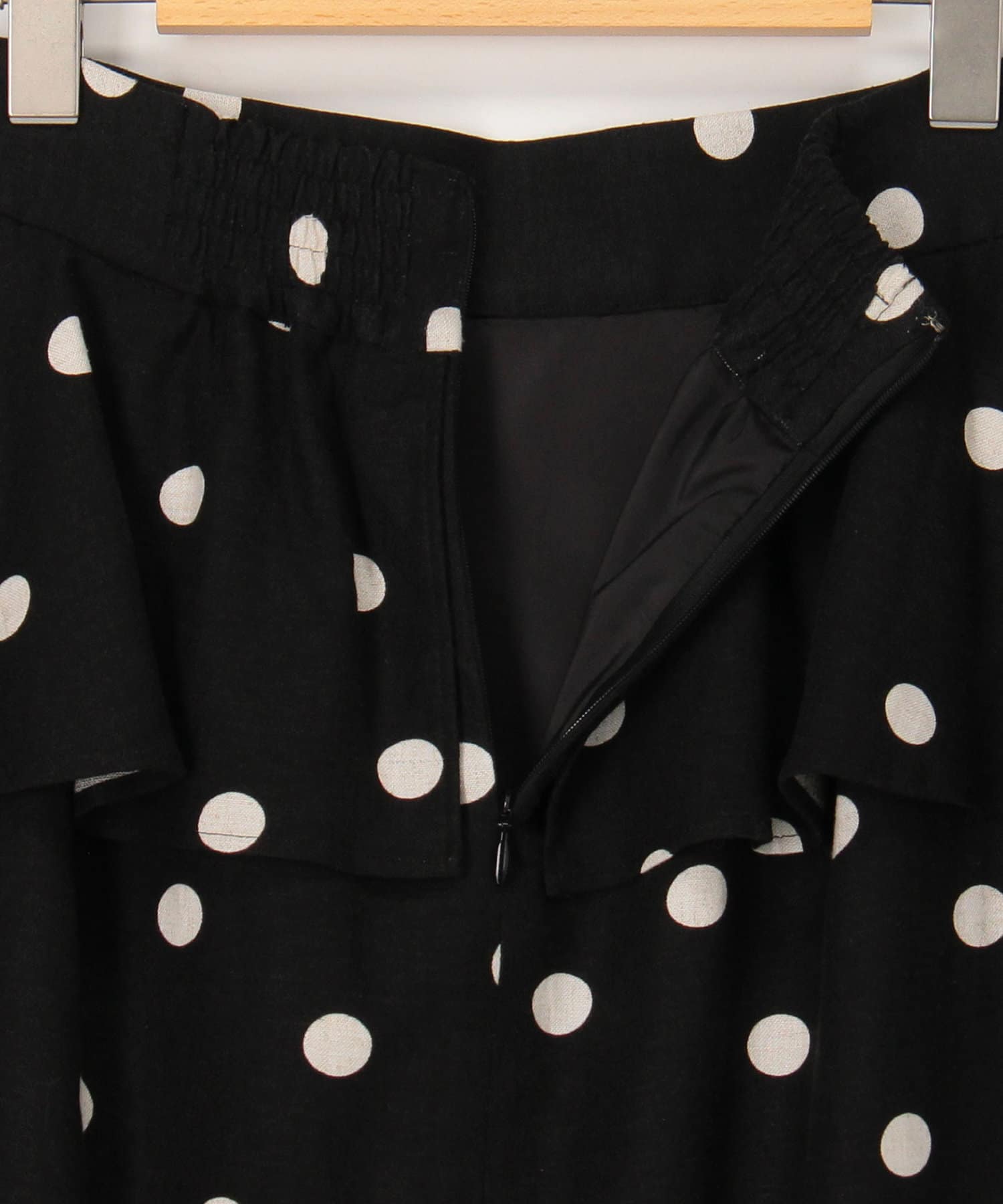 ・ウエストのラッフルパーツが可愛いドットプリントスカート