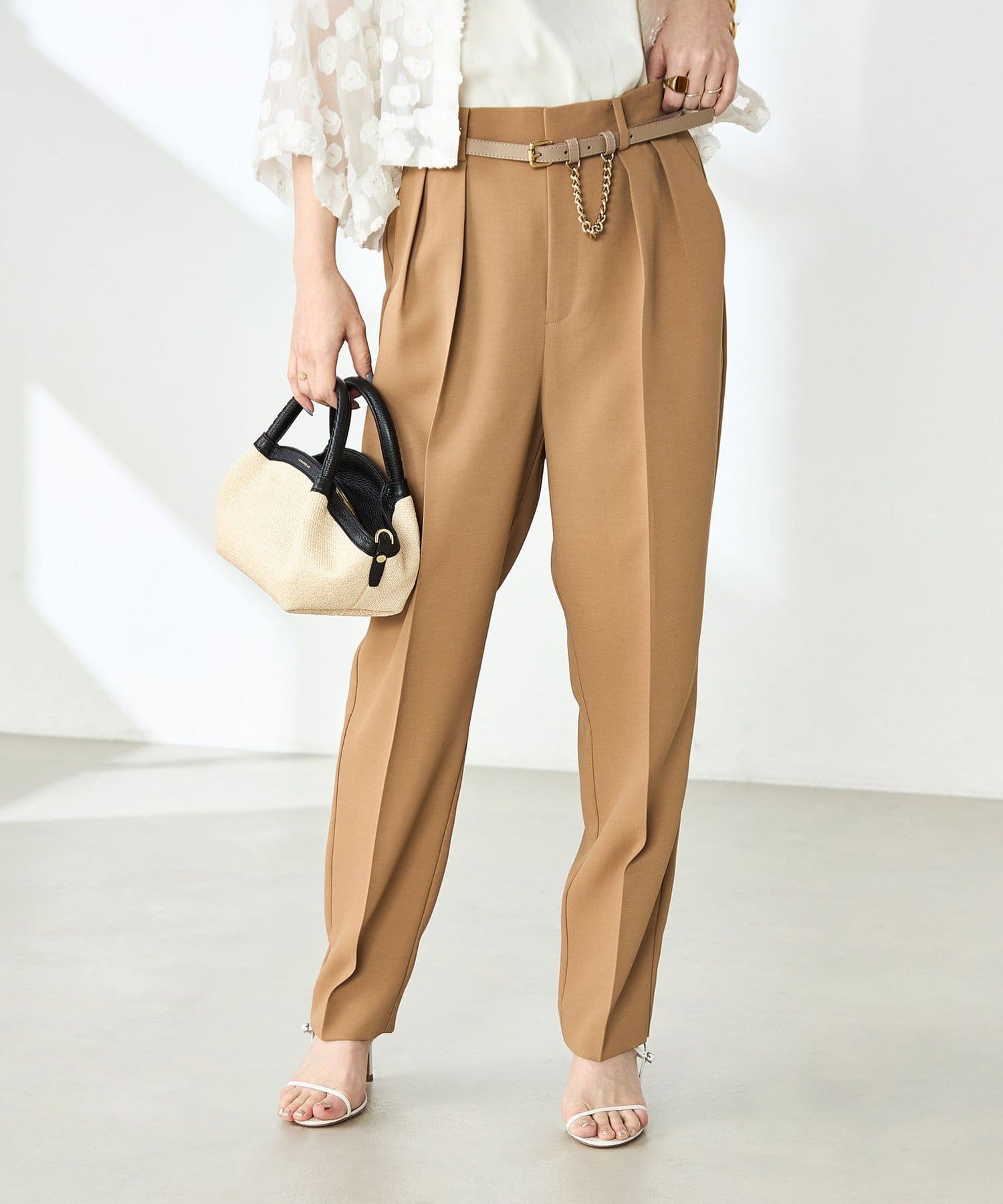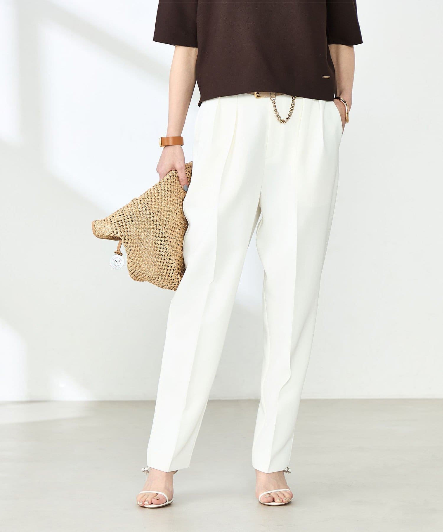 ウォッシャブル防しわスパンツイルツータックテーパードパンツ
