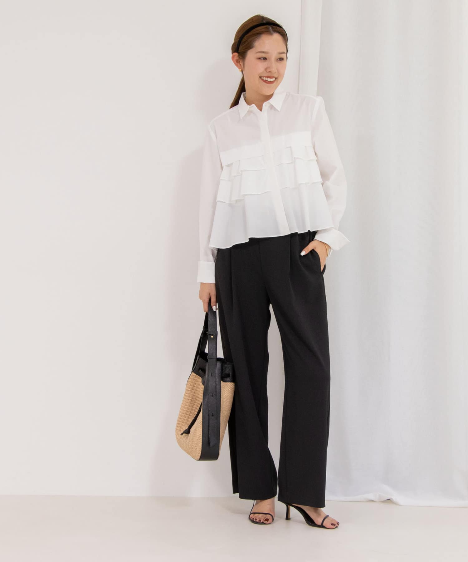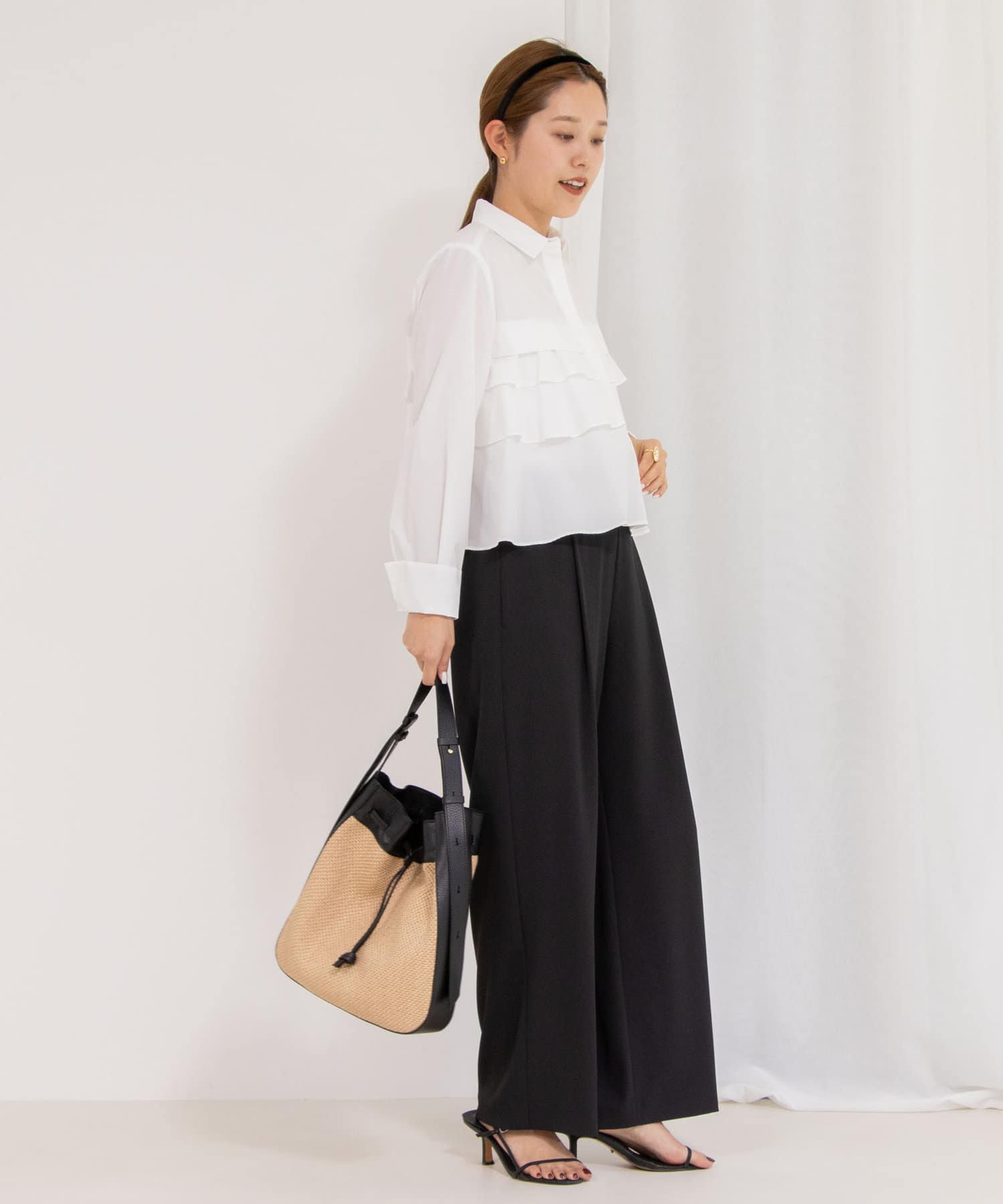 ・人気の梳毛調合繊素材を使用したワンタック・セミワイドシルエットパンツ