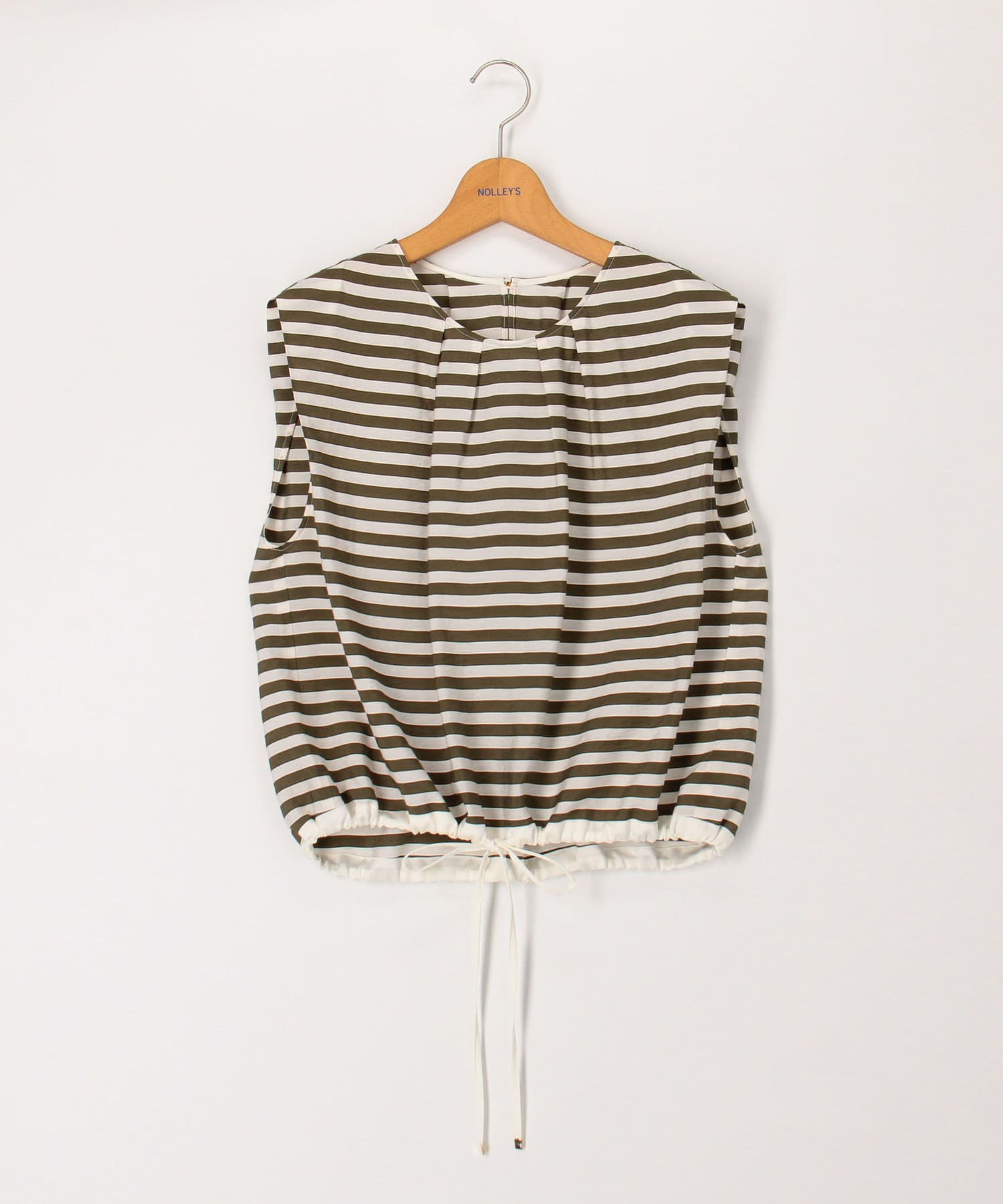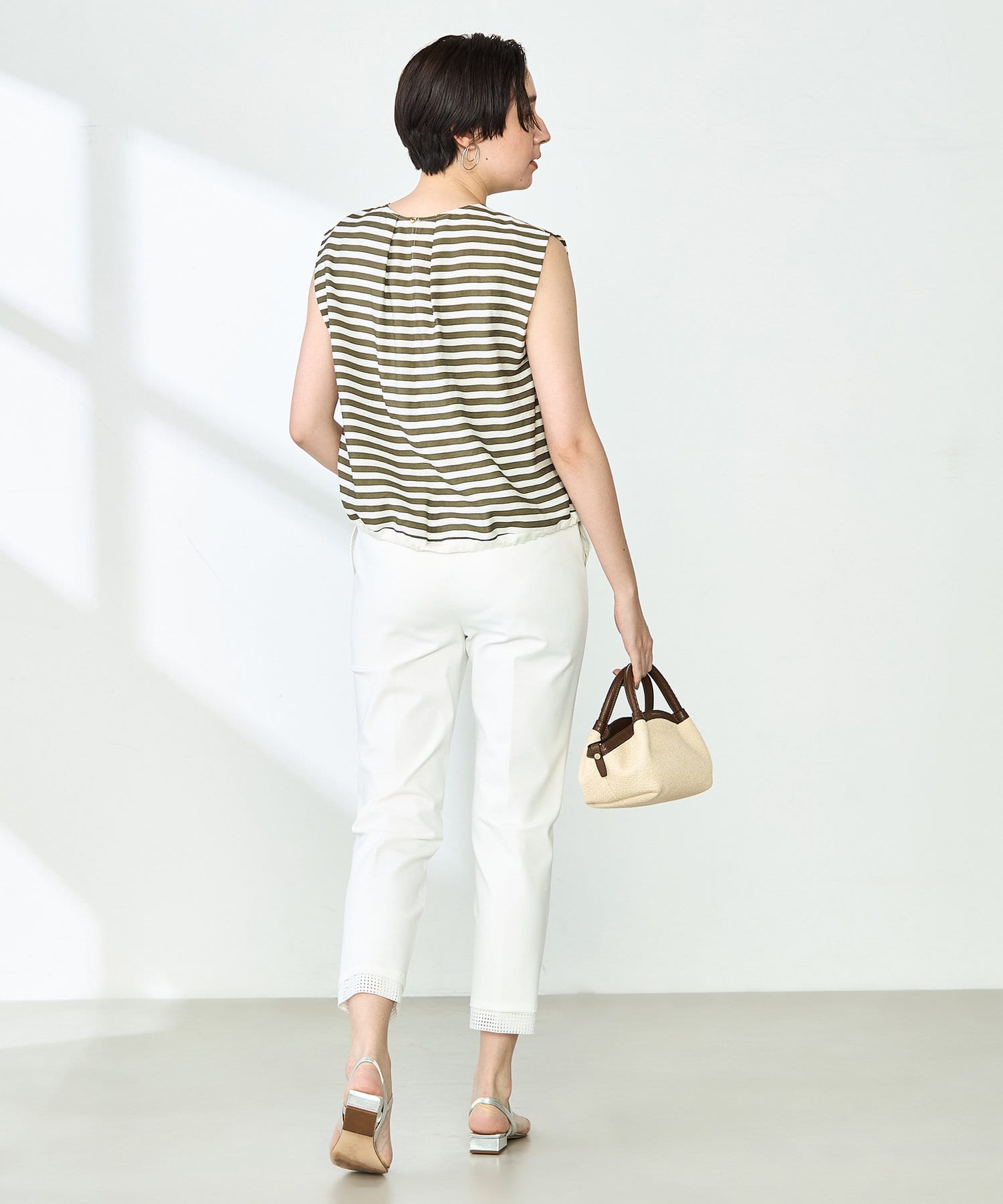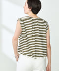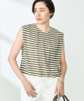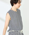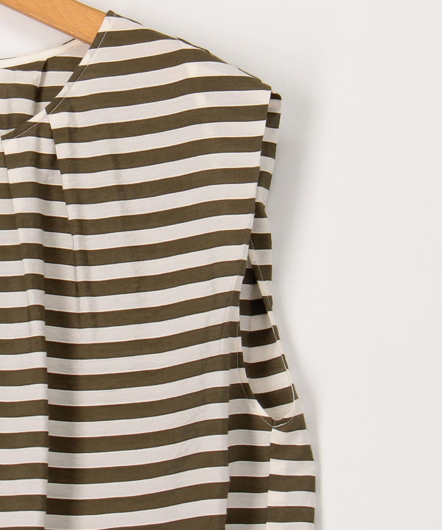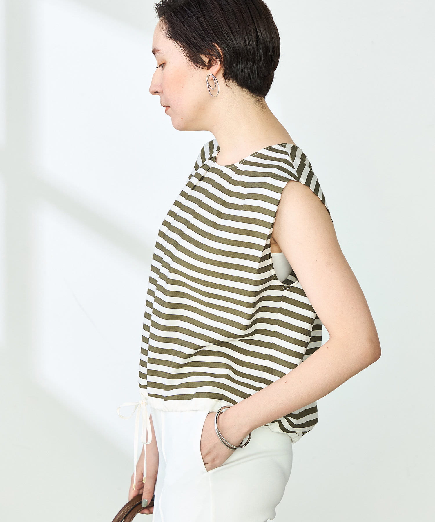 ・夏らしい爽やかさのあるボーダーノースリーブブラウス