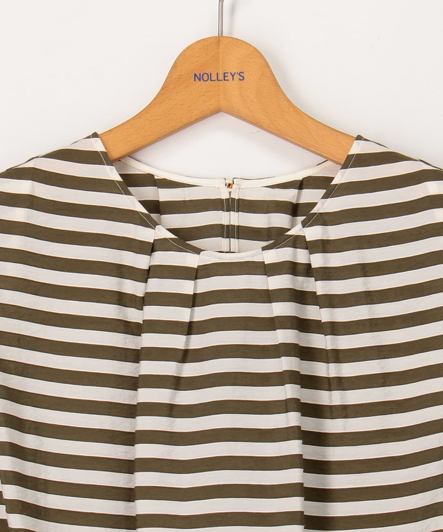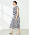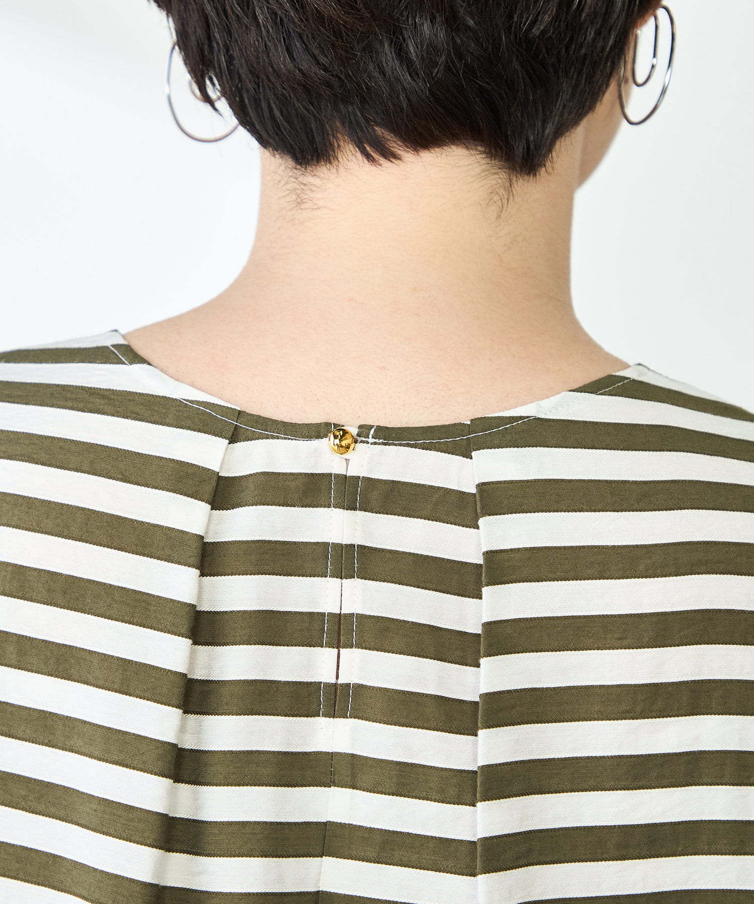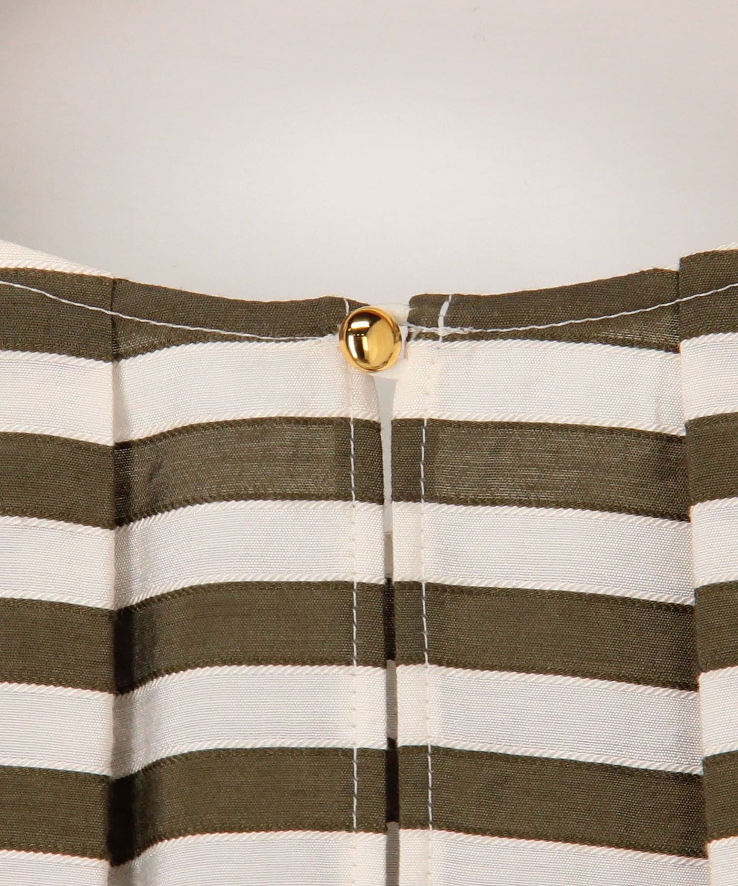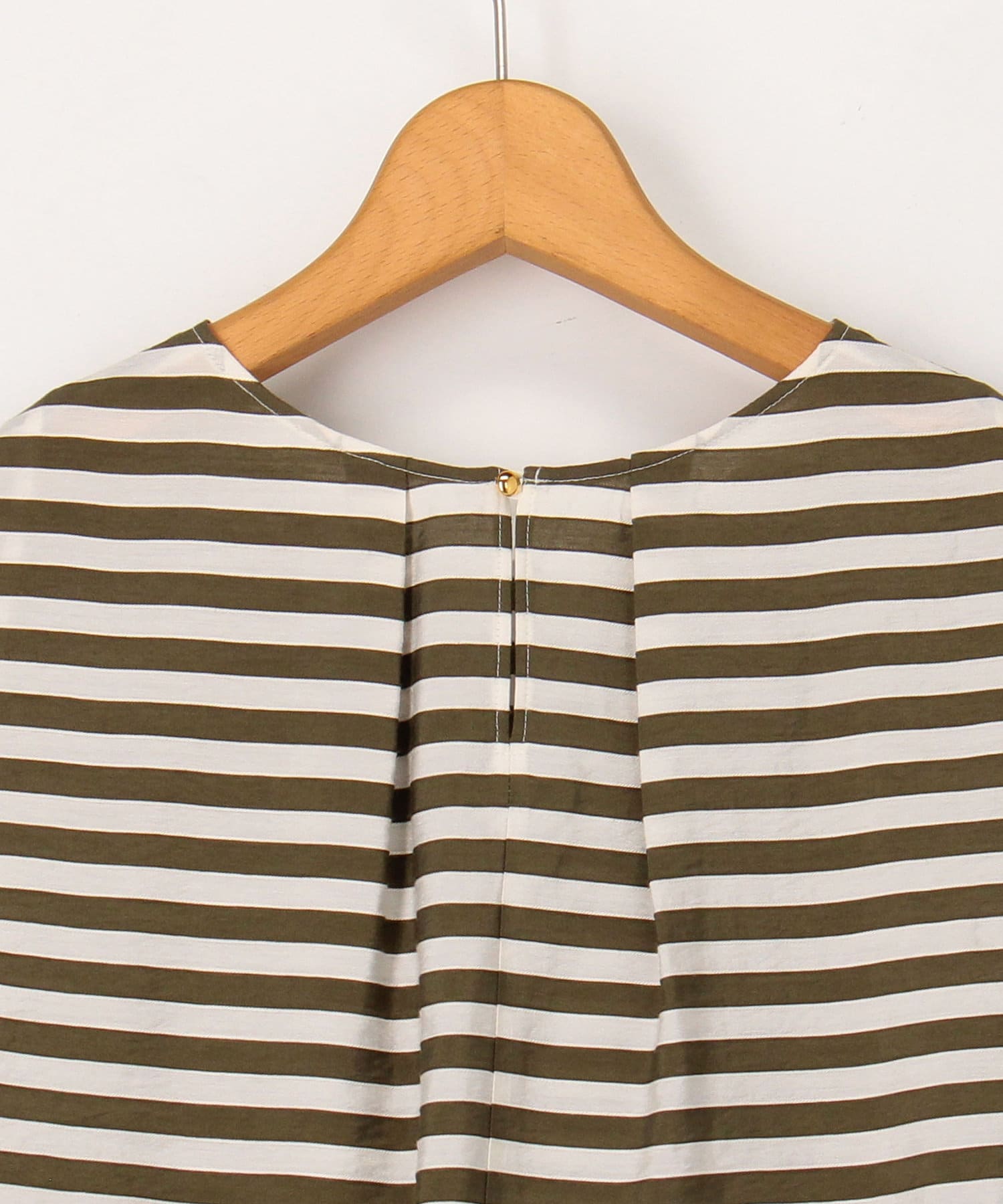 ・夏らしい爽やかさのあるボーダーノースリーブブラウス