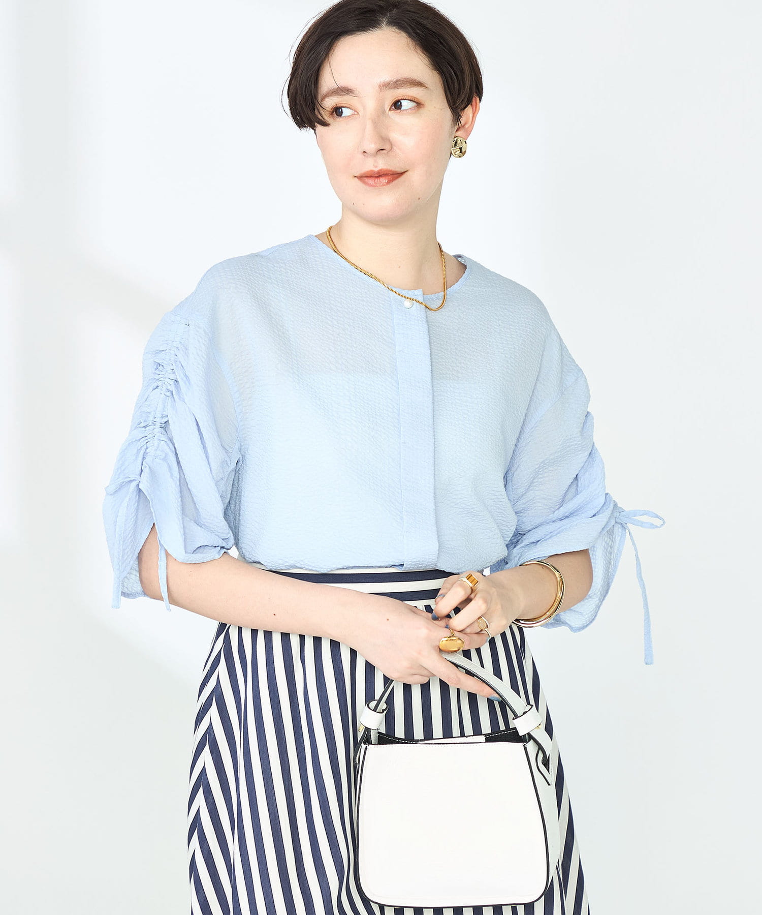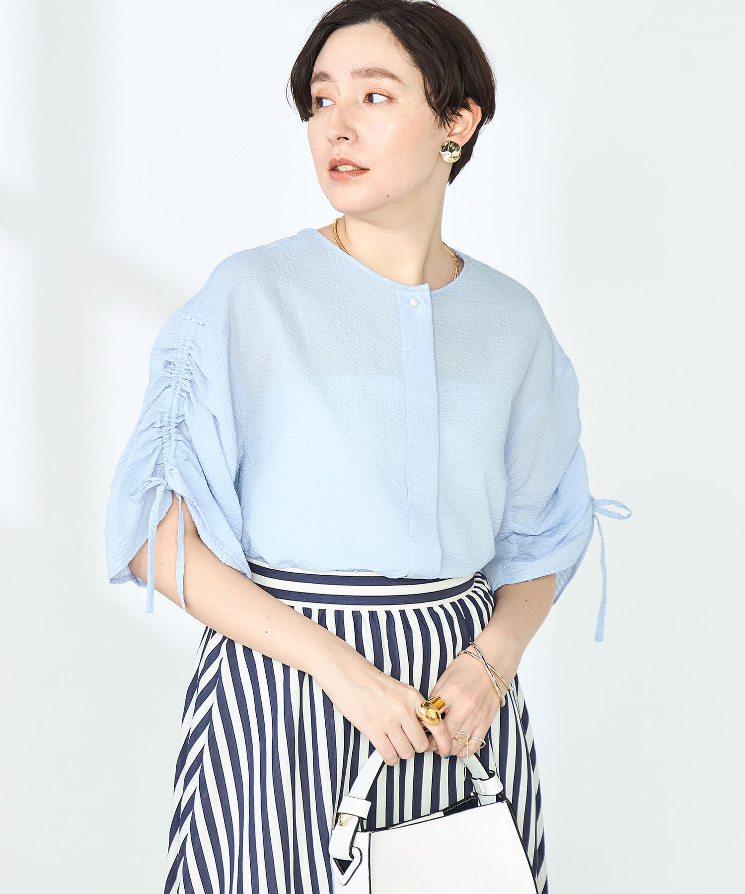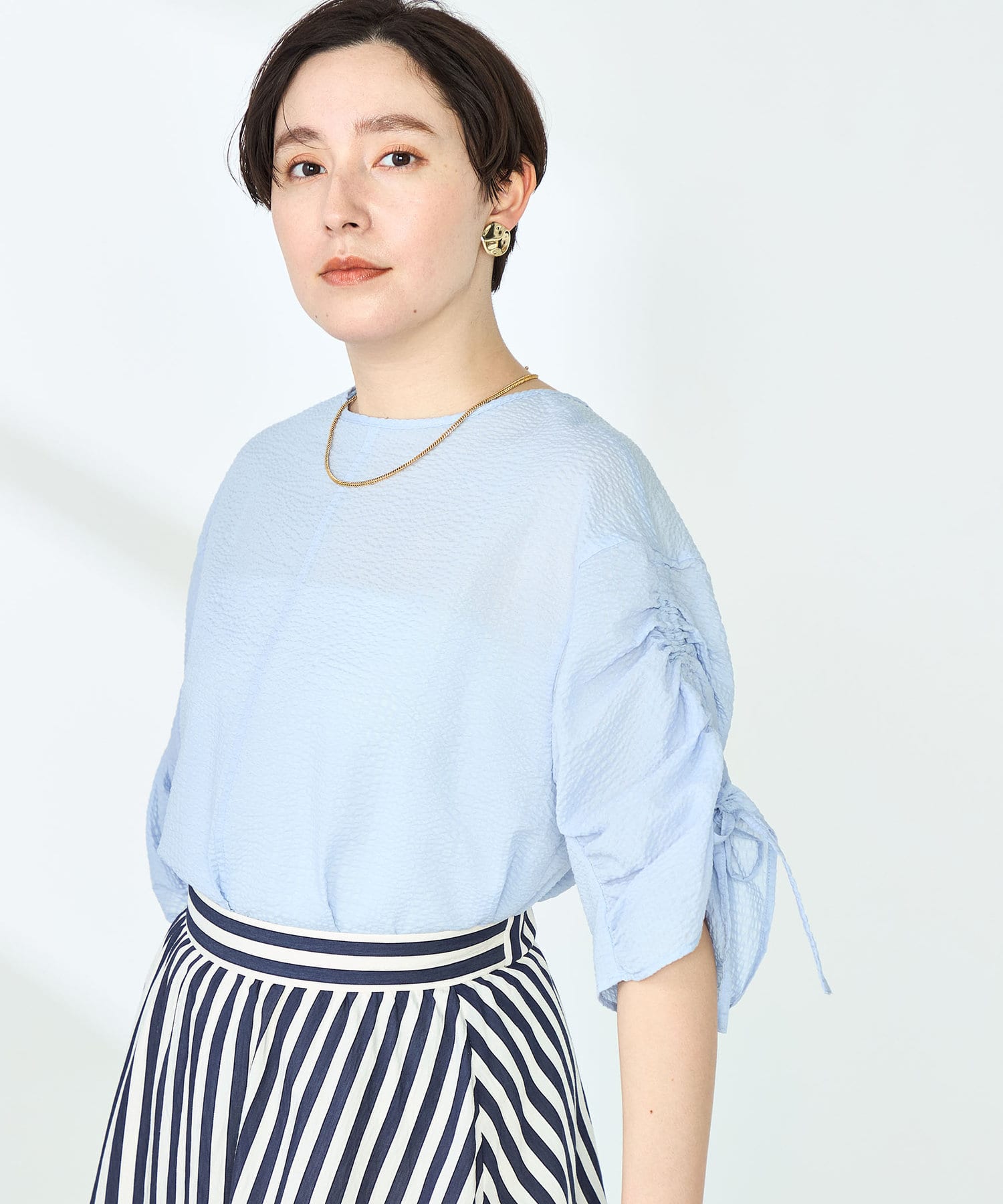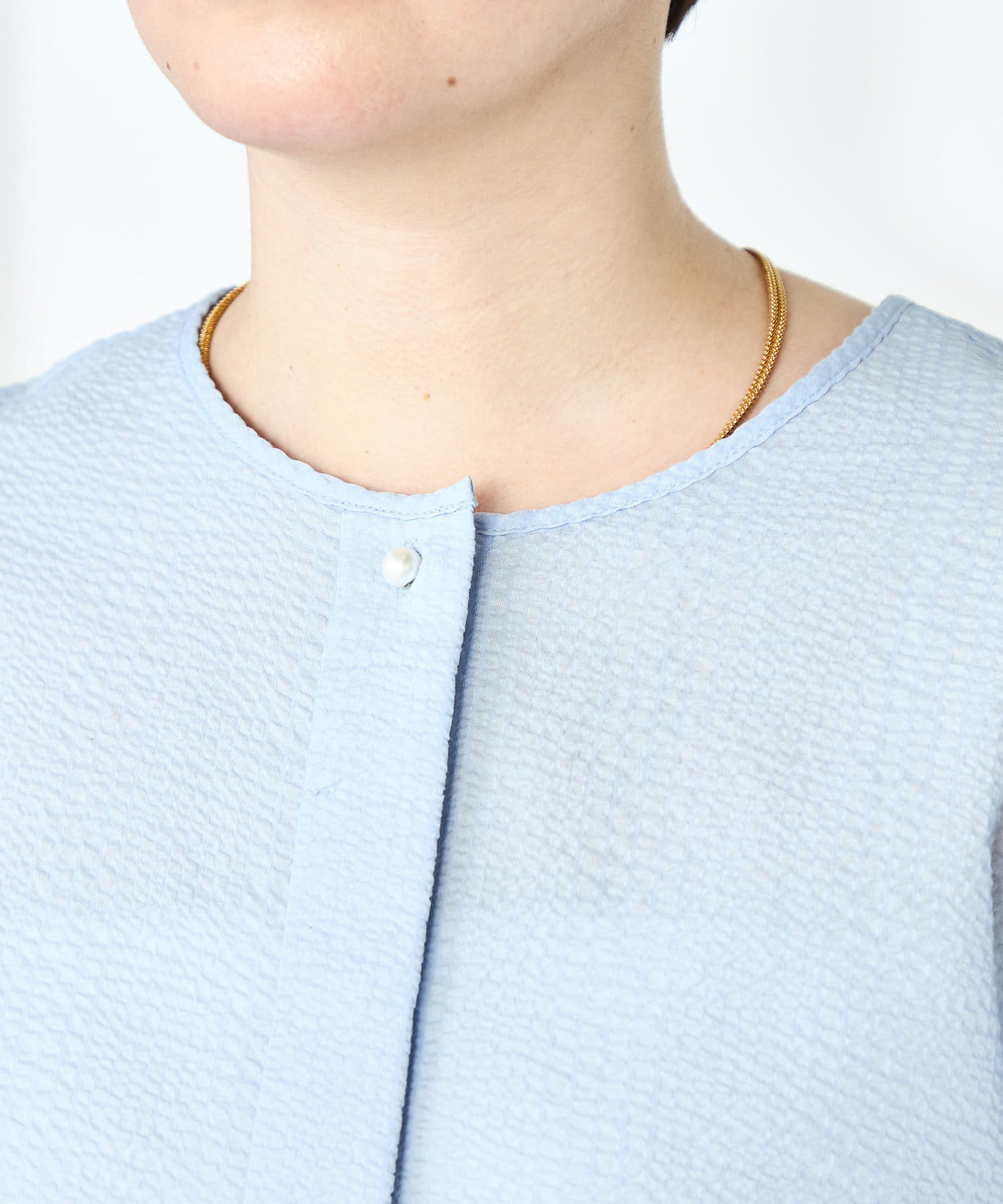 ・ポコポコとした表情のあるサッカー素材を使用した、夏らしく涼し気な1枚