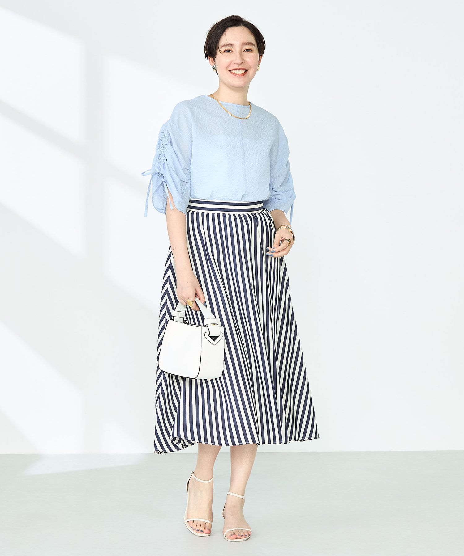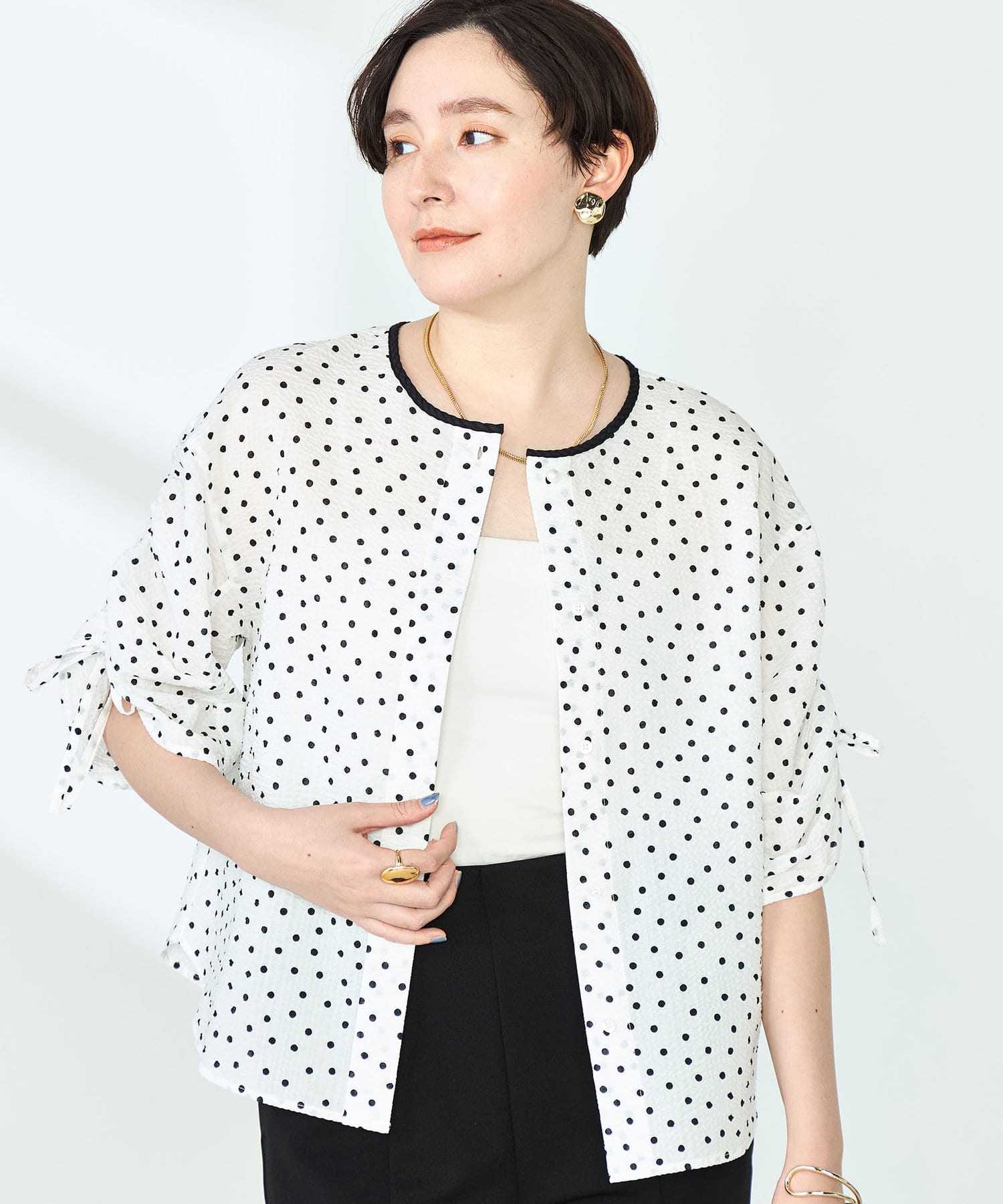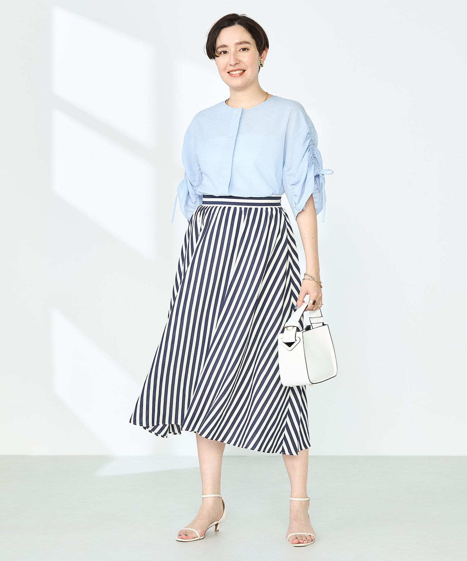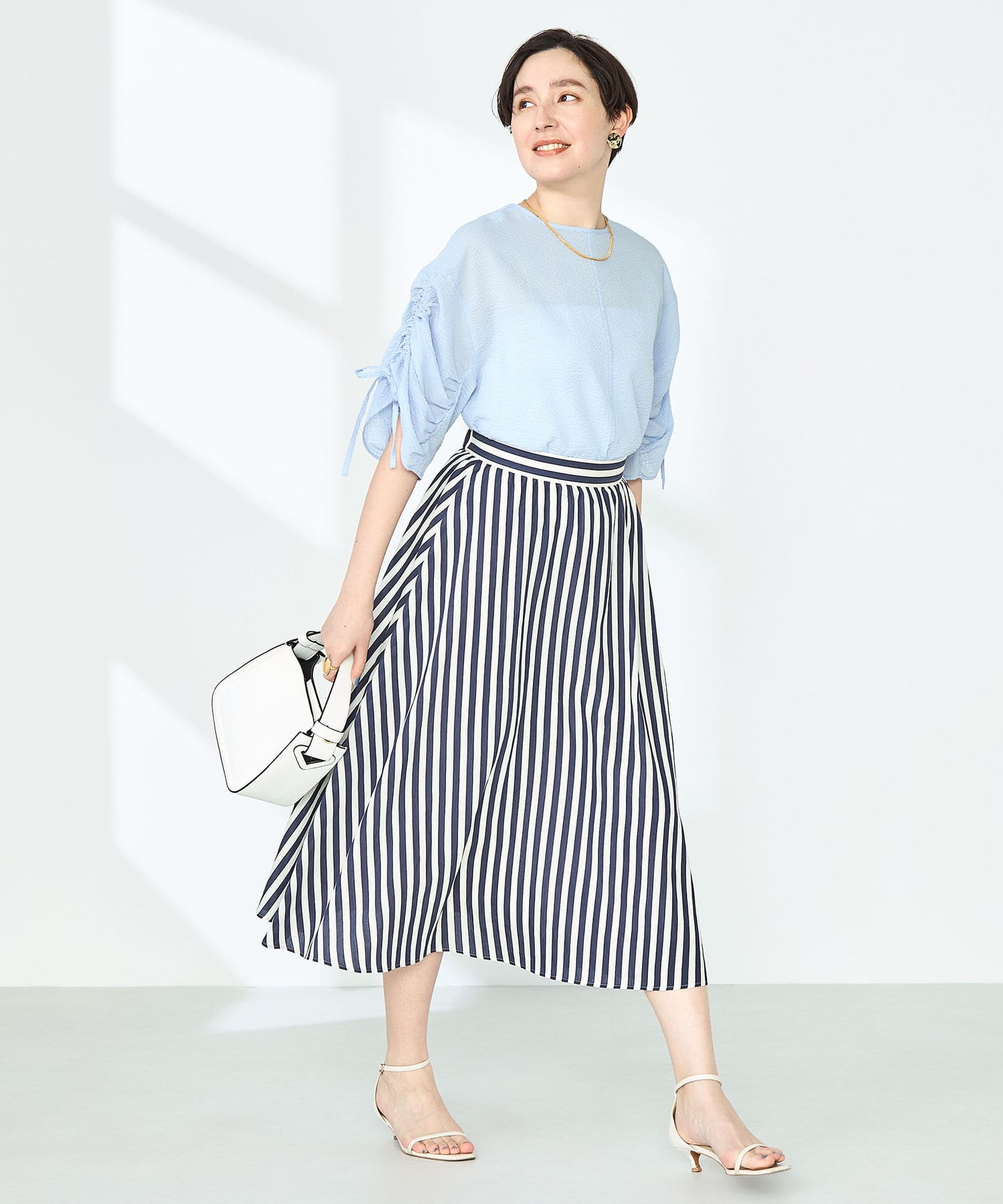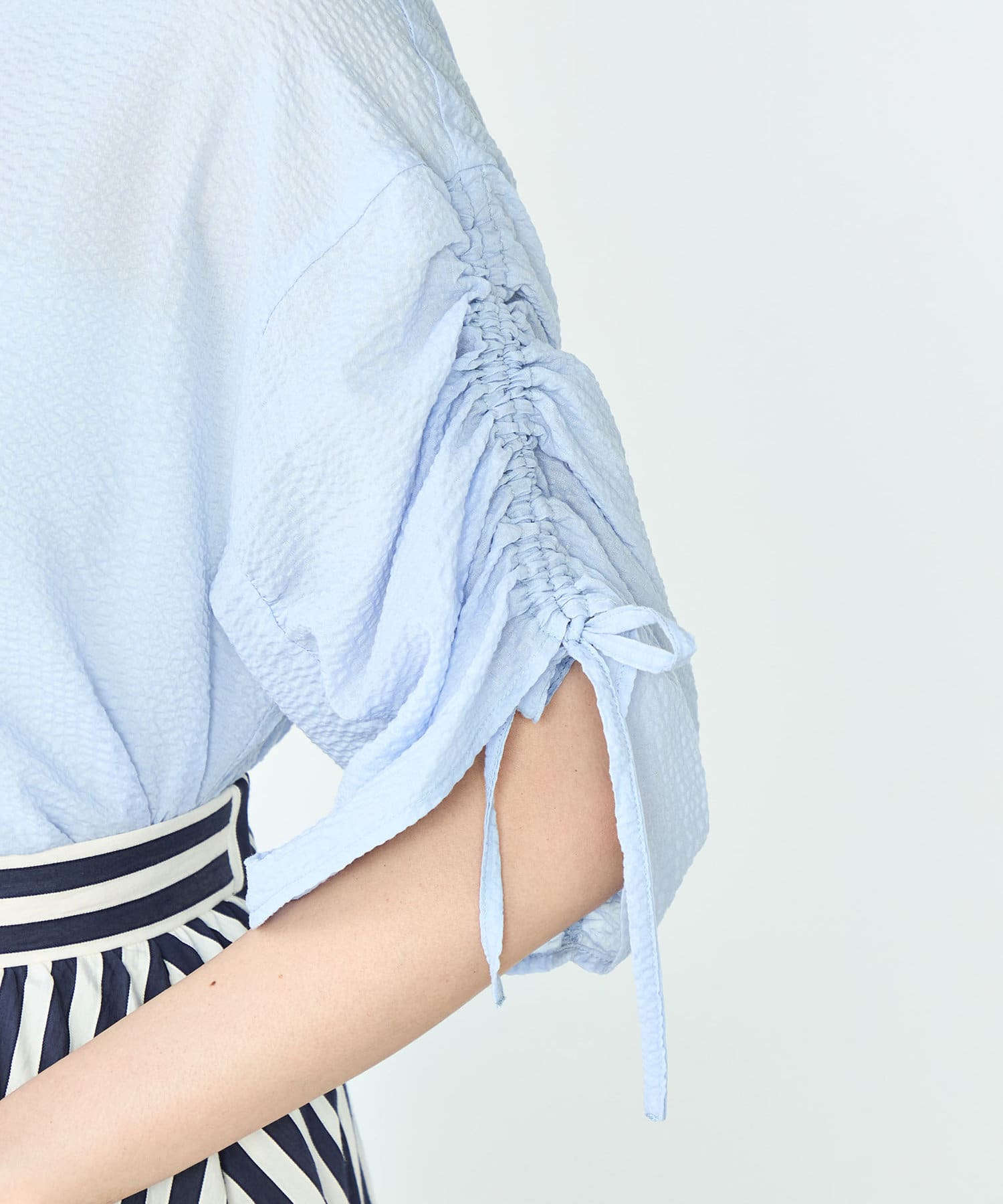 ・ポコポコとした表情のあるサッカー素材を使用した、夏らしく涼し気な1枚