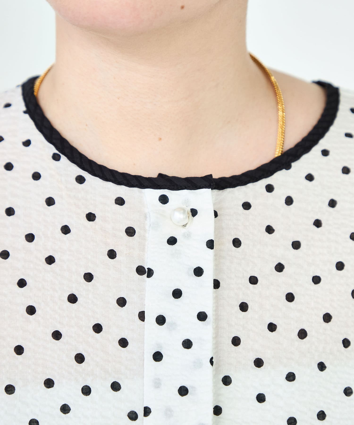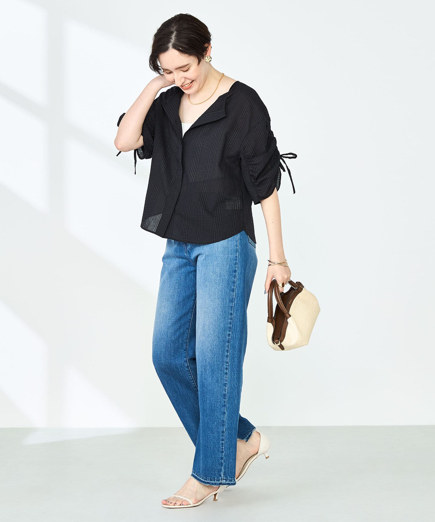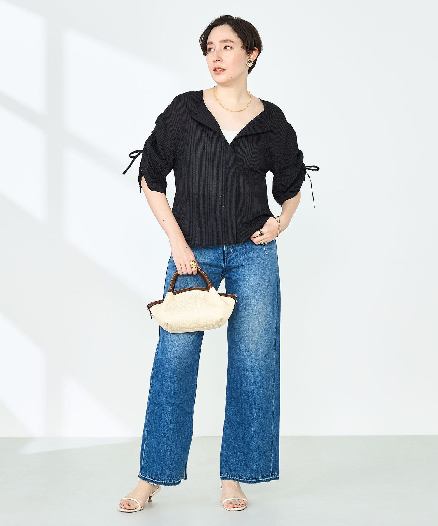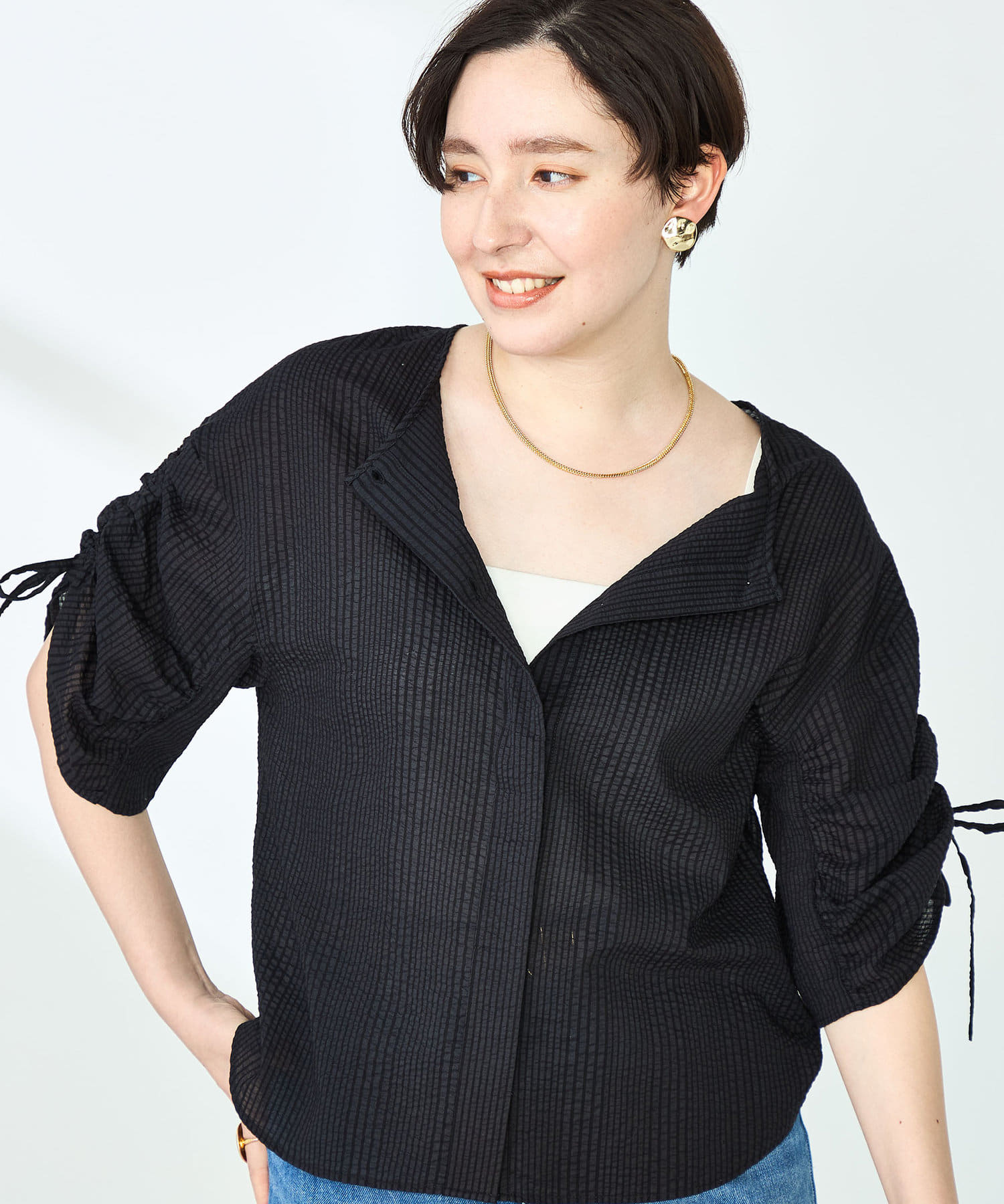 ・ポコポコとした表情のあるサッカー素材を使用した、夏らしく涼し気な1枚