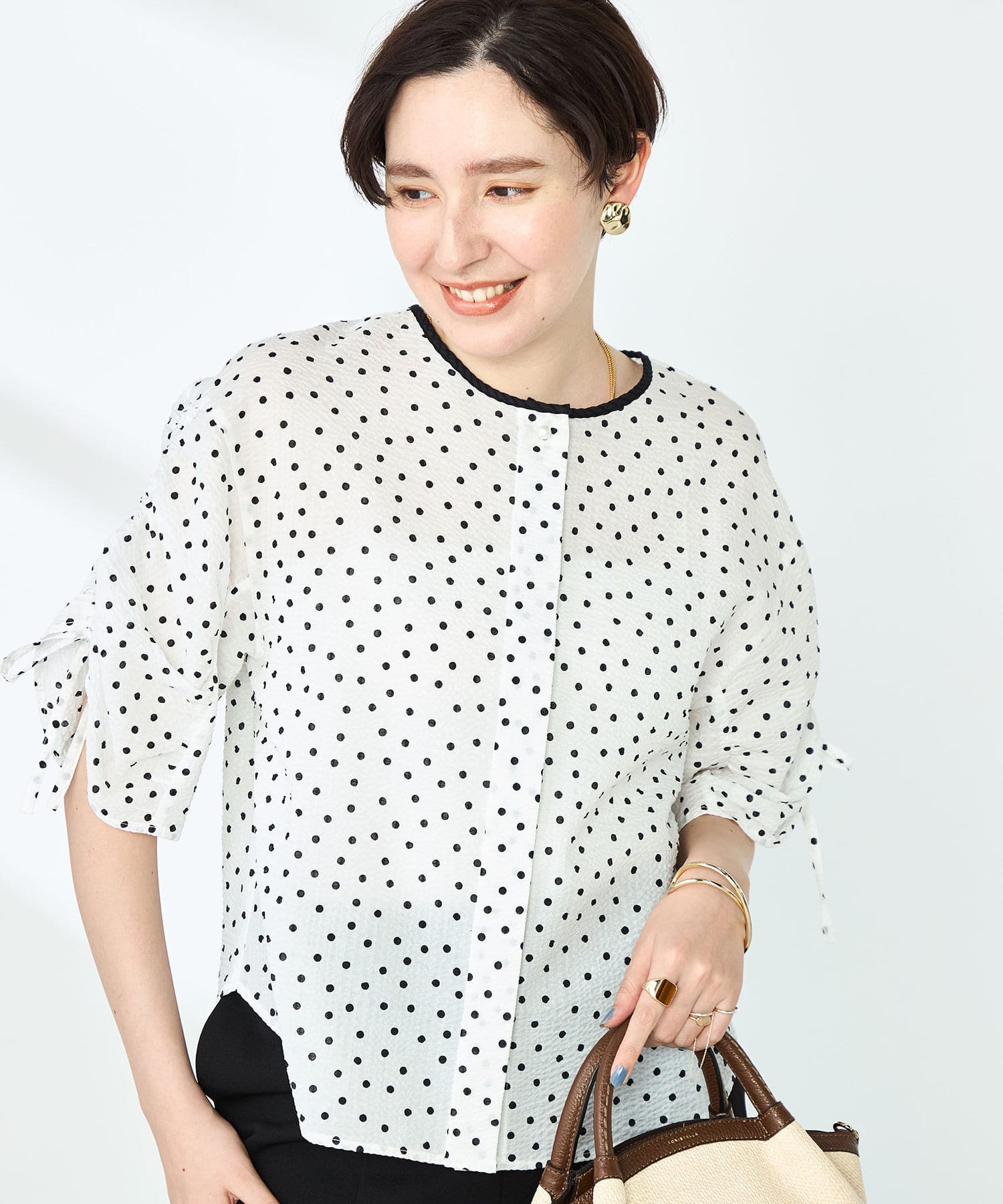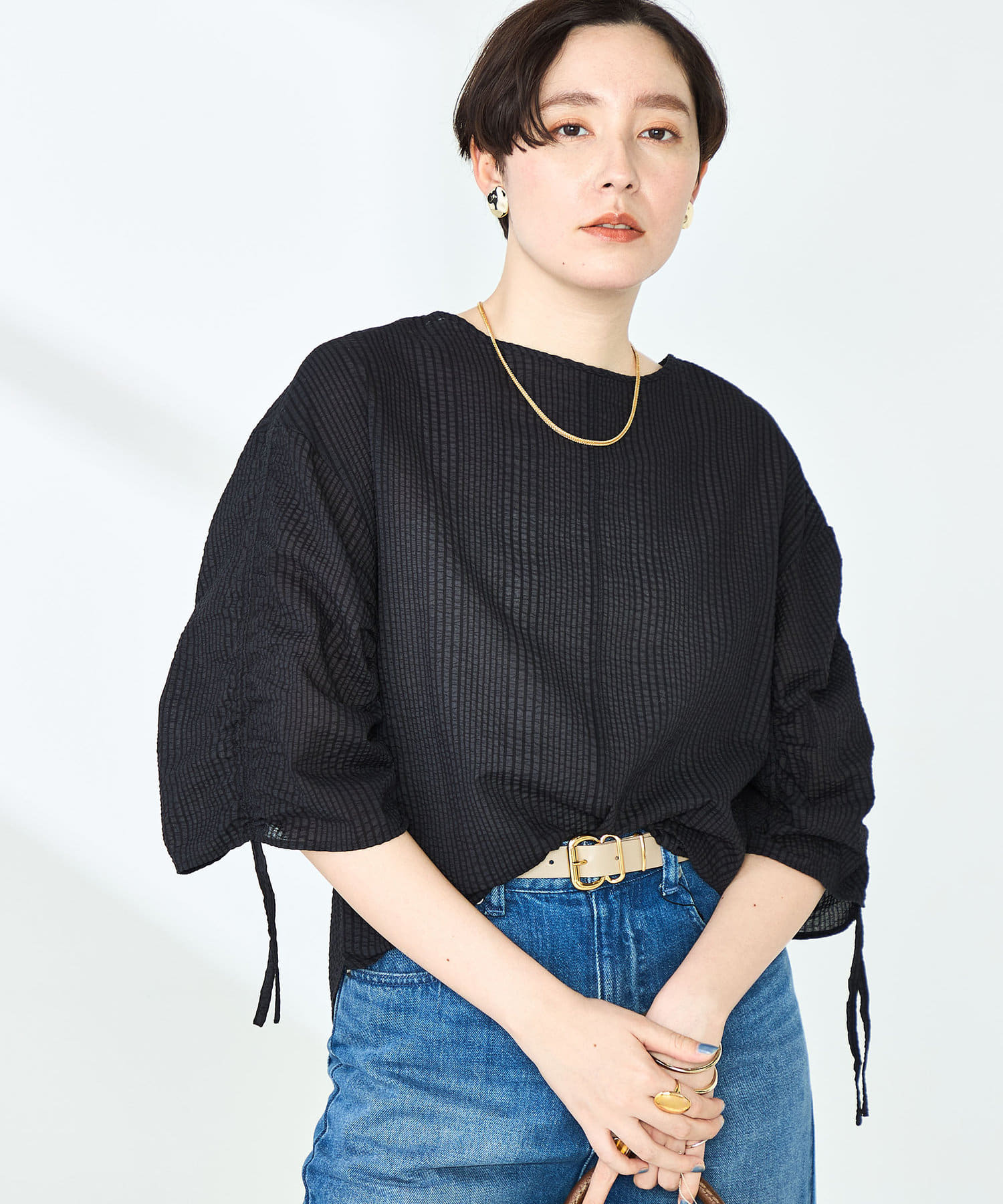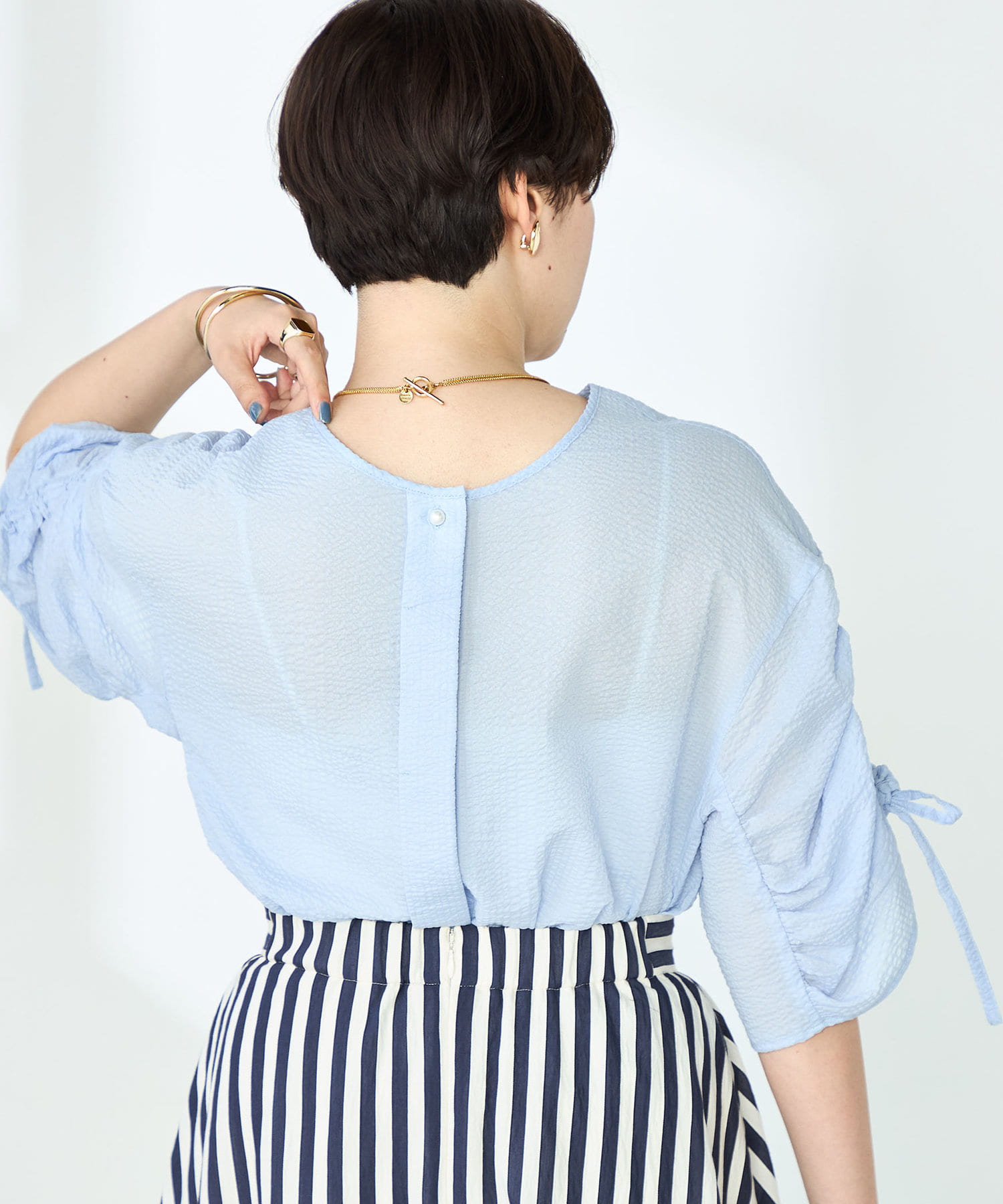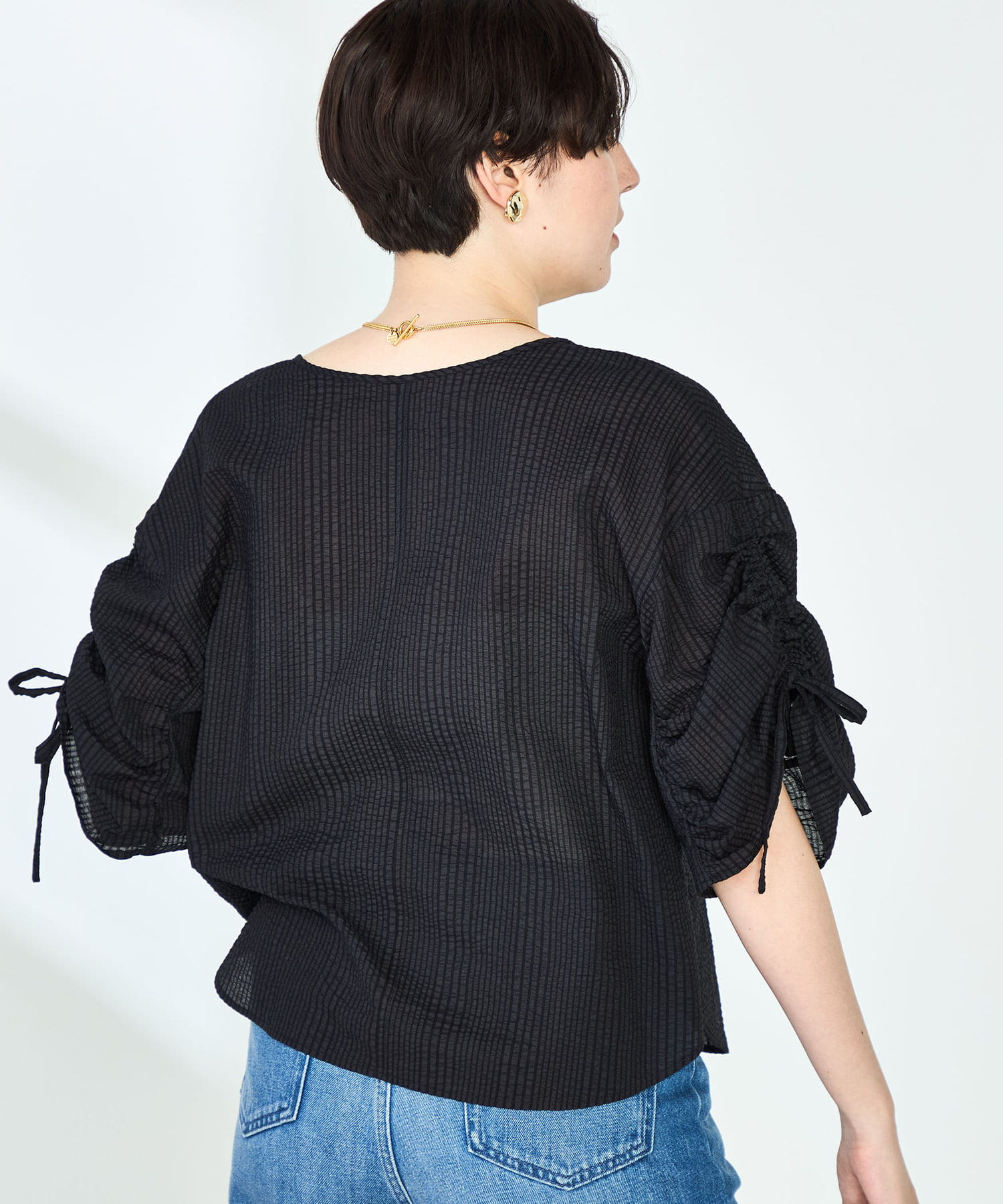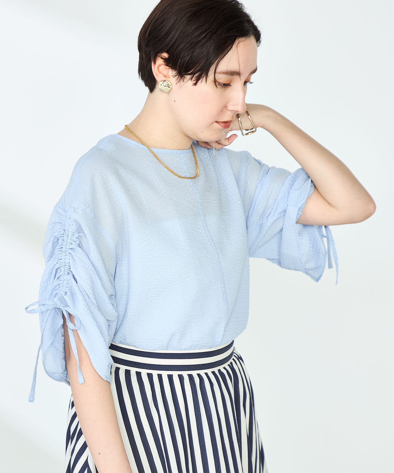 ・袖のドロストデザイン画ポイントの着映えブラウス