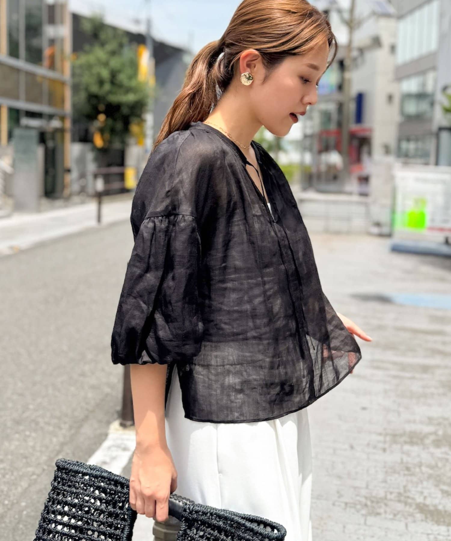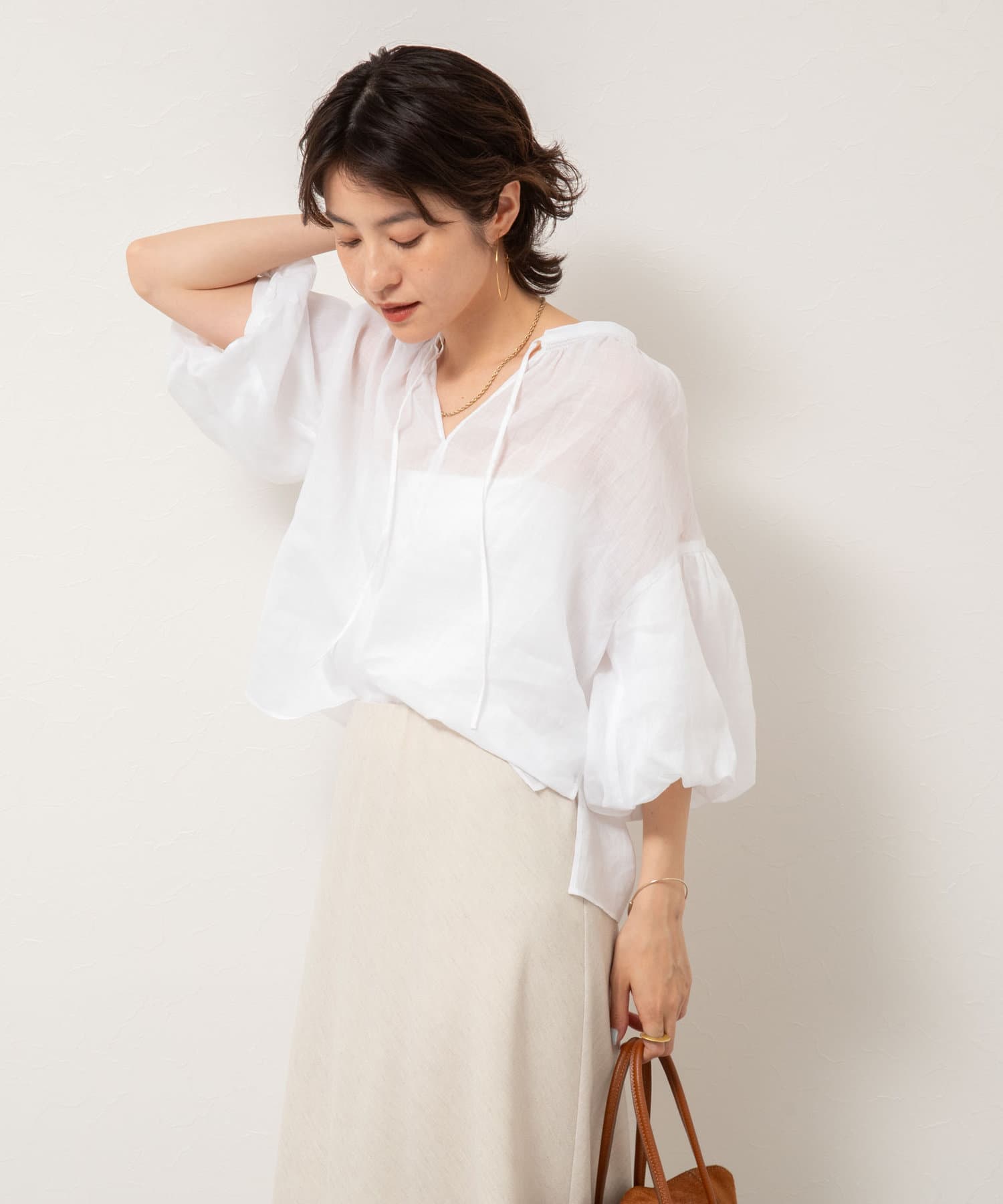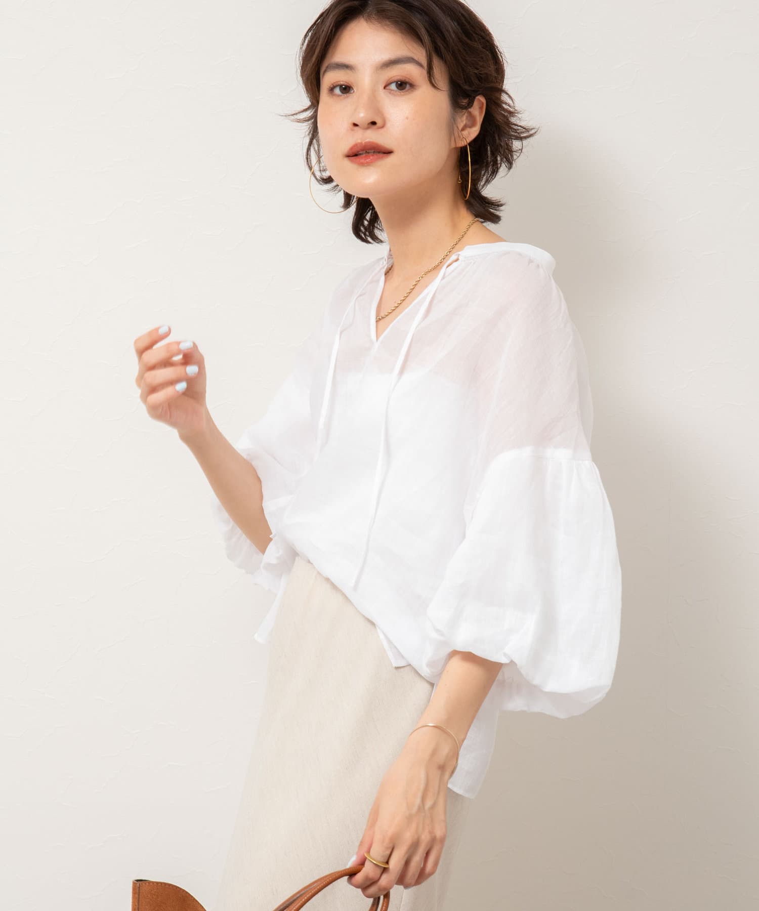 ・細番手のラミーを使用したバルーンスリーブブラウス