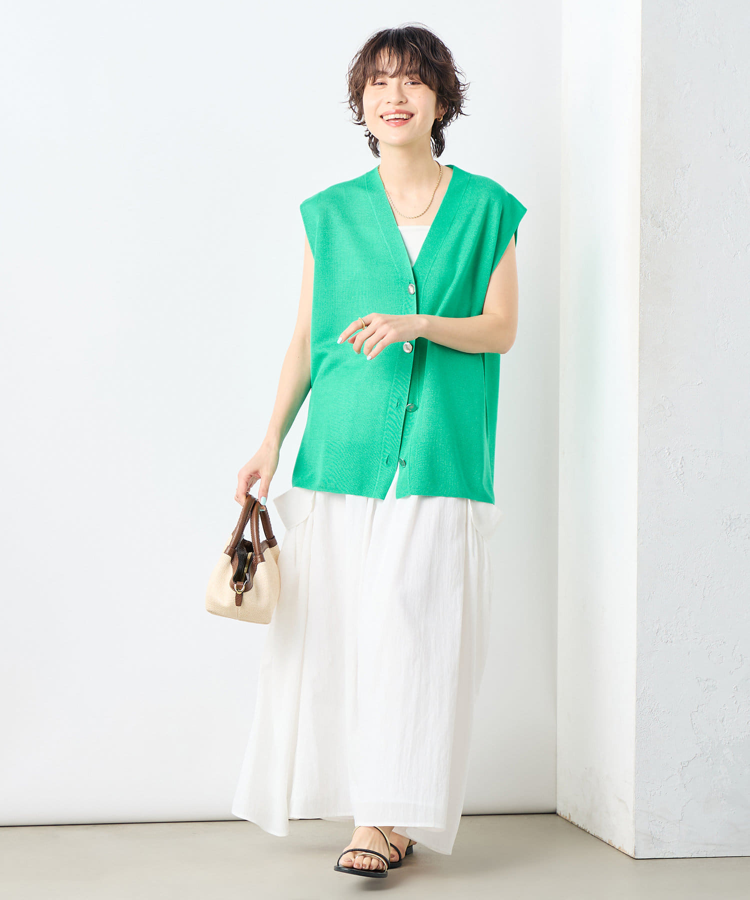 ・軽やかなシアー感が魅力のミラノリブ編みのベスト