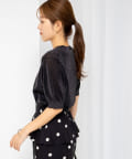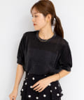《手洗い可能》《アンサンブル対応》シアーラメ天竺5分袖プルオーバーニット