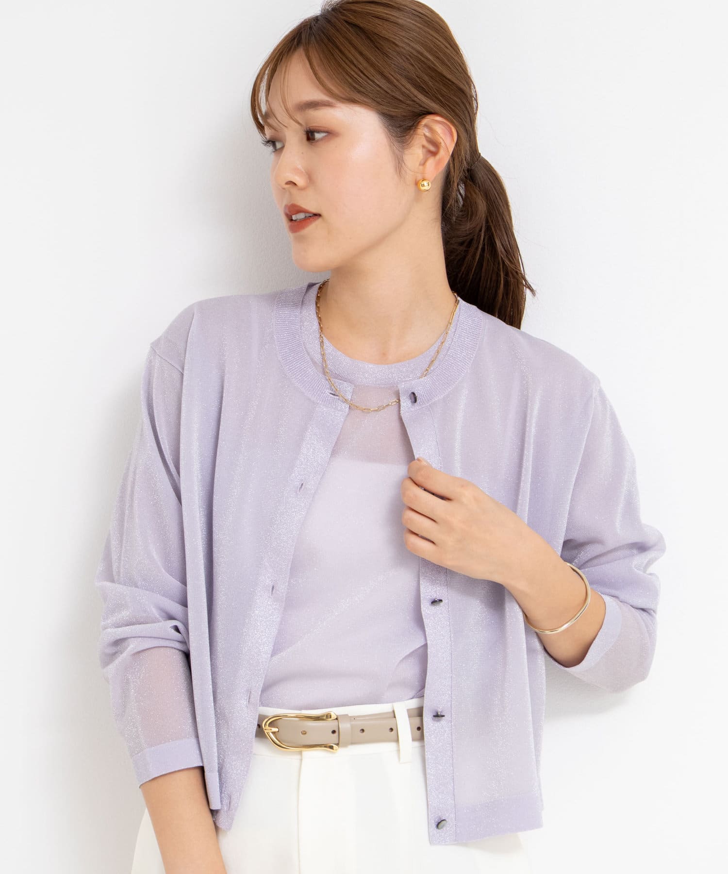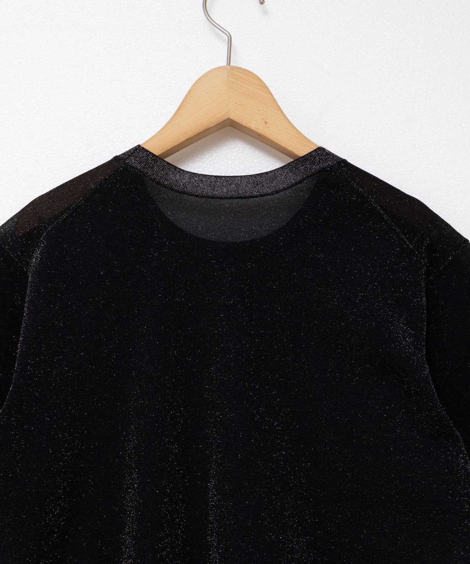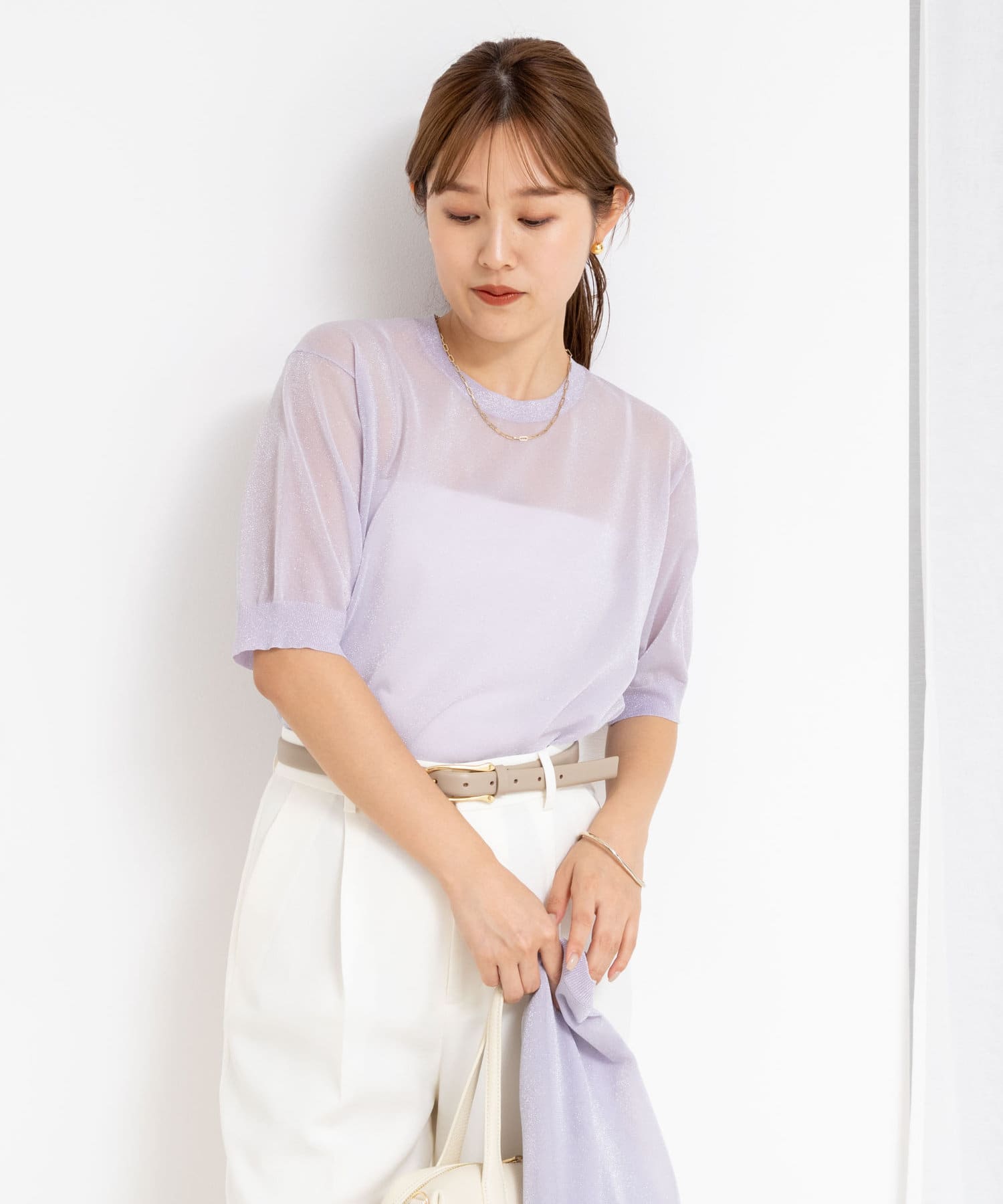 ・ほんのりラメが煌めくシアー素材の天竺編みプルオーバーニット