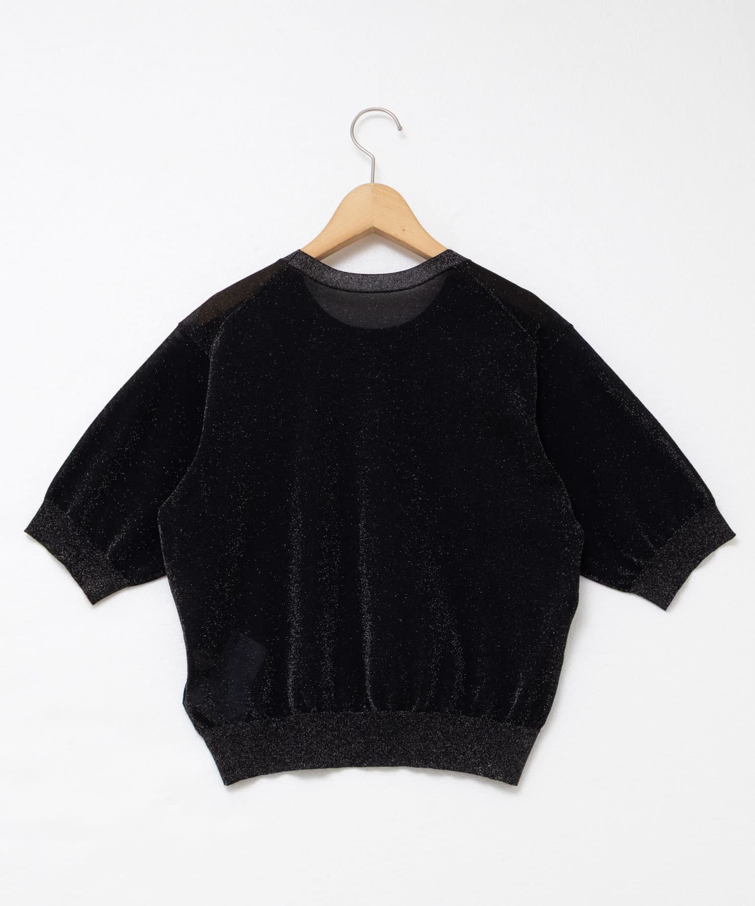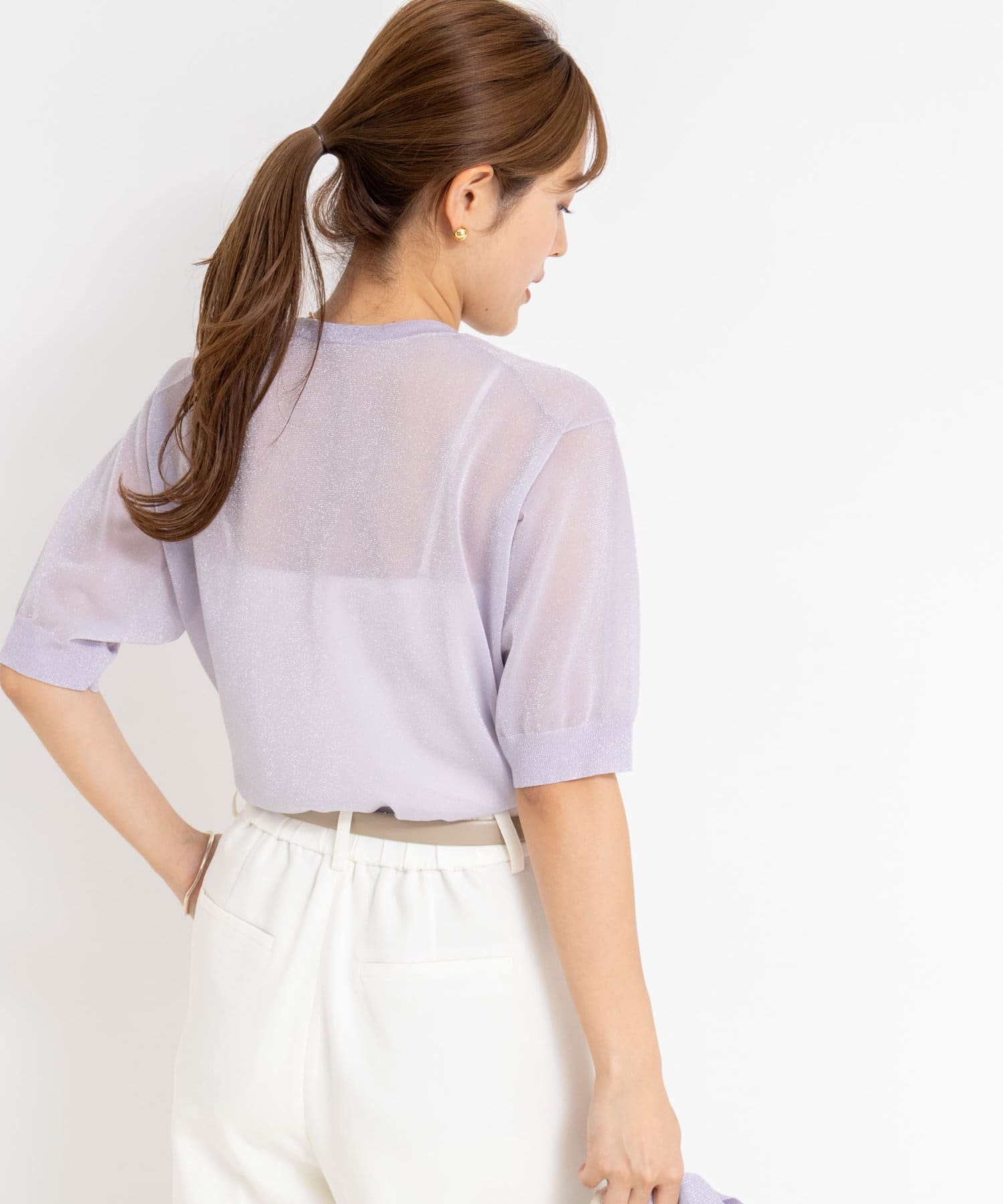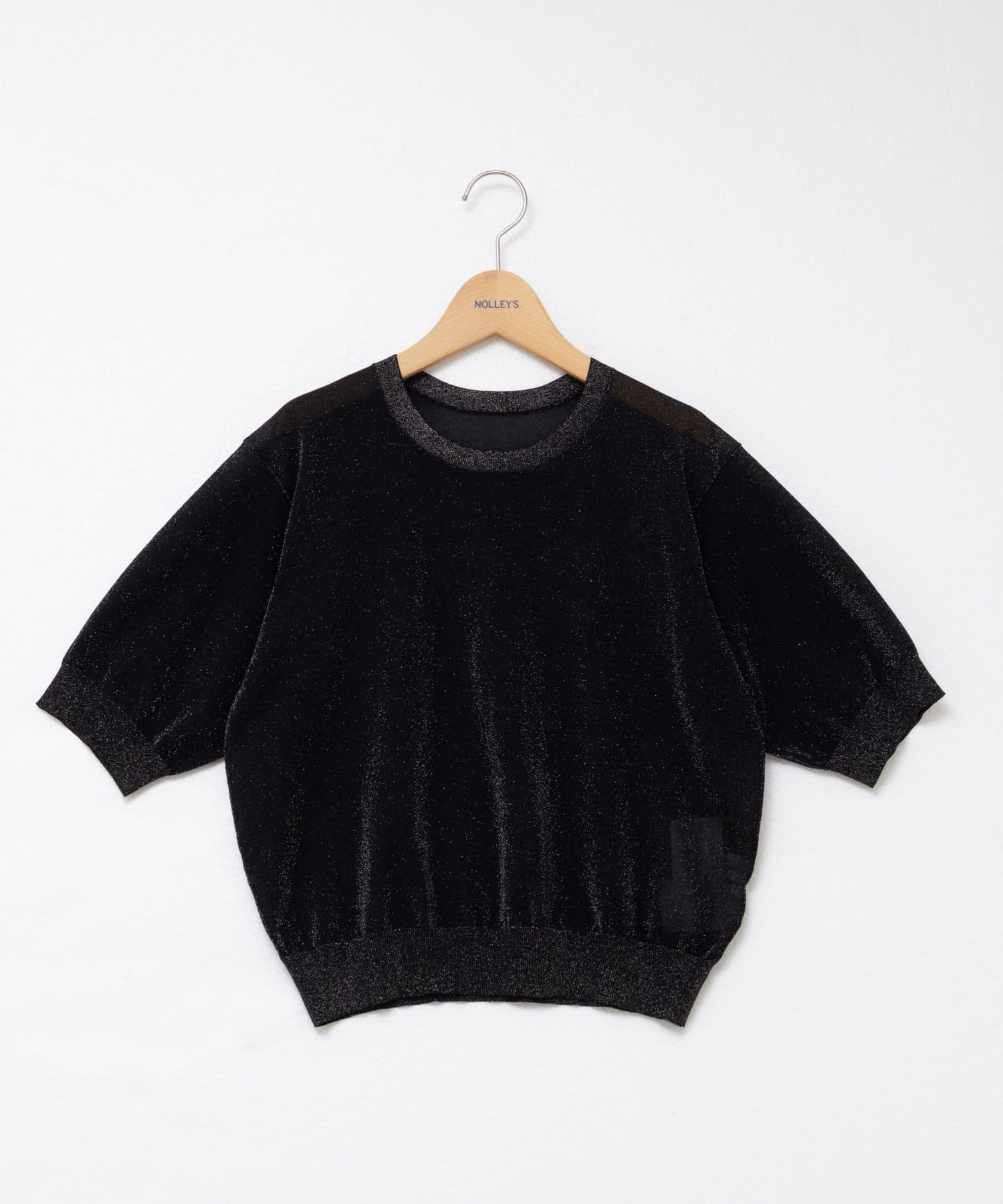 TOP > NOLLEY'S > レディース > トップス > ニット/セーター > 《手洗い可能》《アンサンブル対応》シアーラメ天竺5分袖プルオーバーニット
