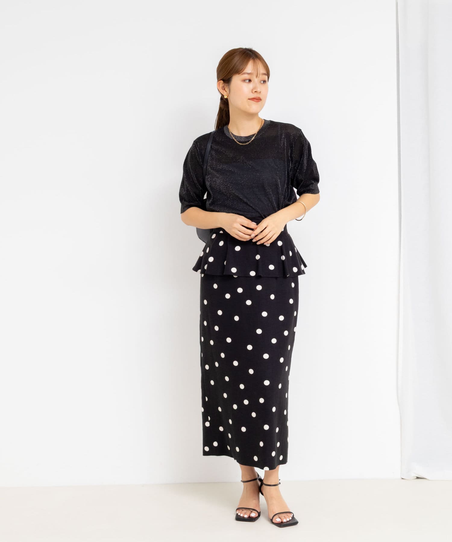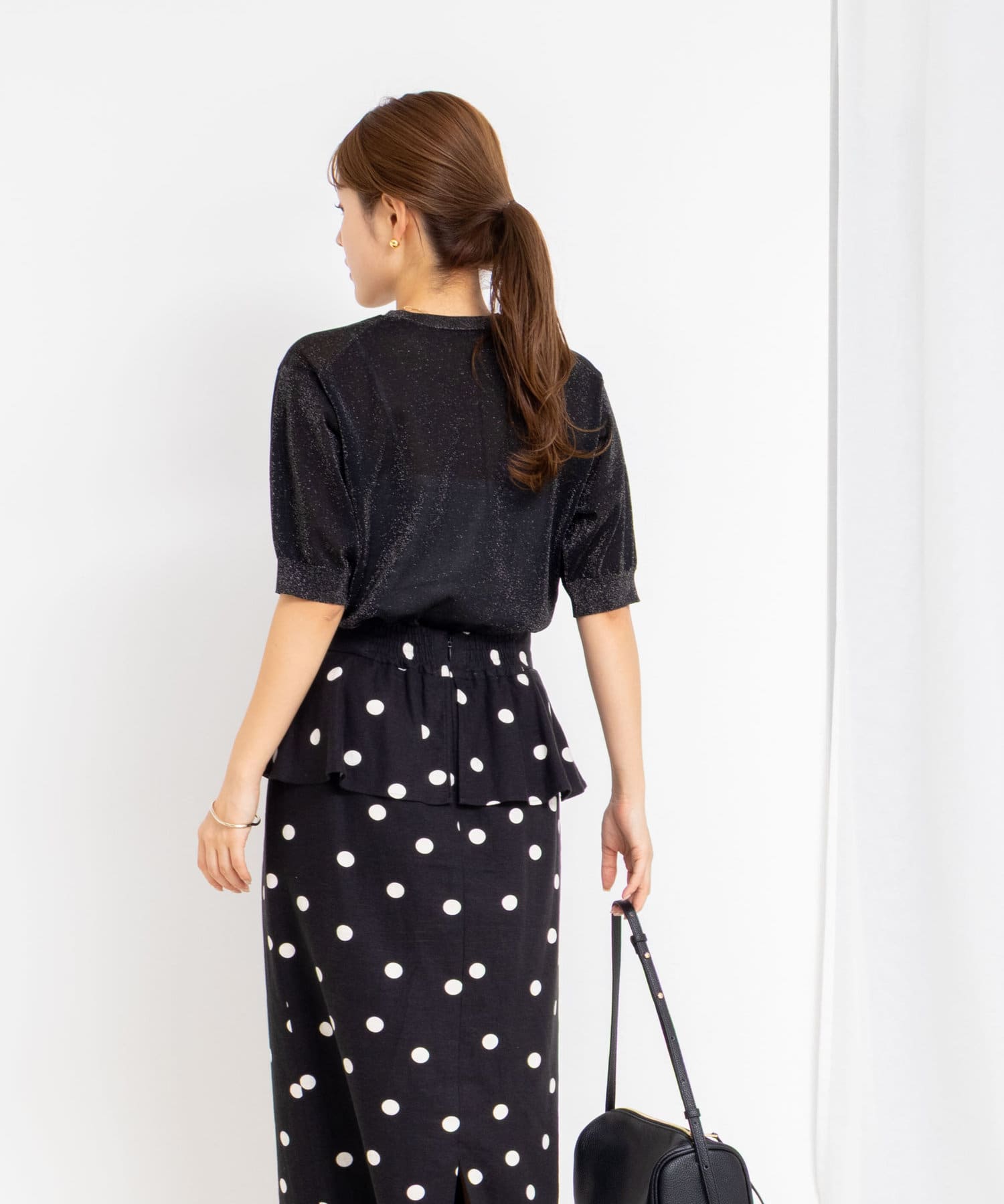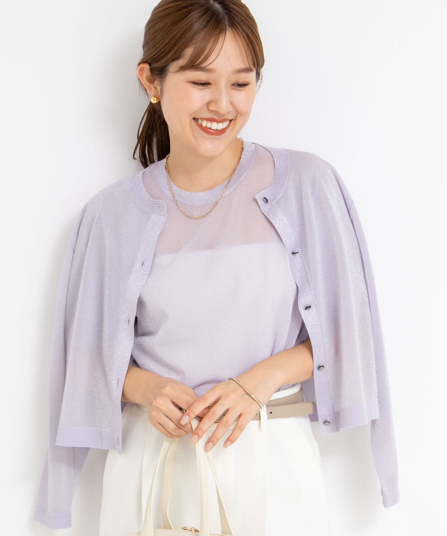 TOP > NOLLEY'S > レディース > トップス > ニット/セーター > 《手洗い可能》《アンサンブル対応》シアーラメ天竺5分袖プルオーバーニット