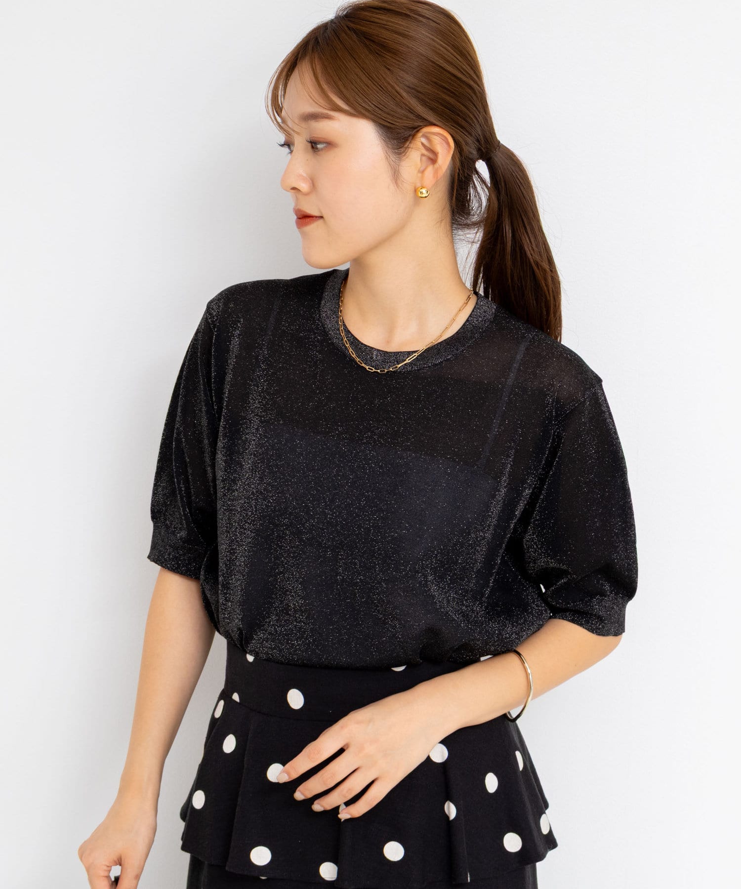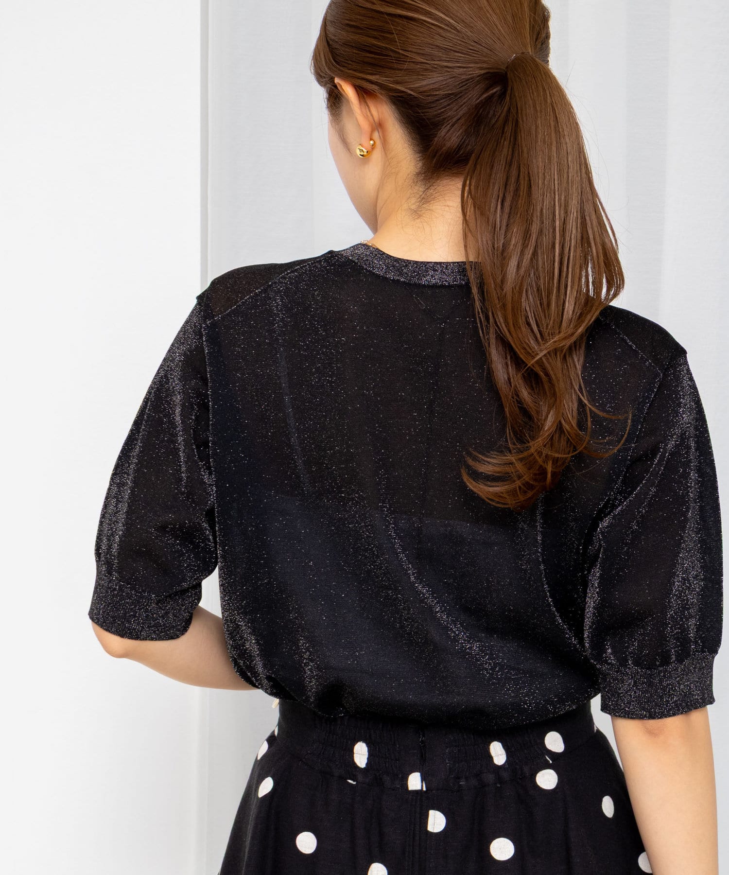 NOLLEY'S(ノーリーズ) 《手洗い可能》《アンサンブル対応》シアーラメ天竺5分袖プルオーバーニット