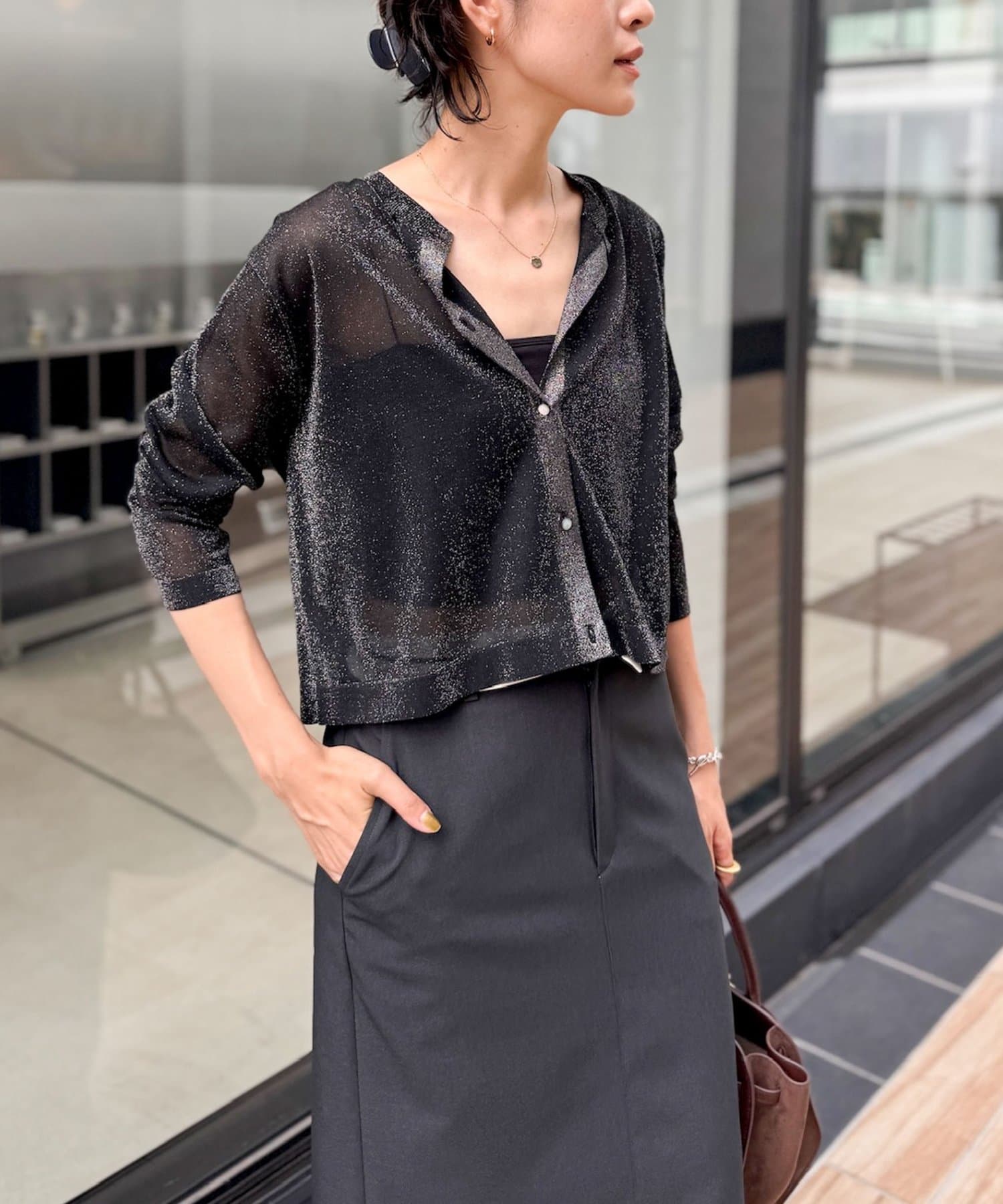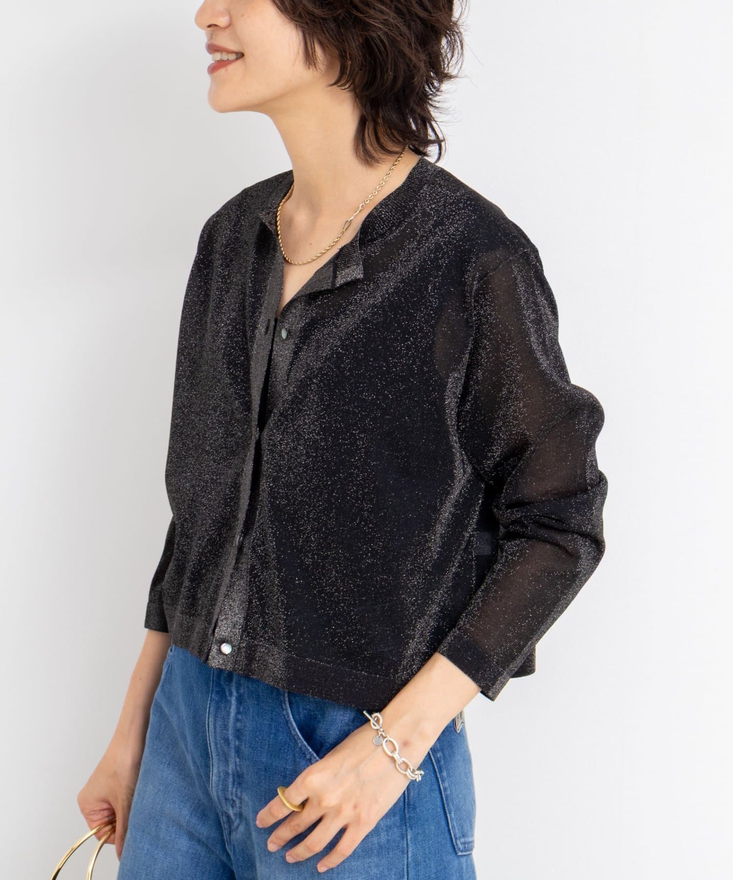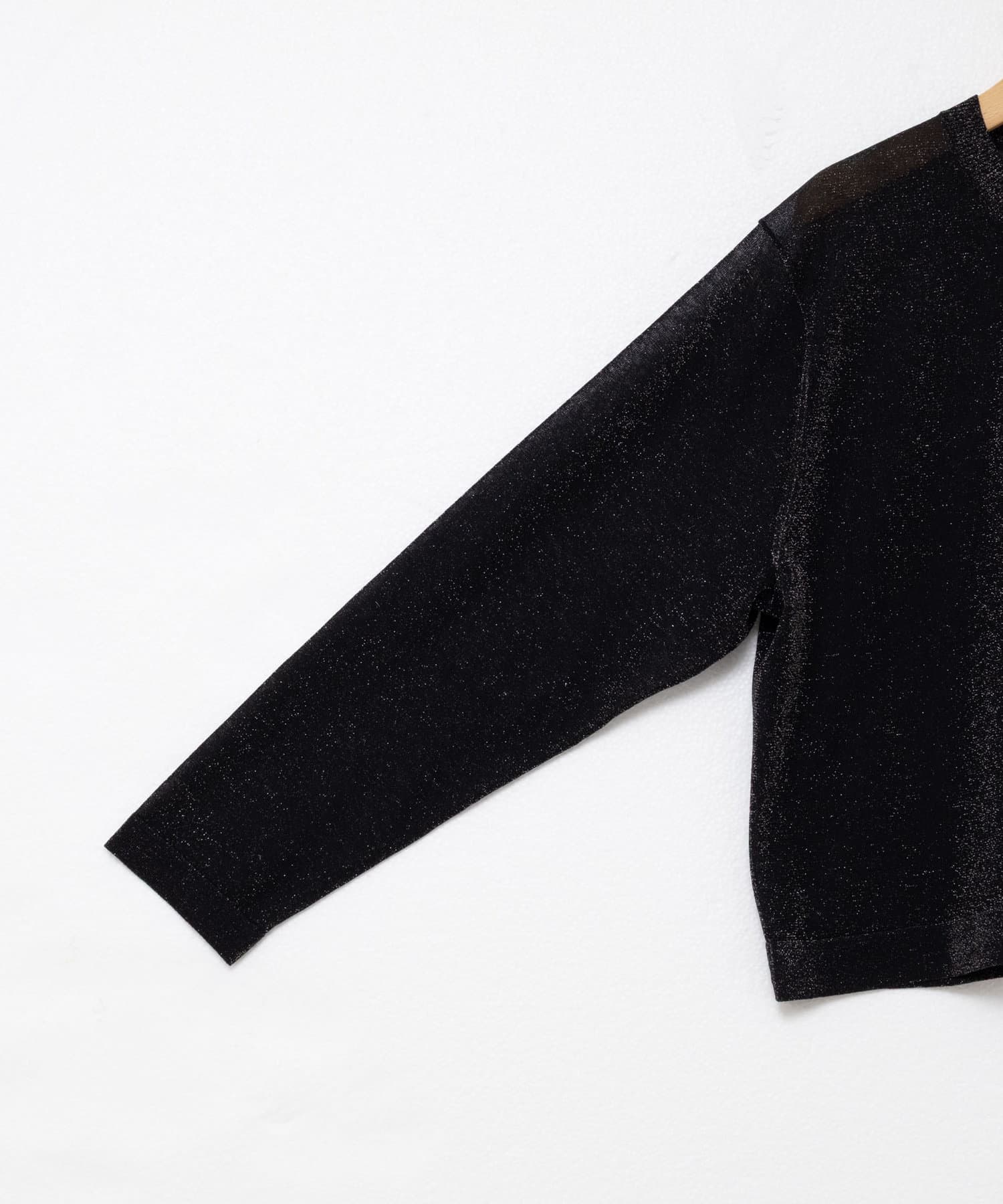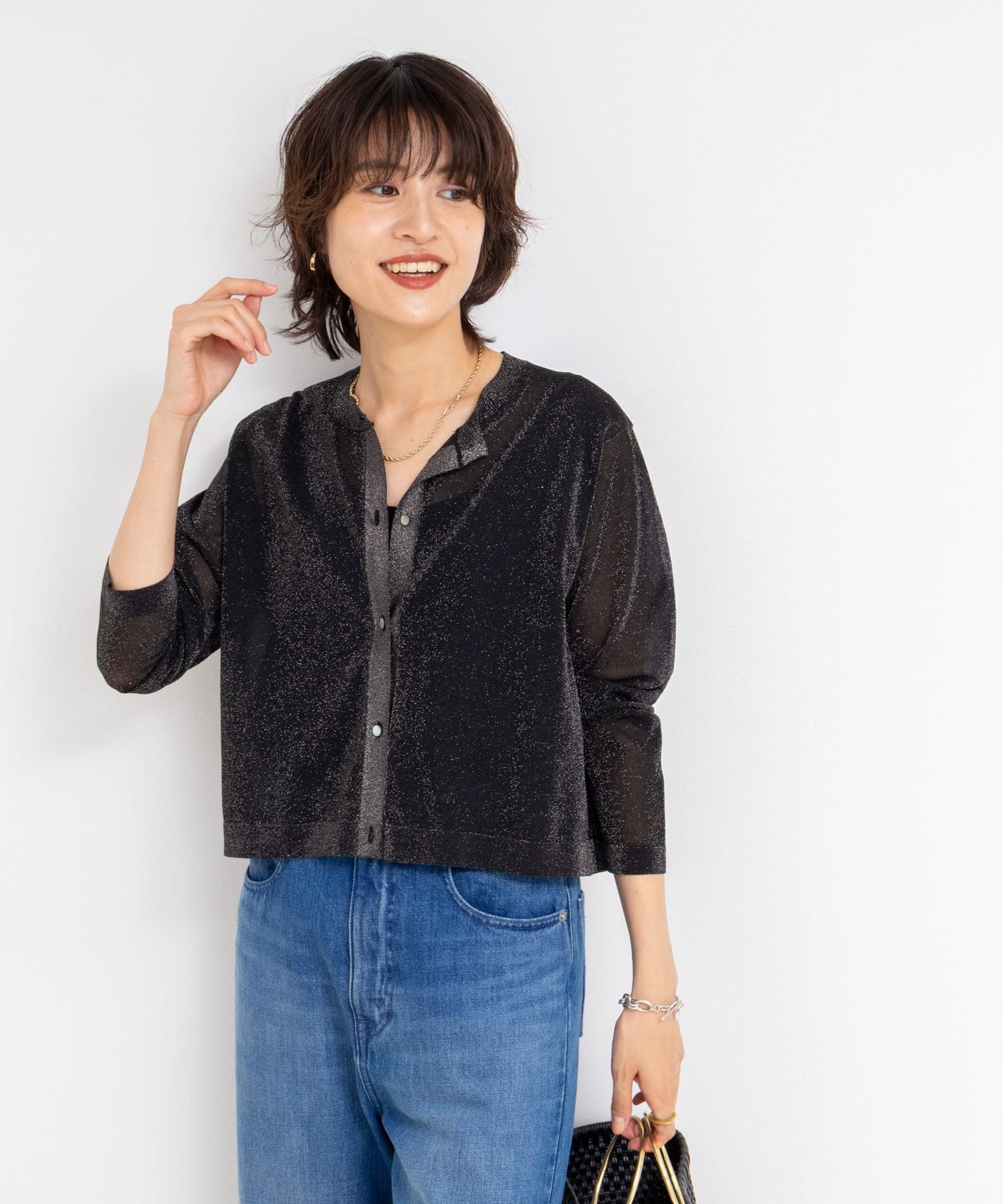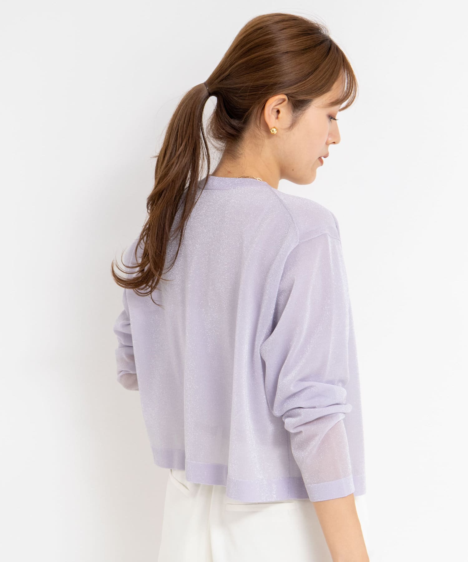 ・ほんのりラメが煌めくシアー素材の天竺編みニットカーディガン