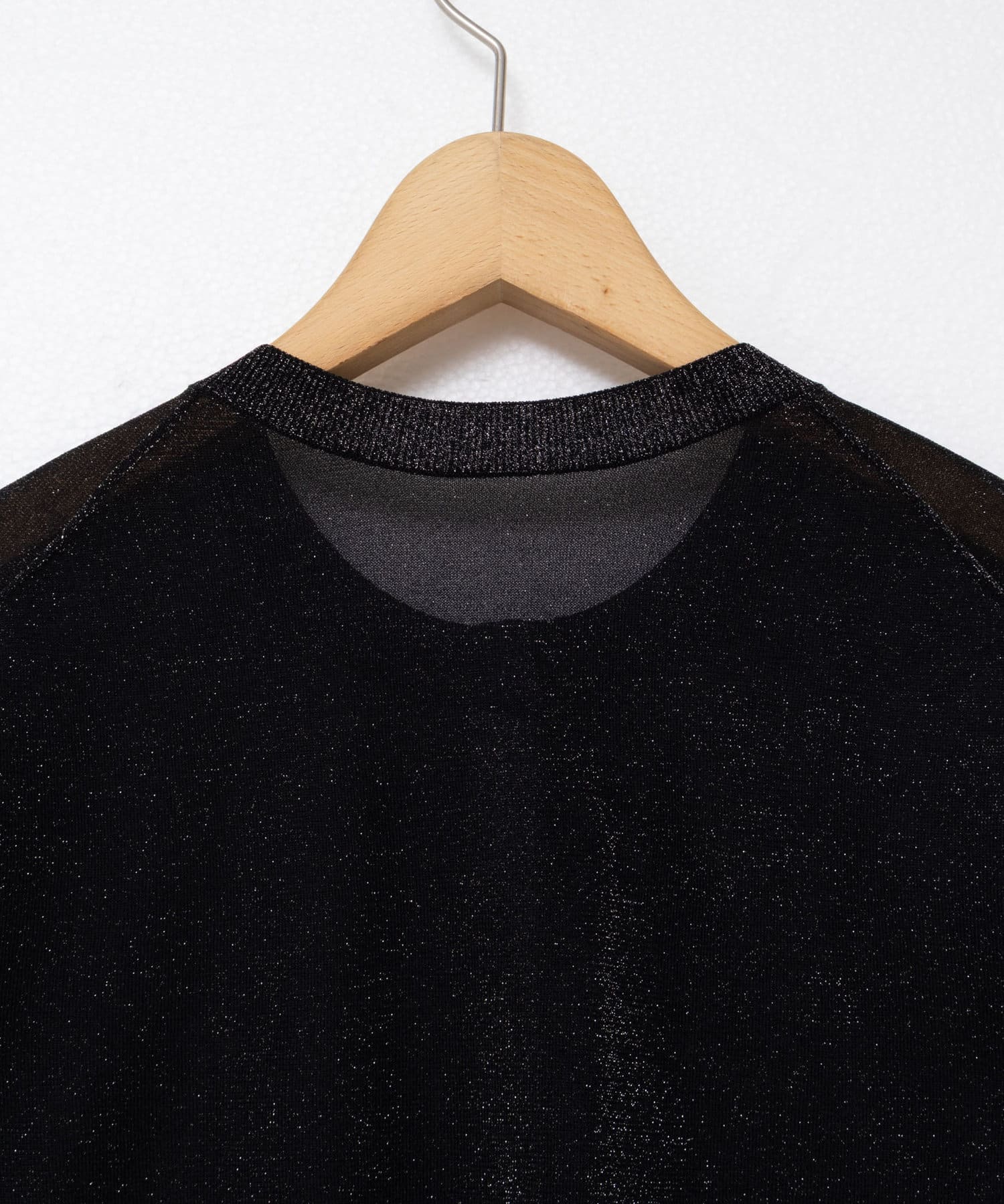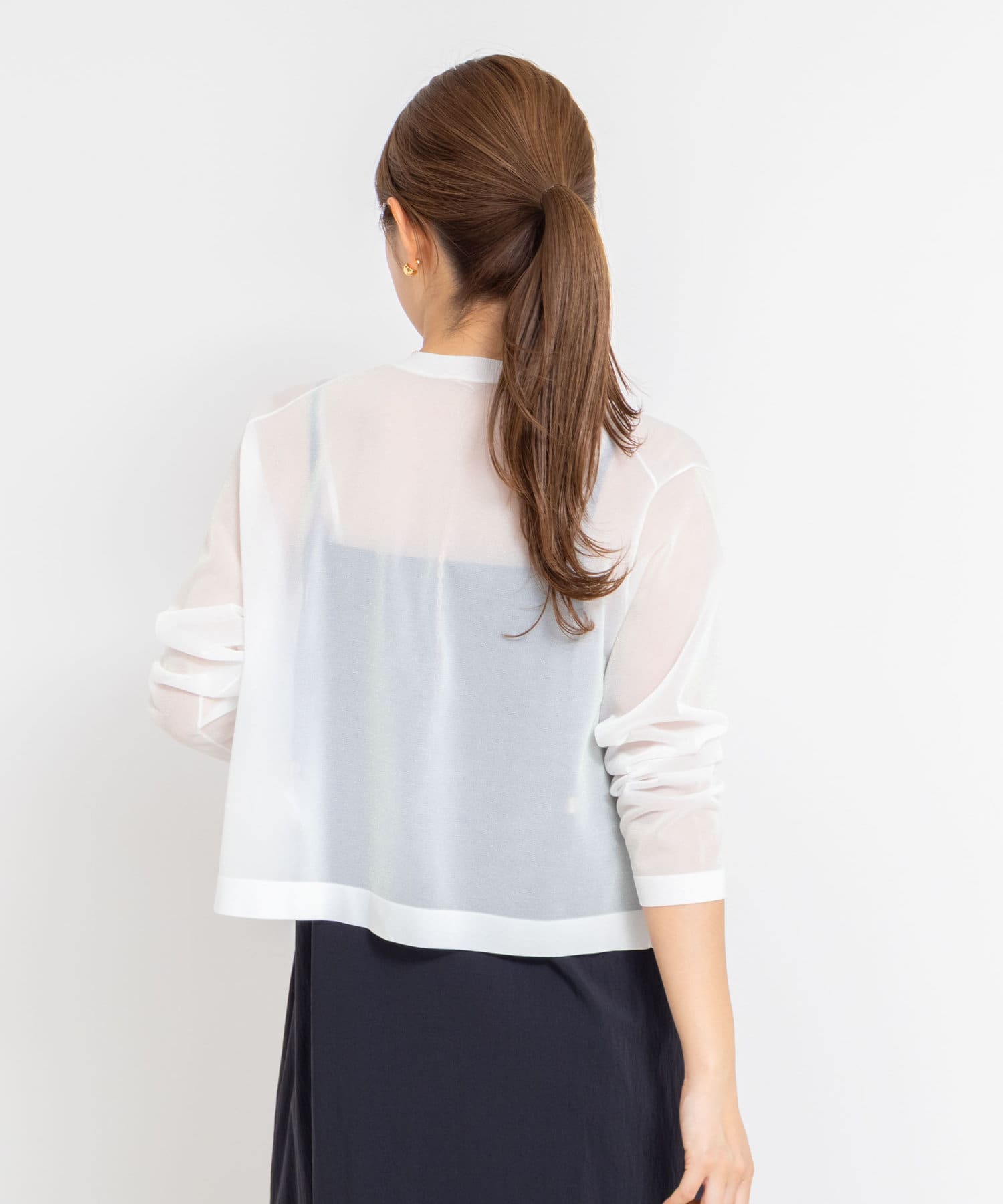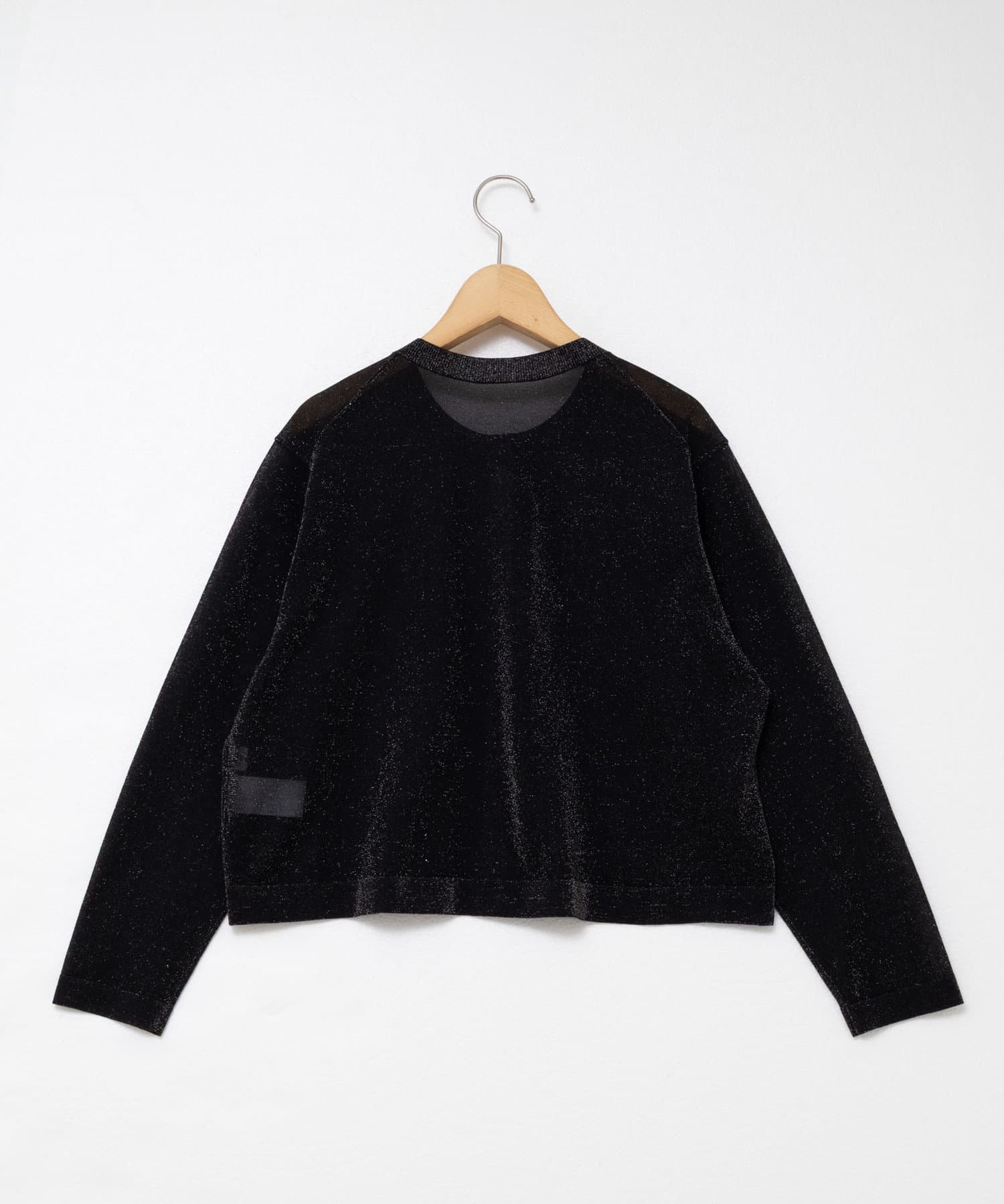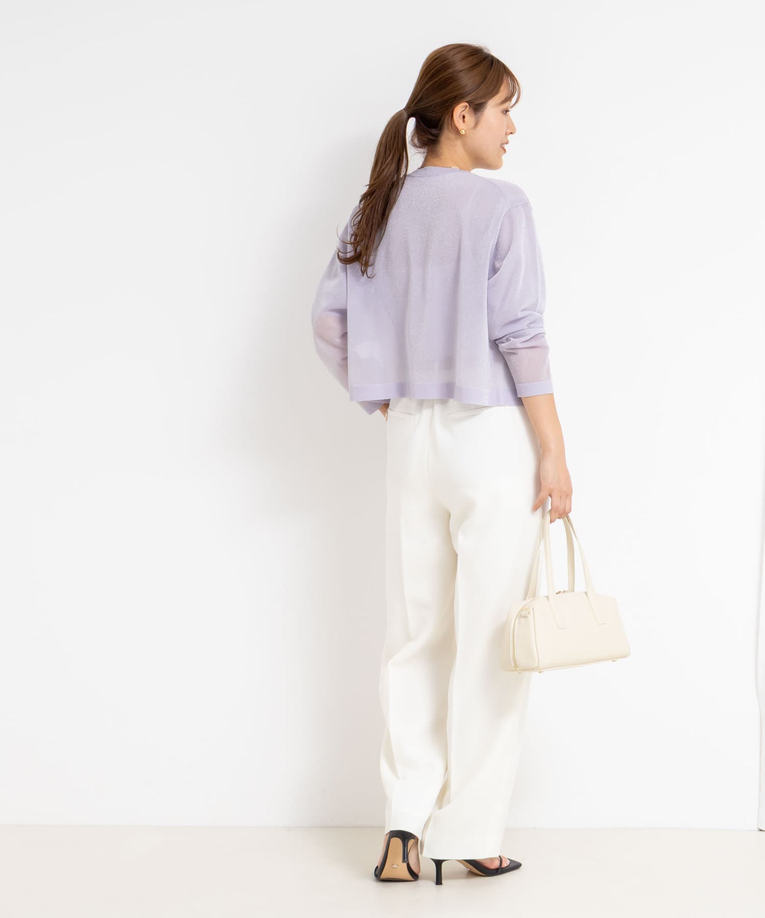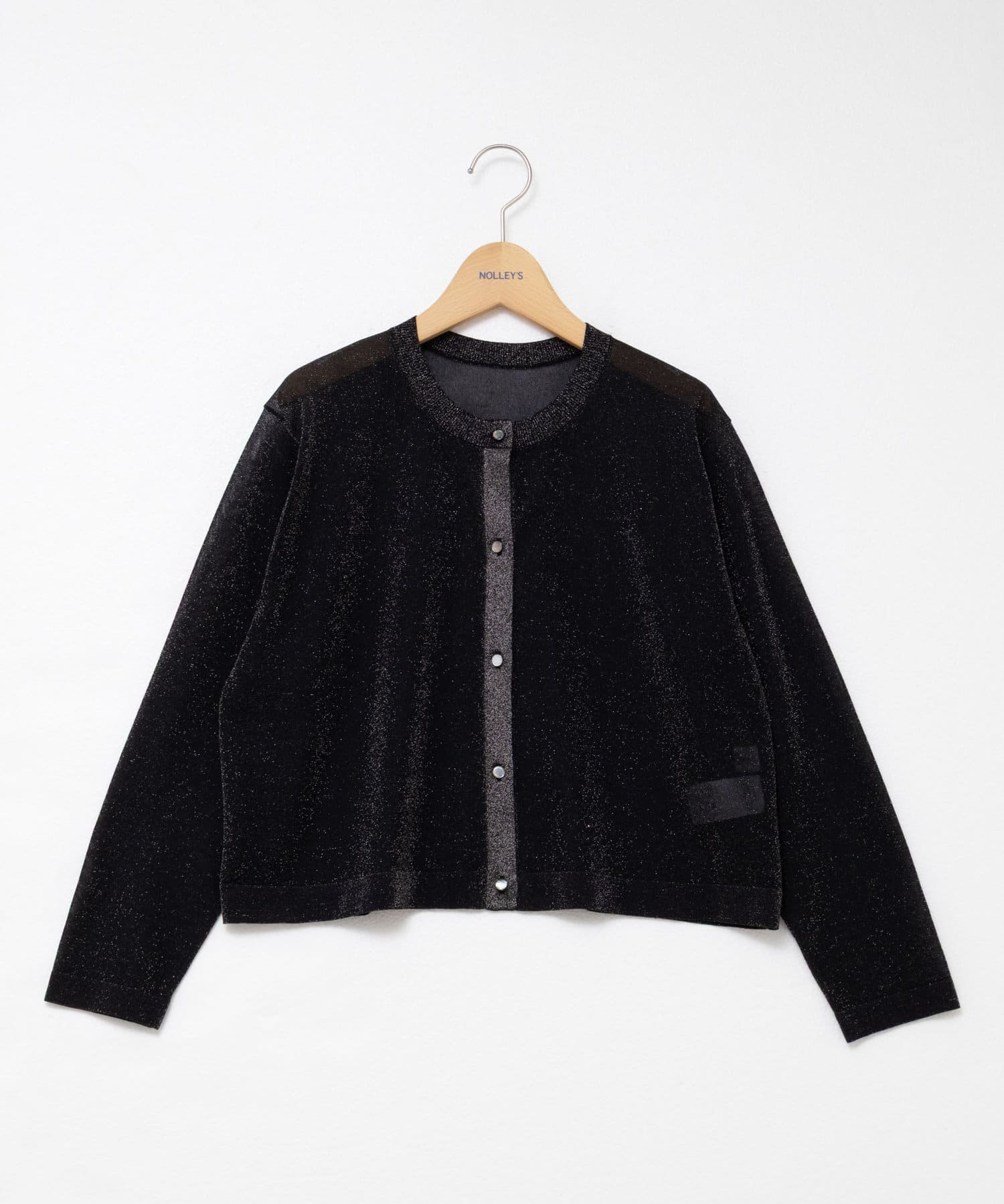・ほんのりラメが煌めくシアー素材の天竺編みニットカーディガン