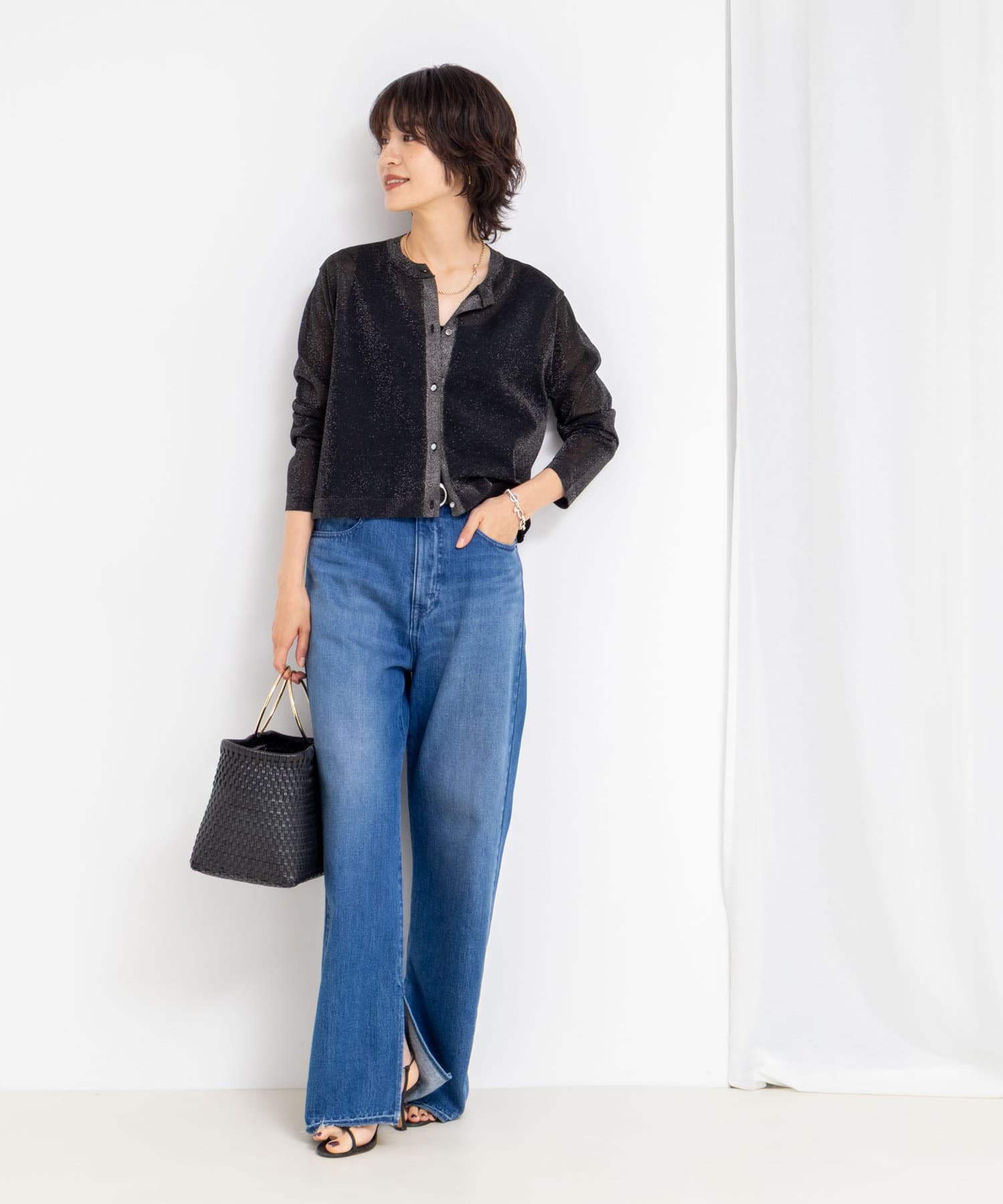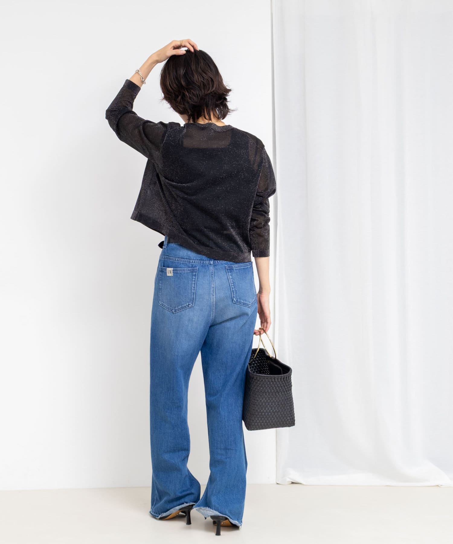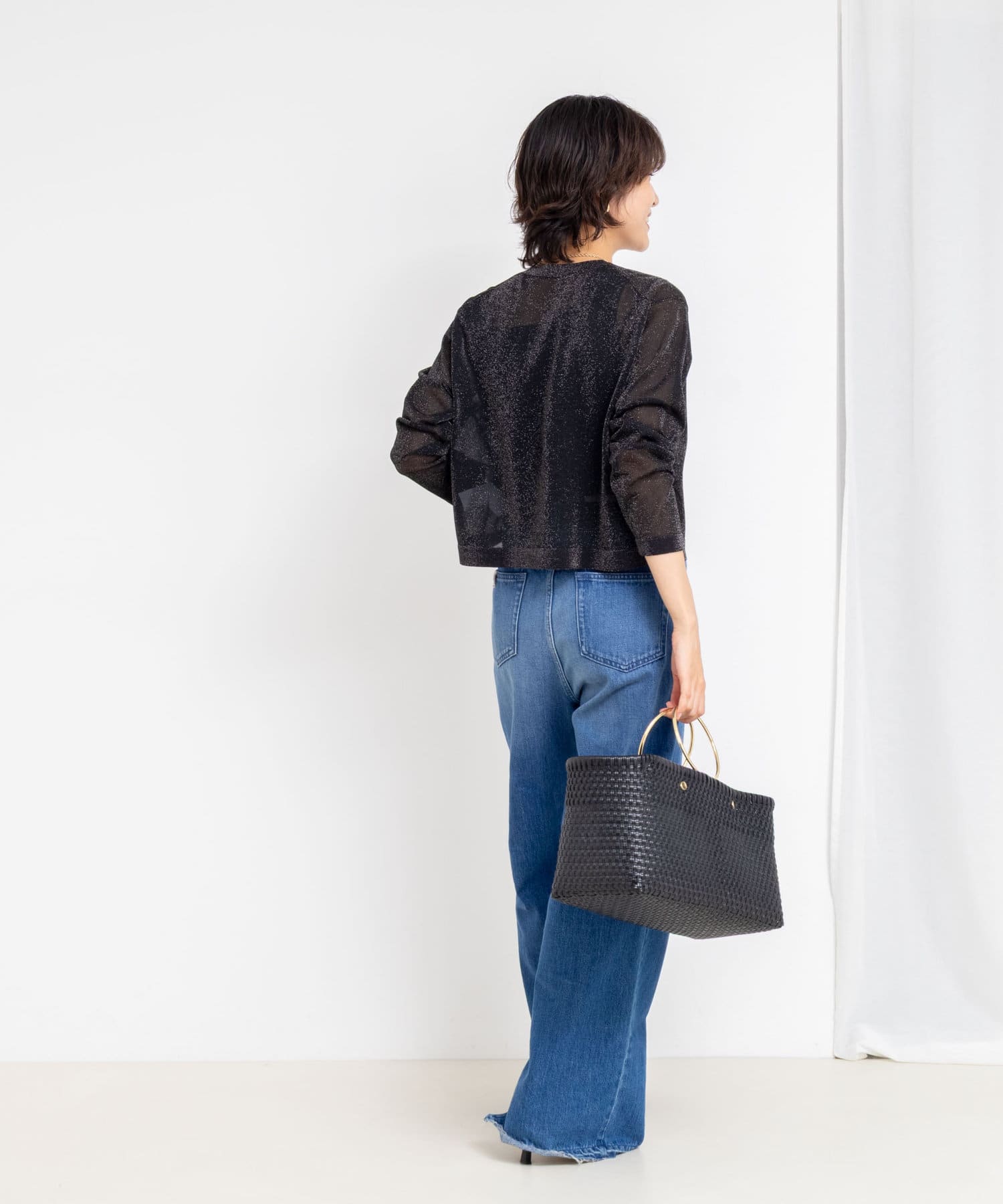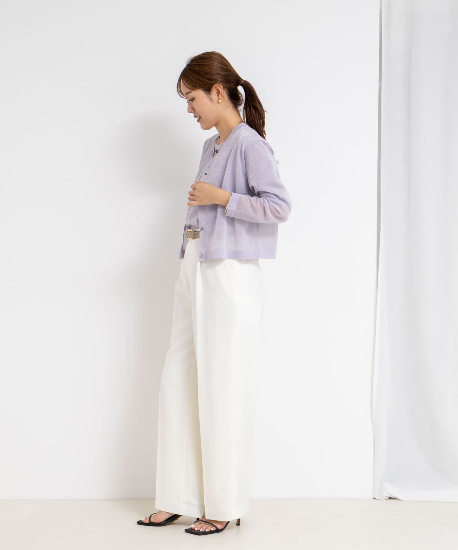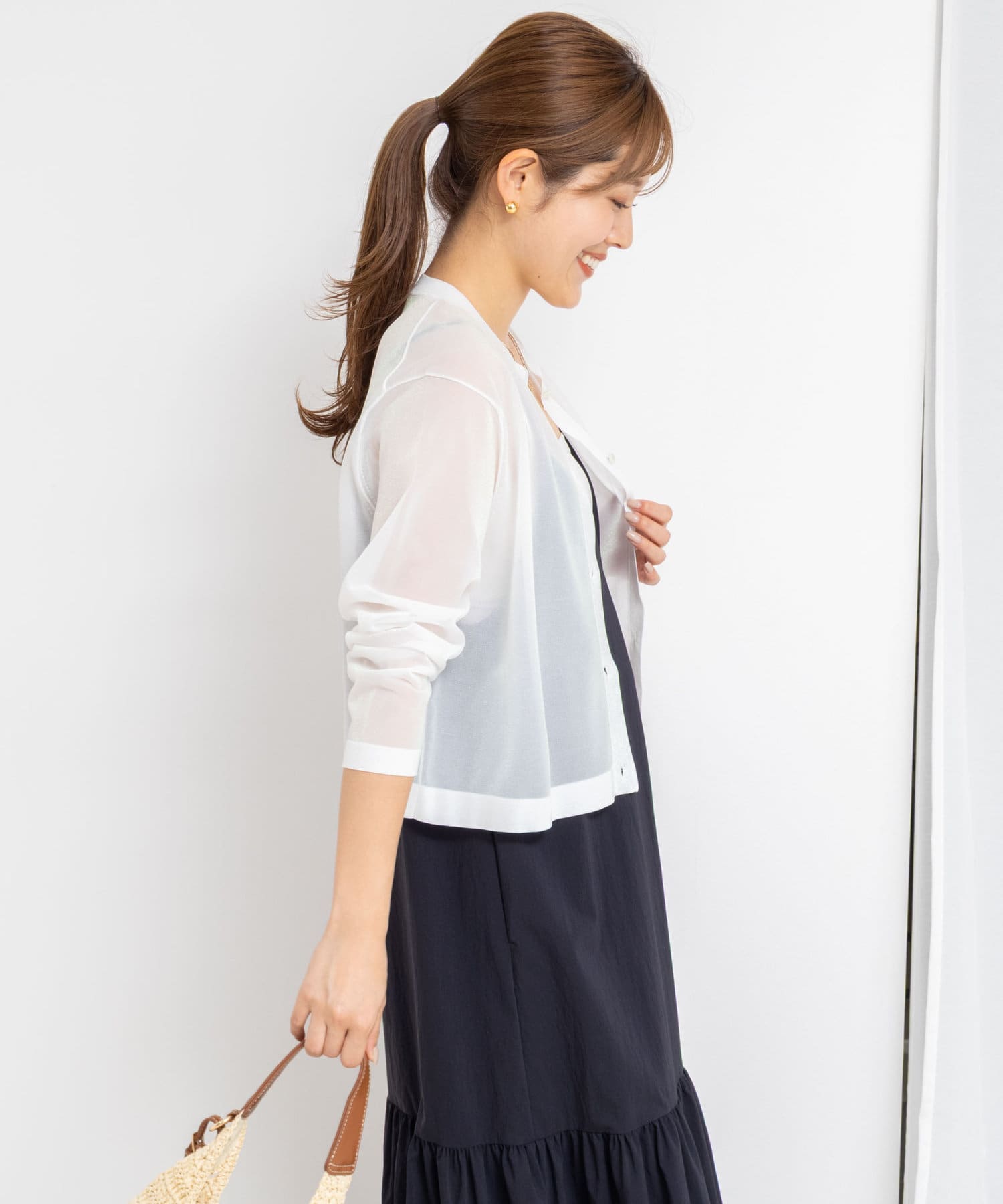 ・ほんのりラメが煌めくシアー素材の天竺編みニットカーディガン