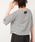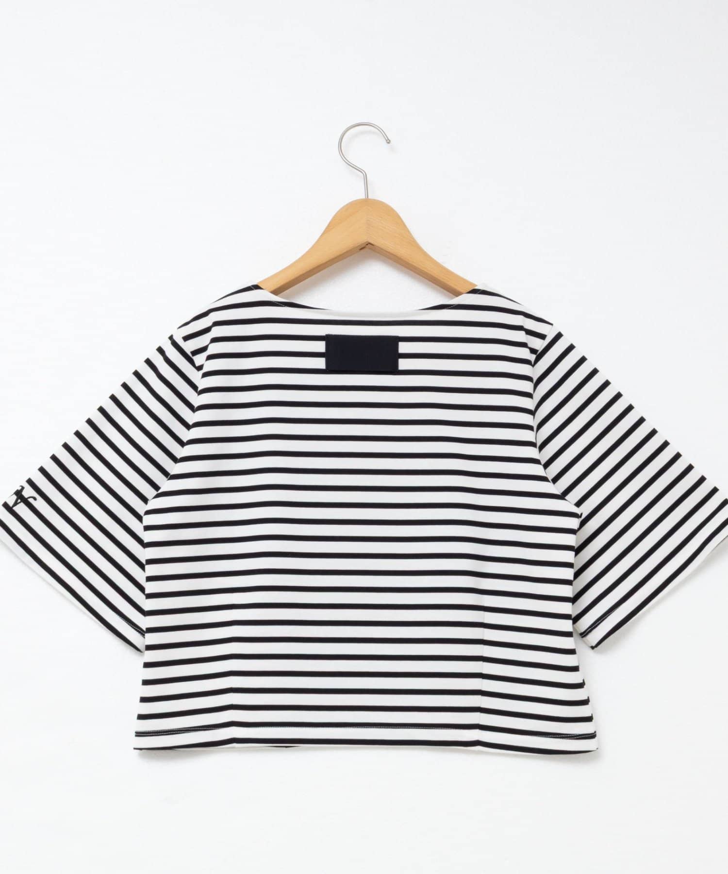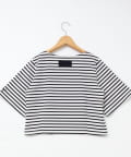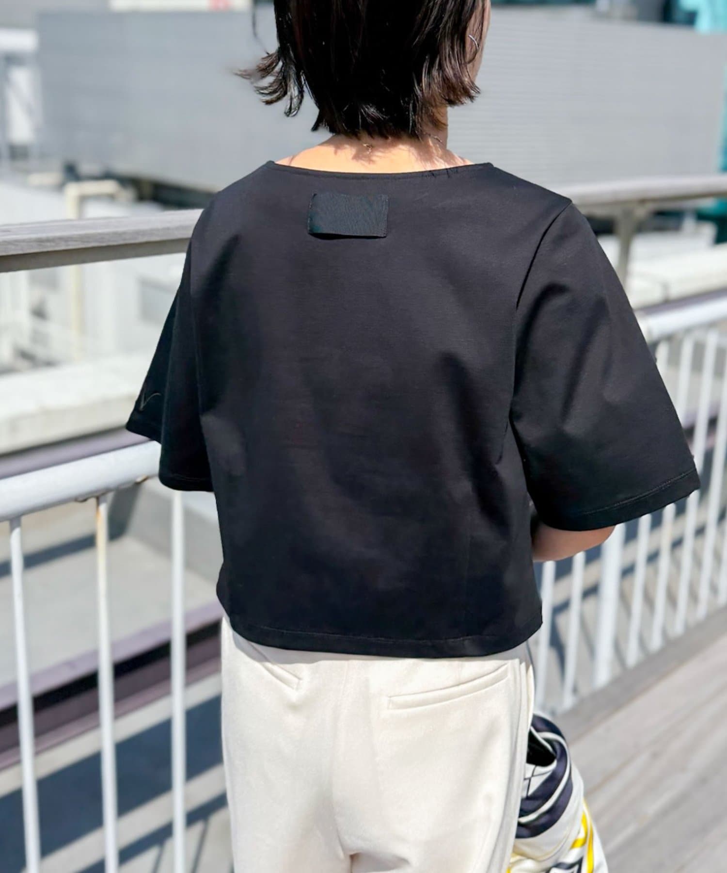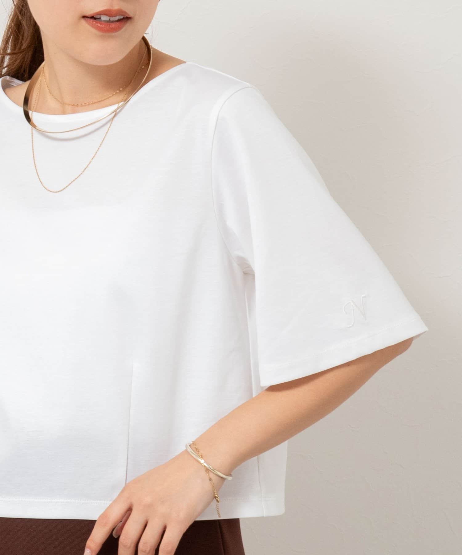 ・袖口の刺繍がポイントのショート丈Tシャツ