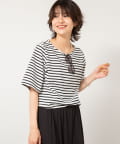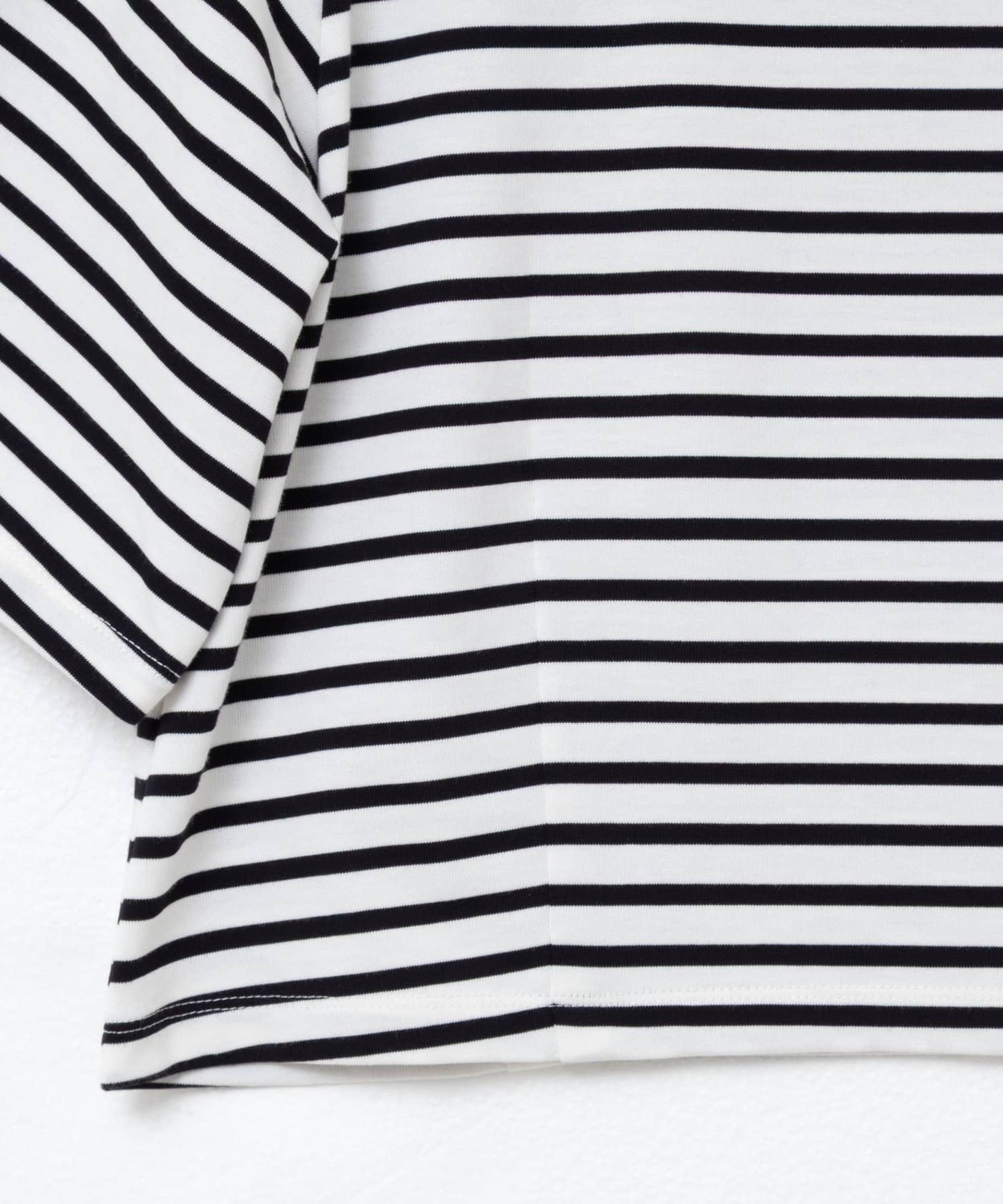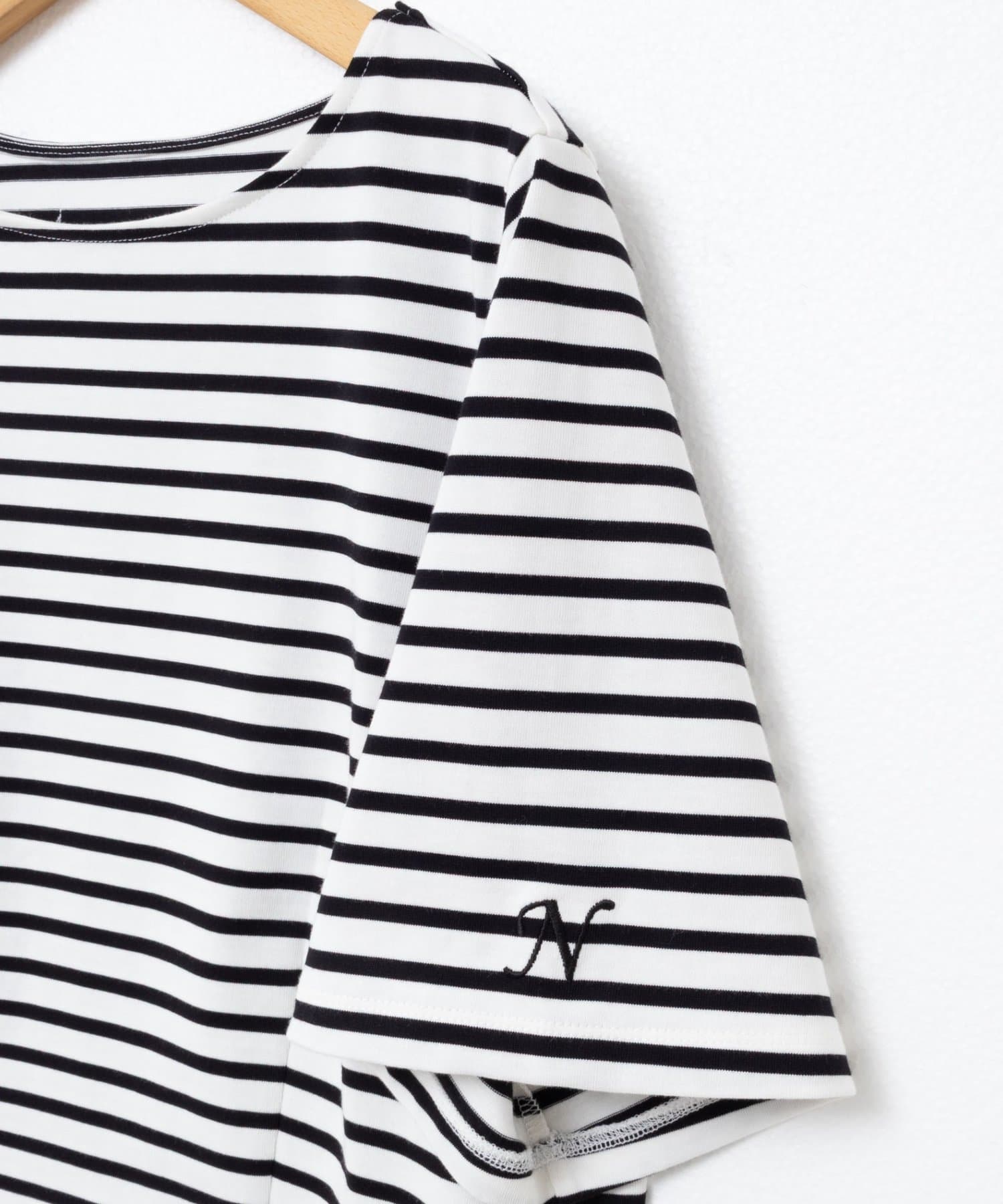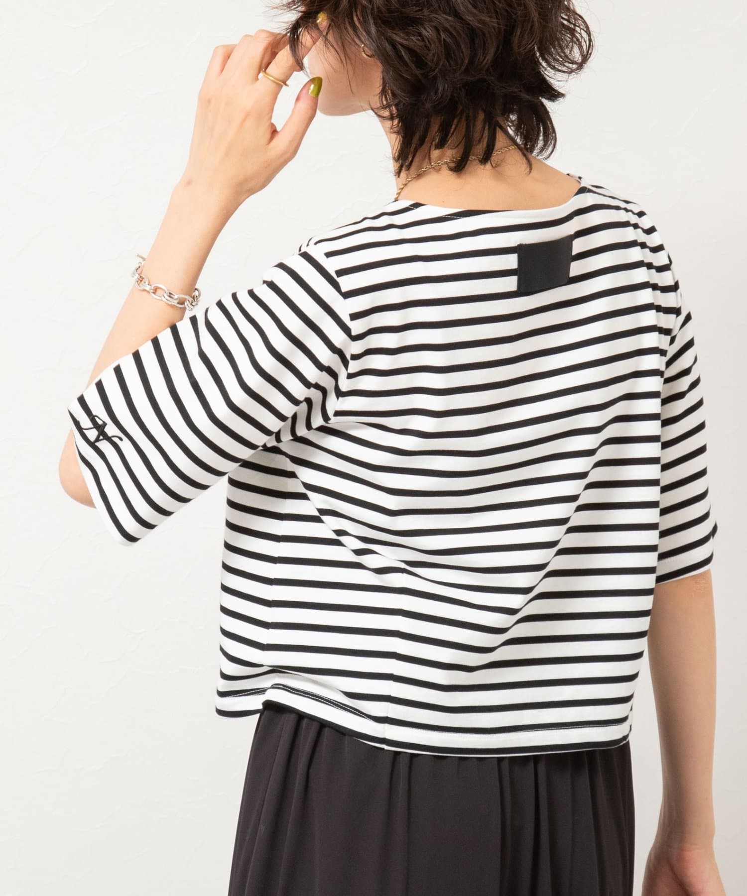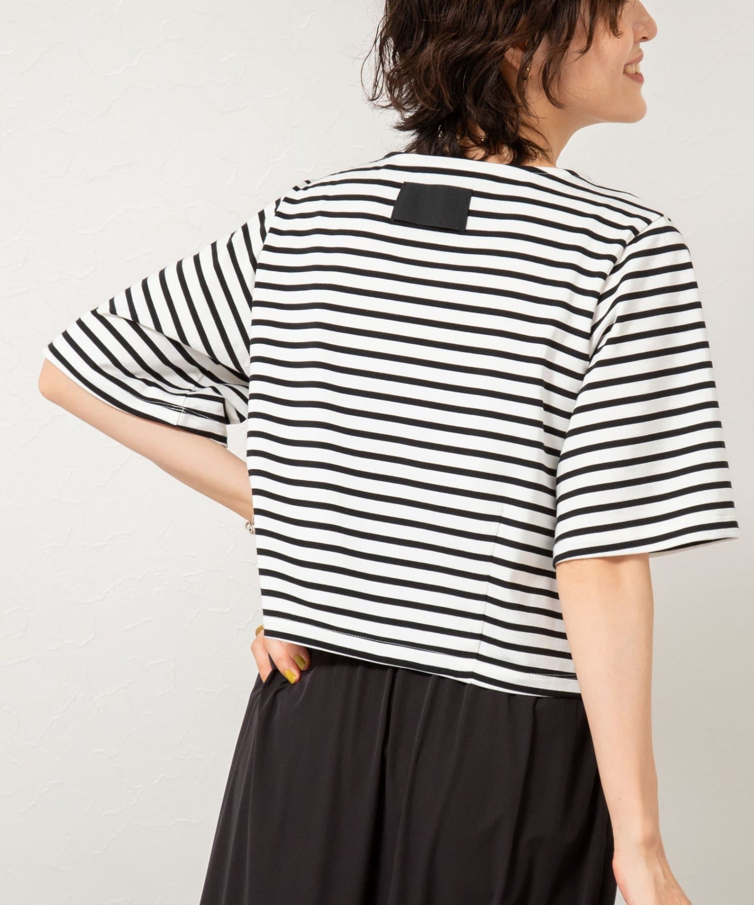 ・袖口の刺繍がポイントのショート丈Tシャツ
