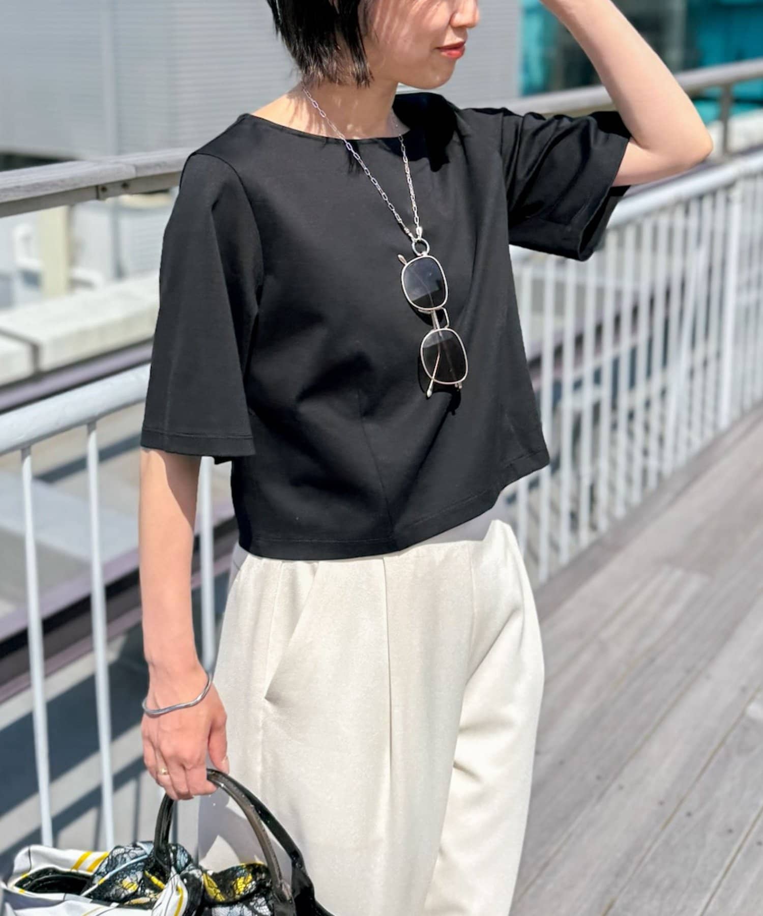 ・コンパクトな丈感、ダーツによるフォルム、袖の広がりなど細かなディテールにこだわった1枚