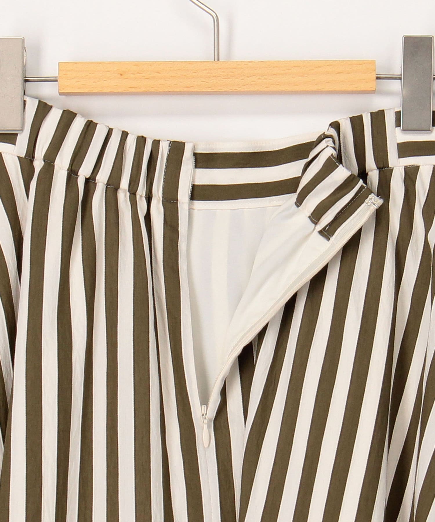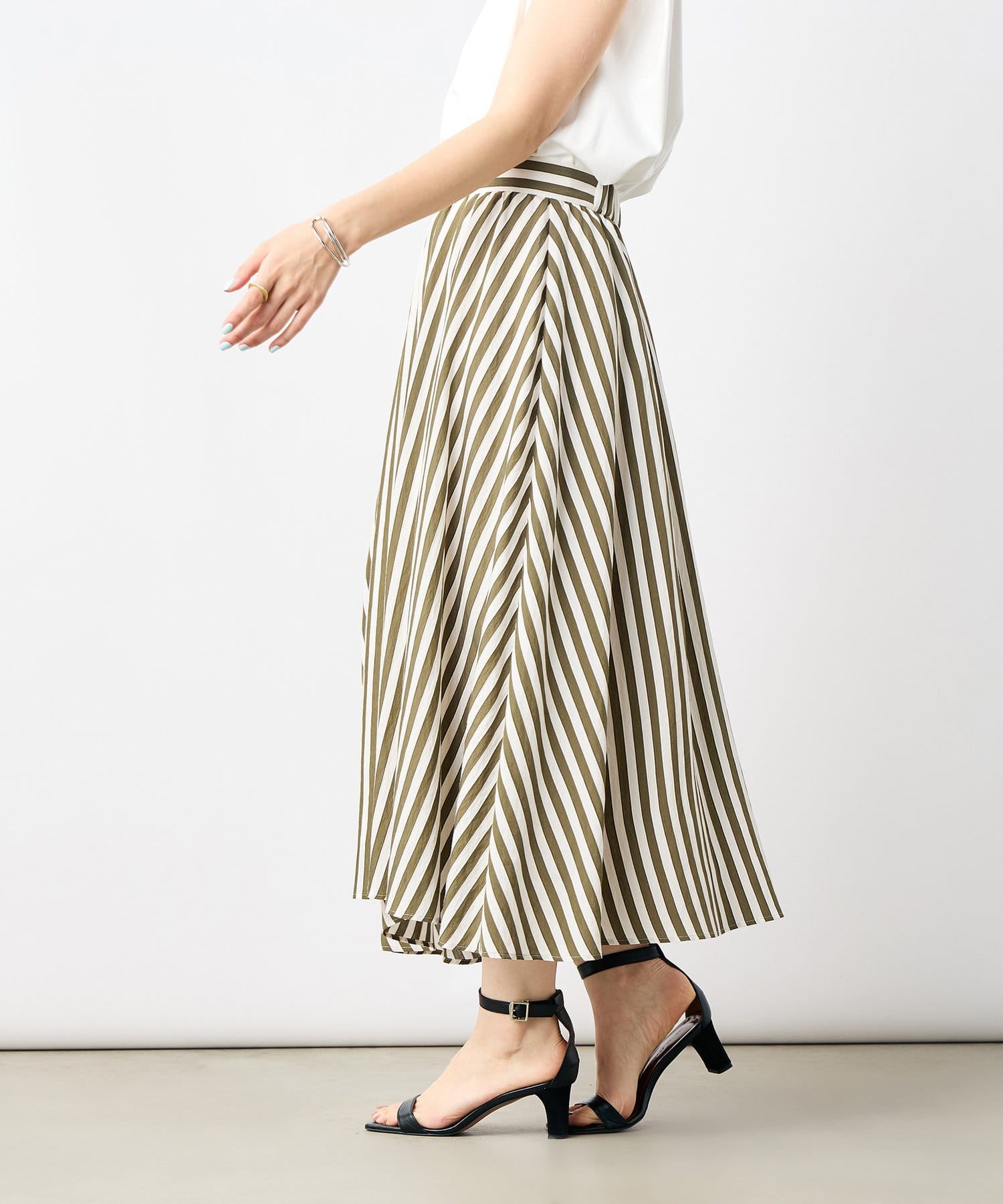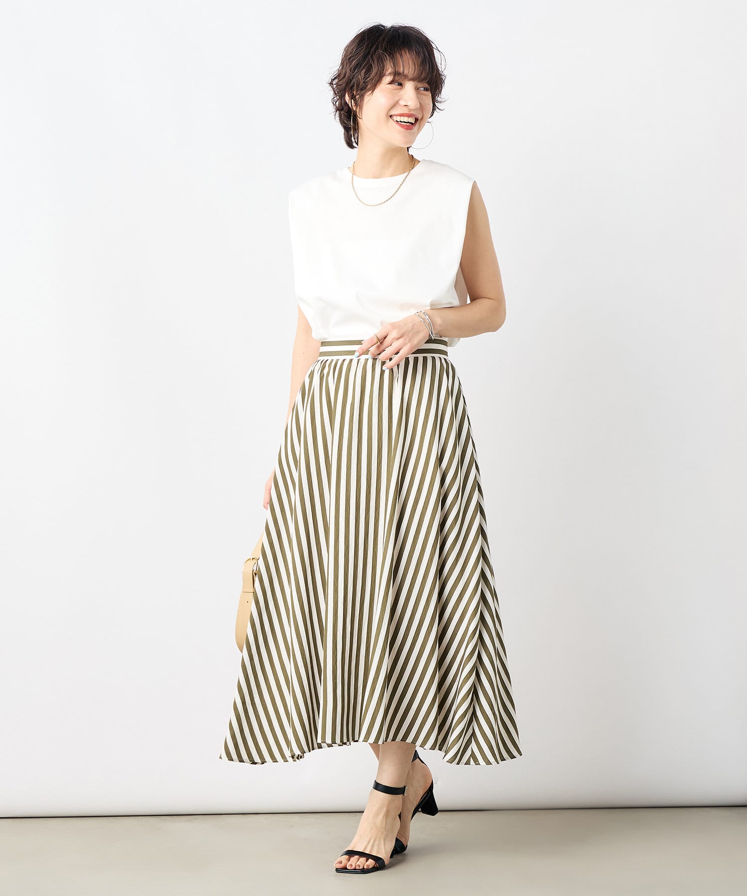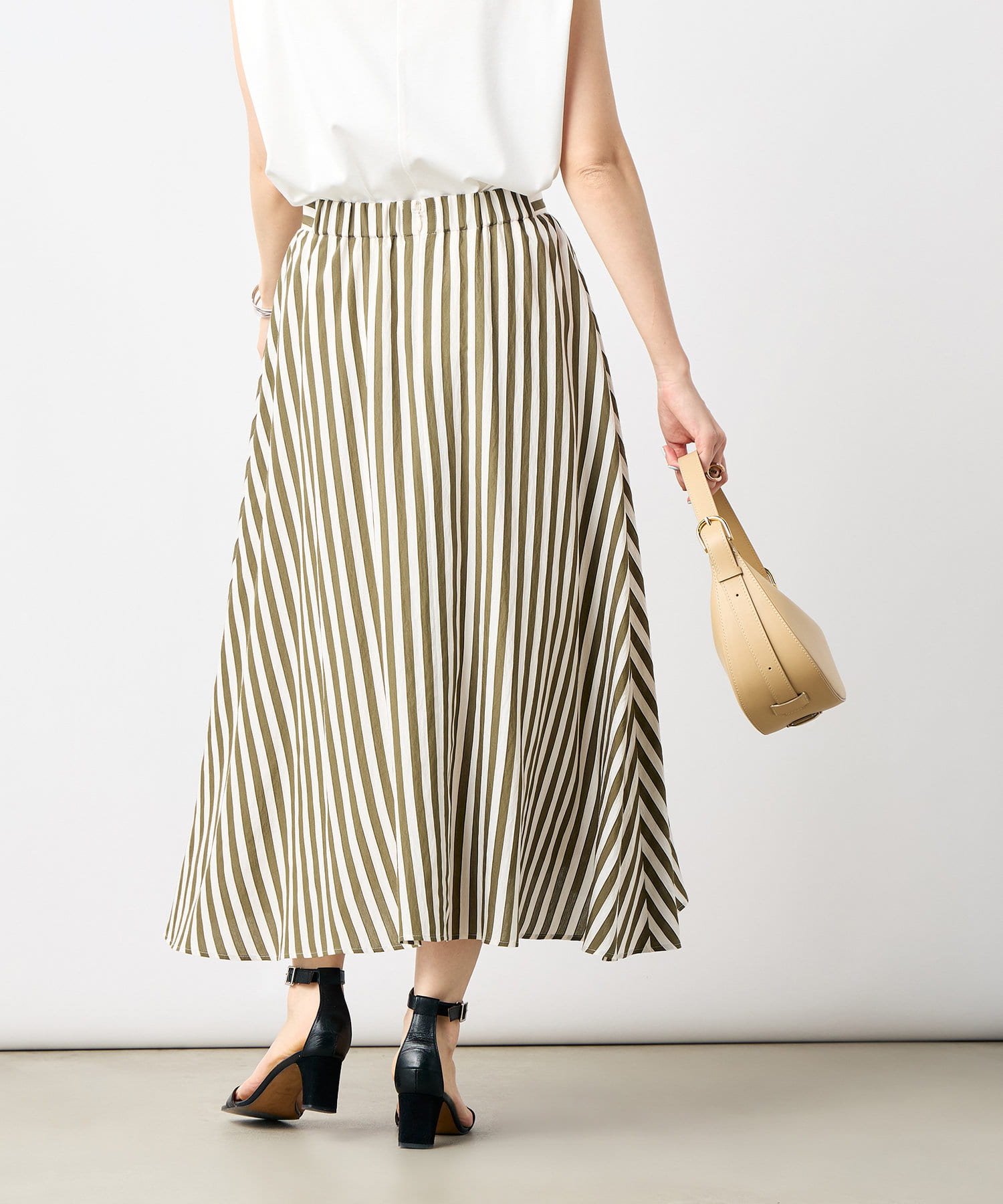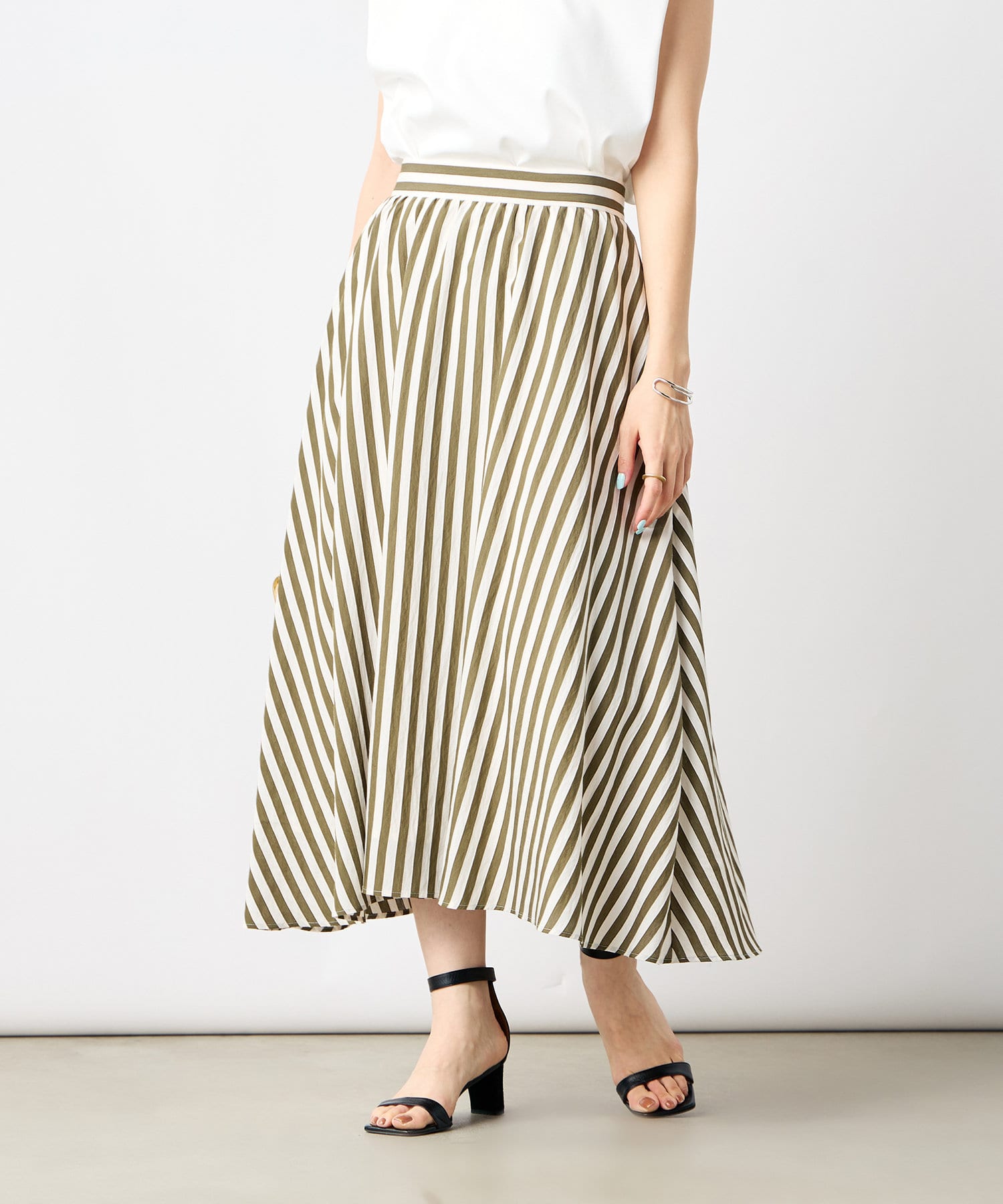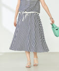 ・夏らしい爽やかさのあるストライプ柄のフレアスカート