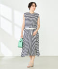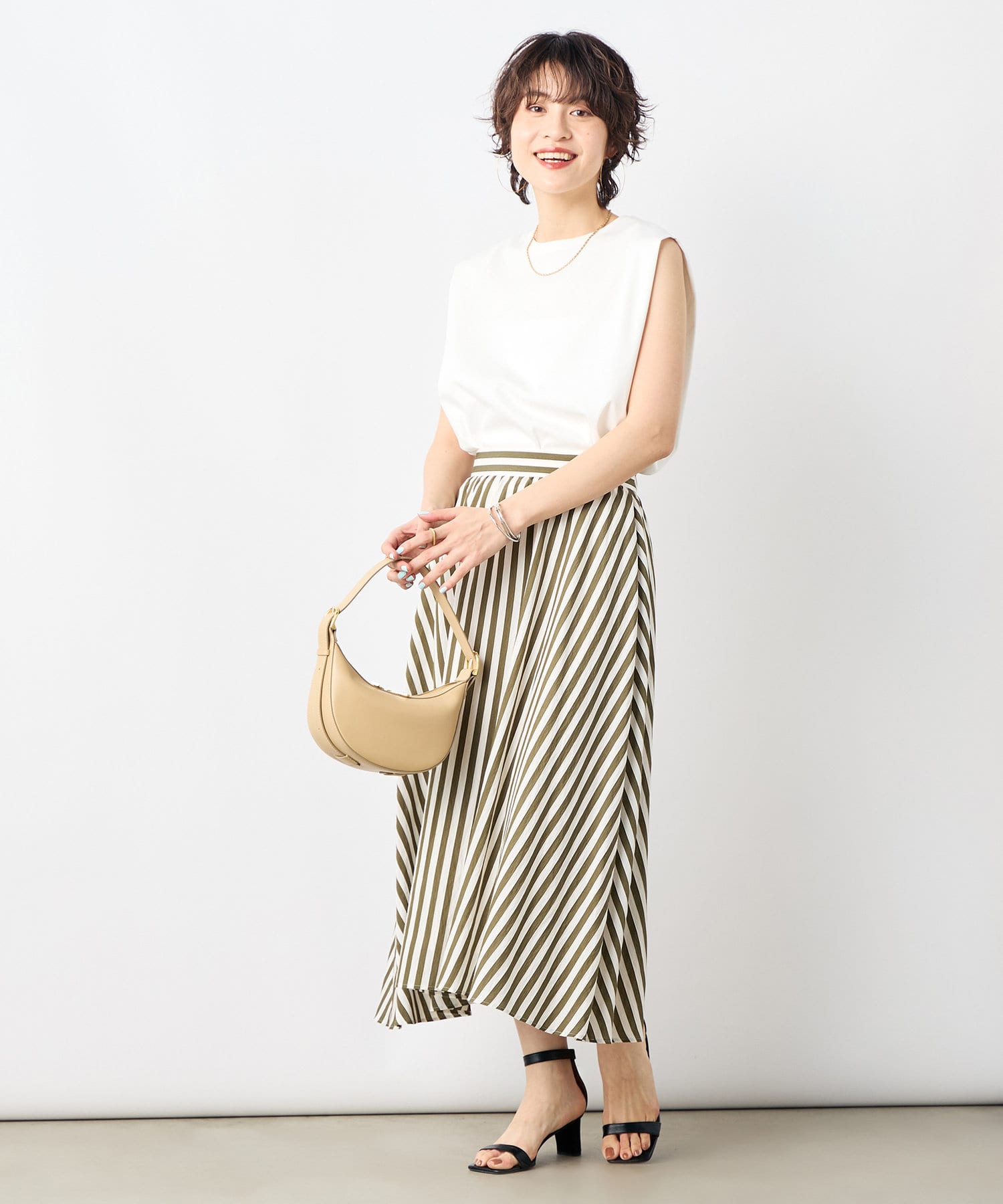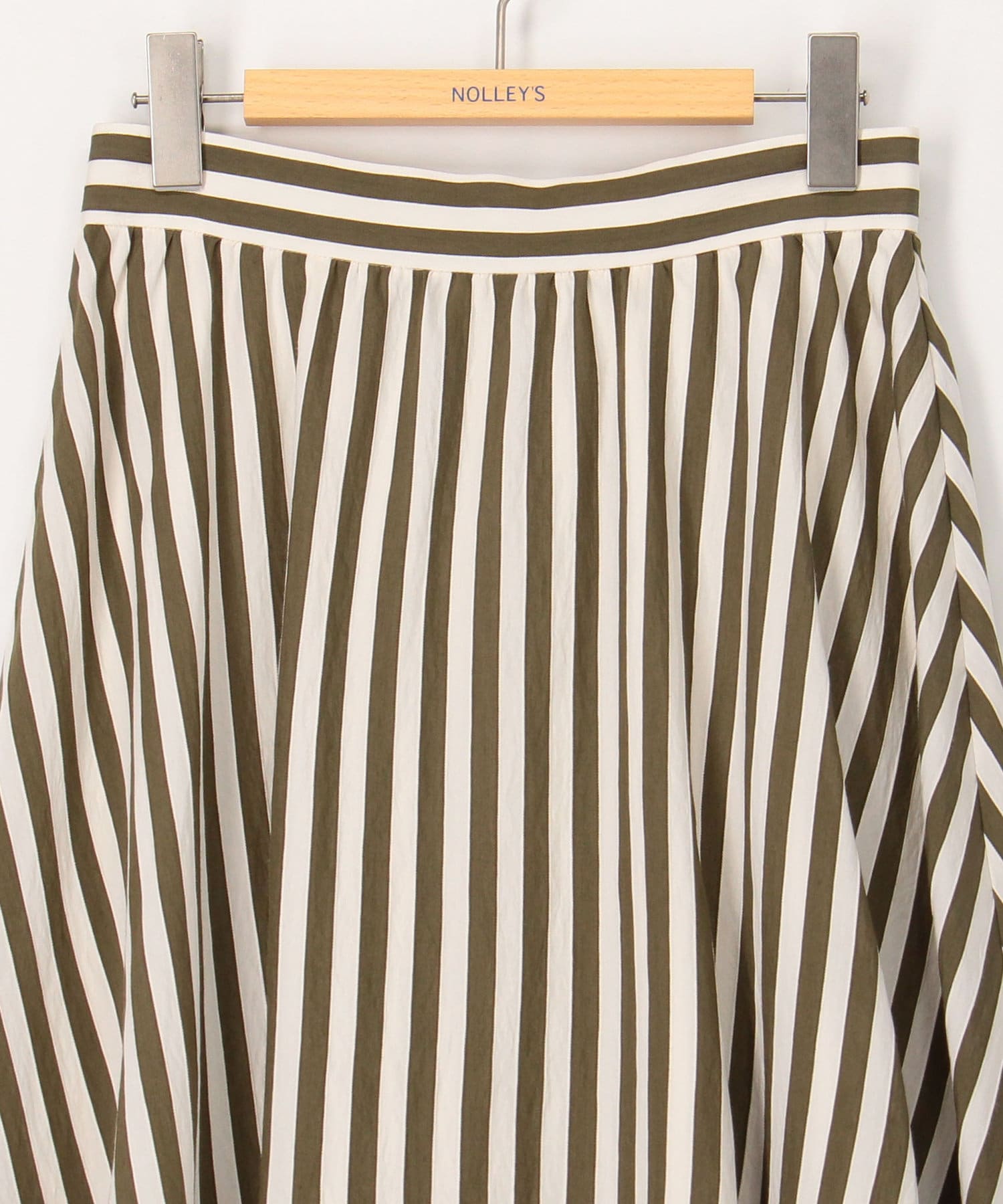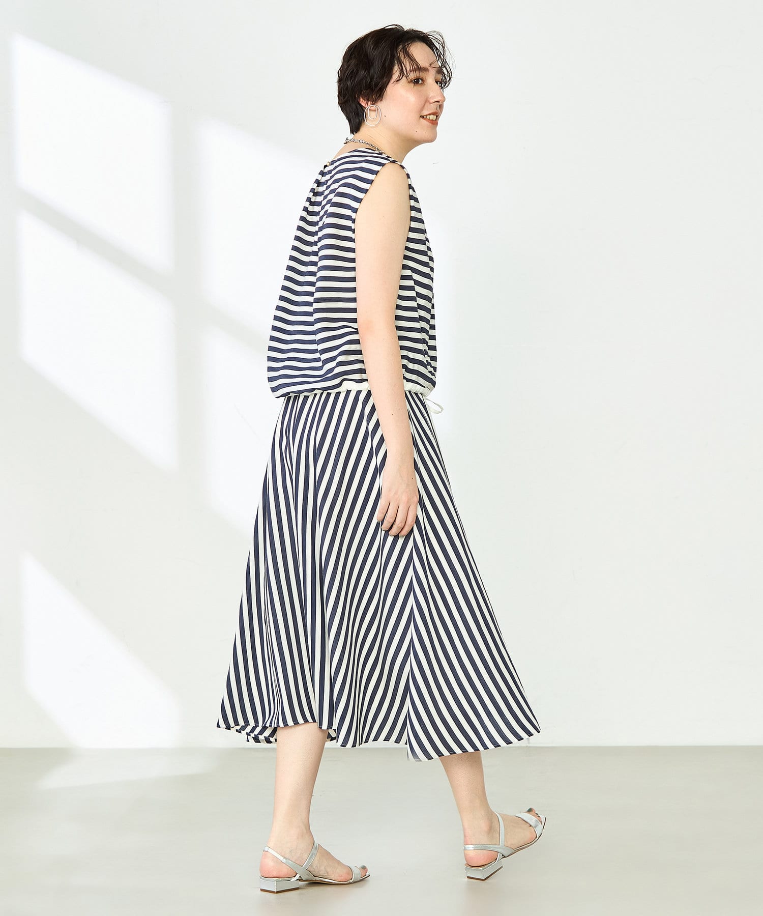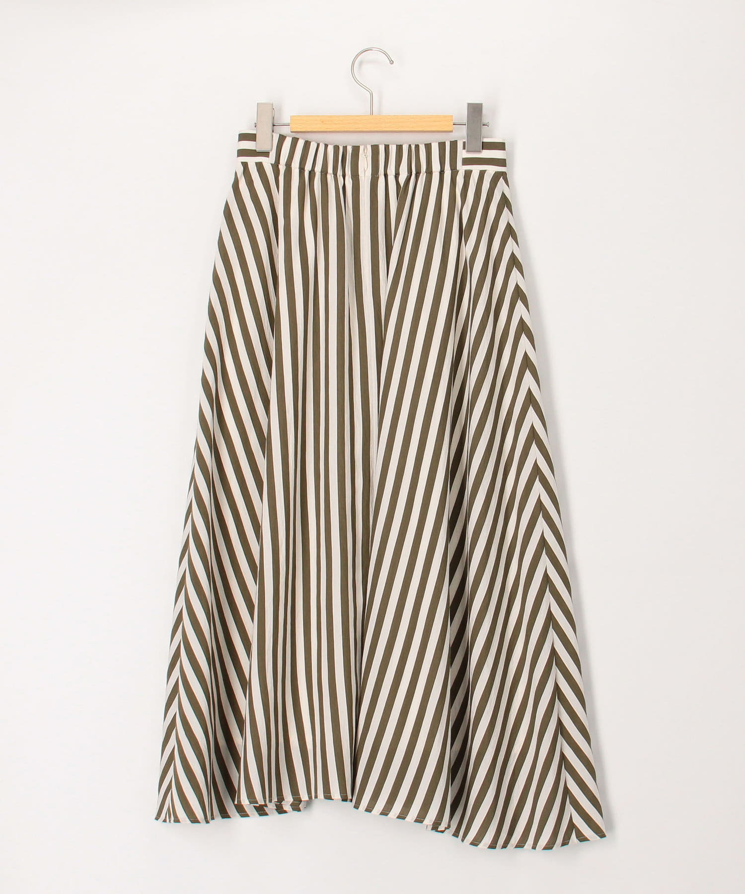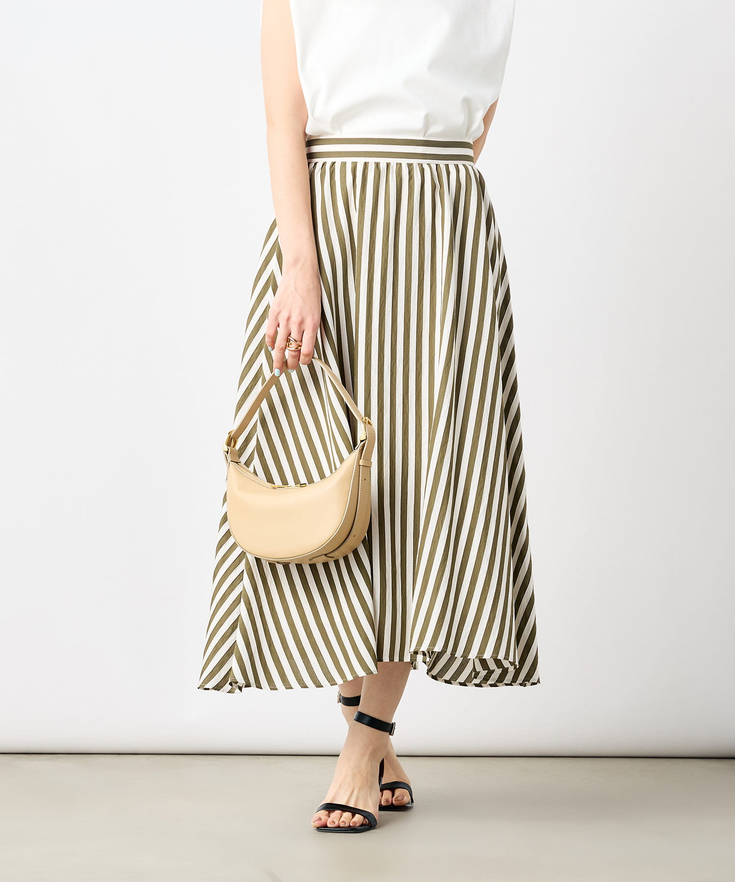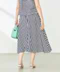 ・夏らしい爽やかさのあるストライプ柄のフレアスカート