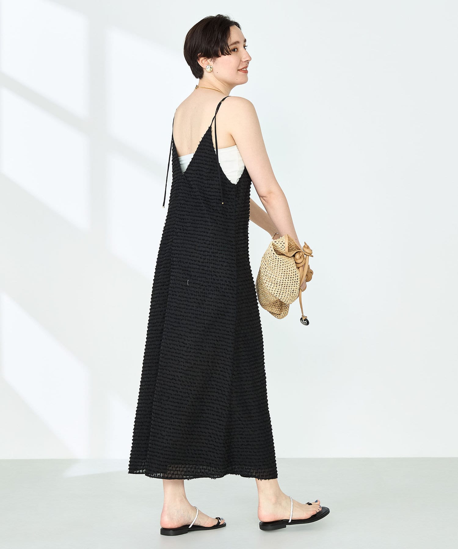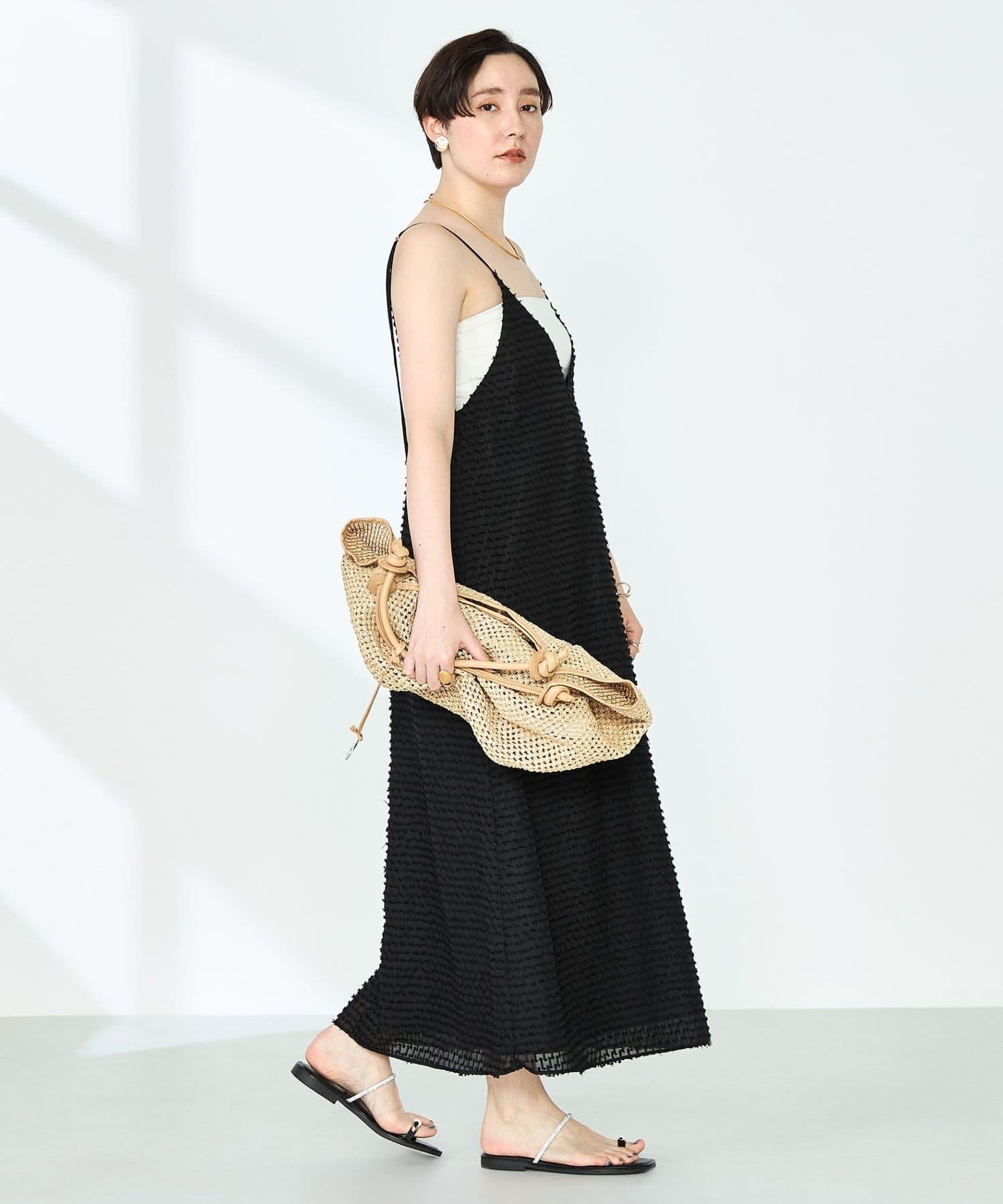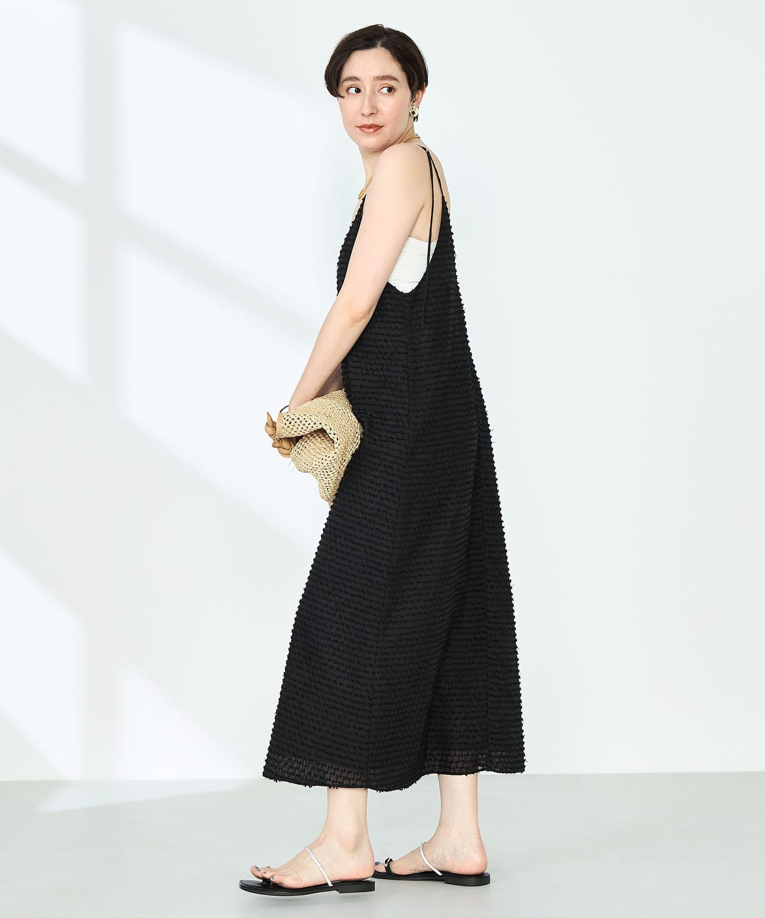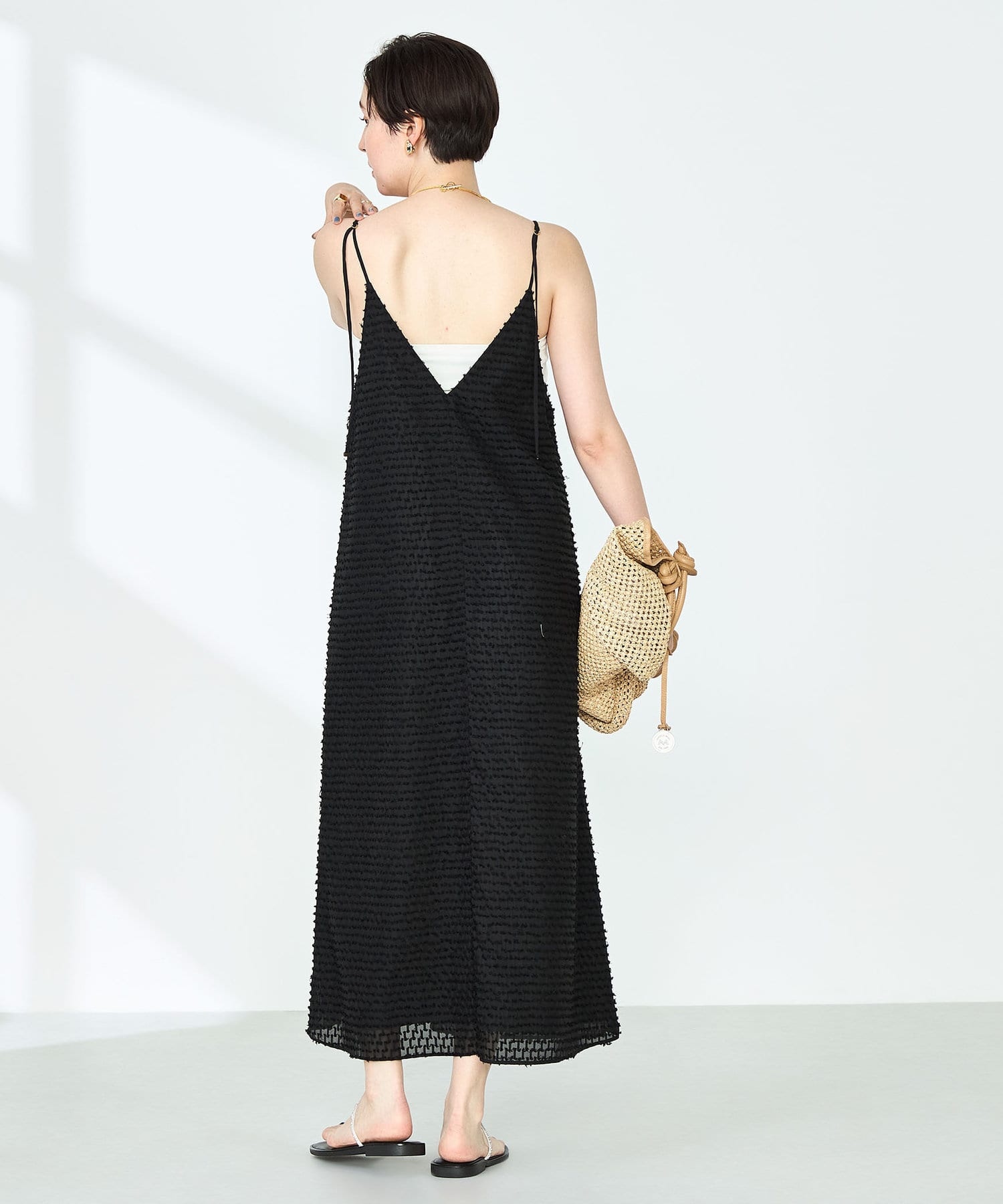 ・透け感のある素材に毛足のあるジャガードを施したキャミワンピース
