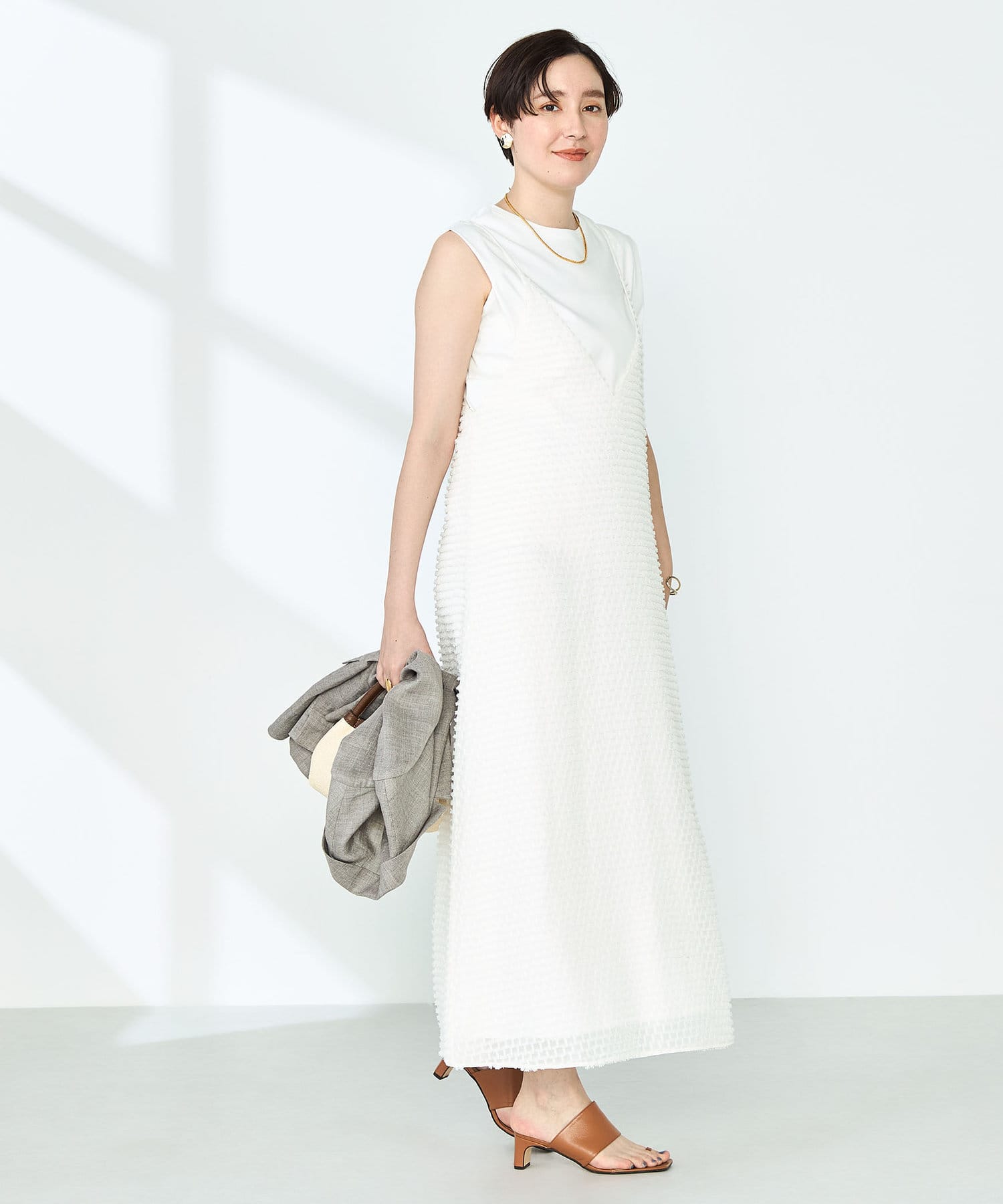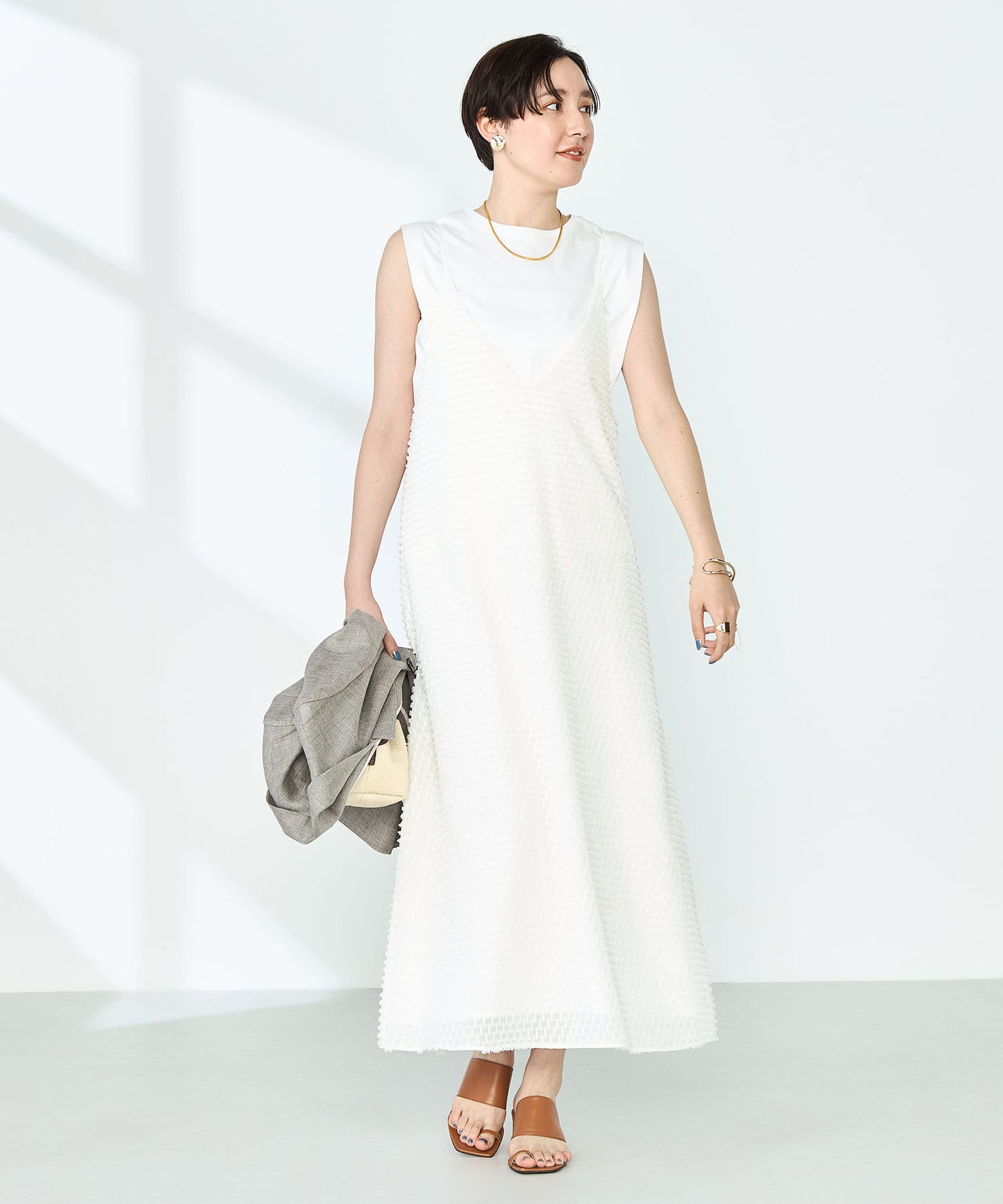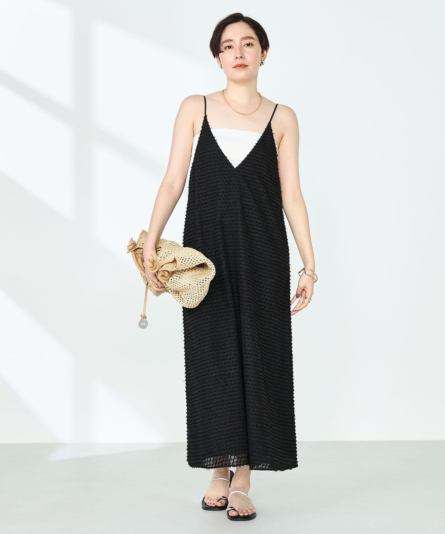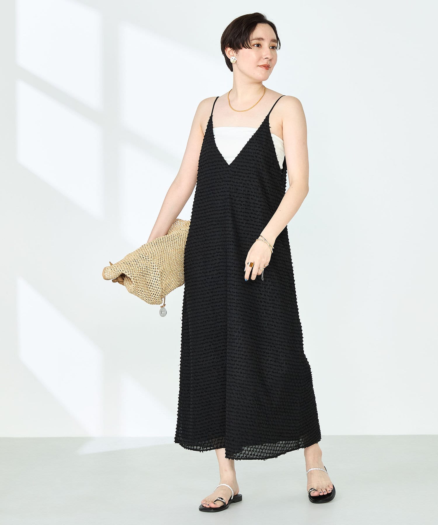 ・透け感のある素材に毛足のあるジャガードを施したキャミワンピース