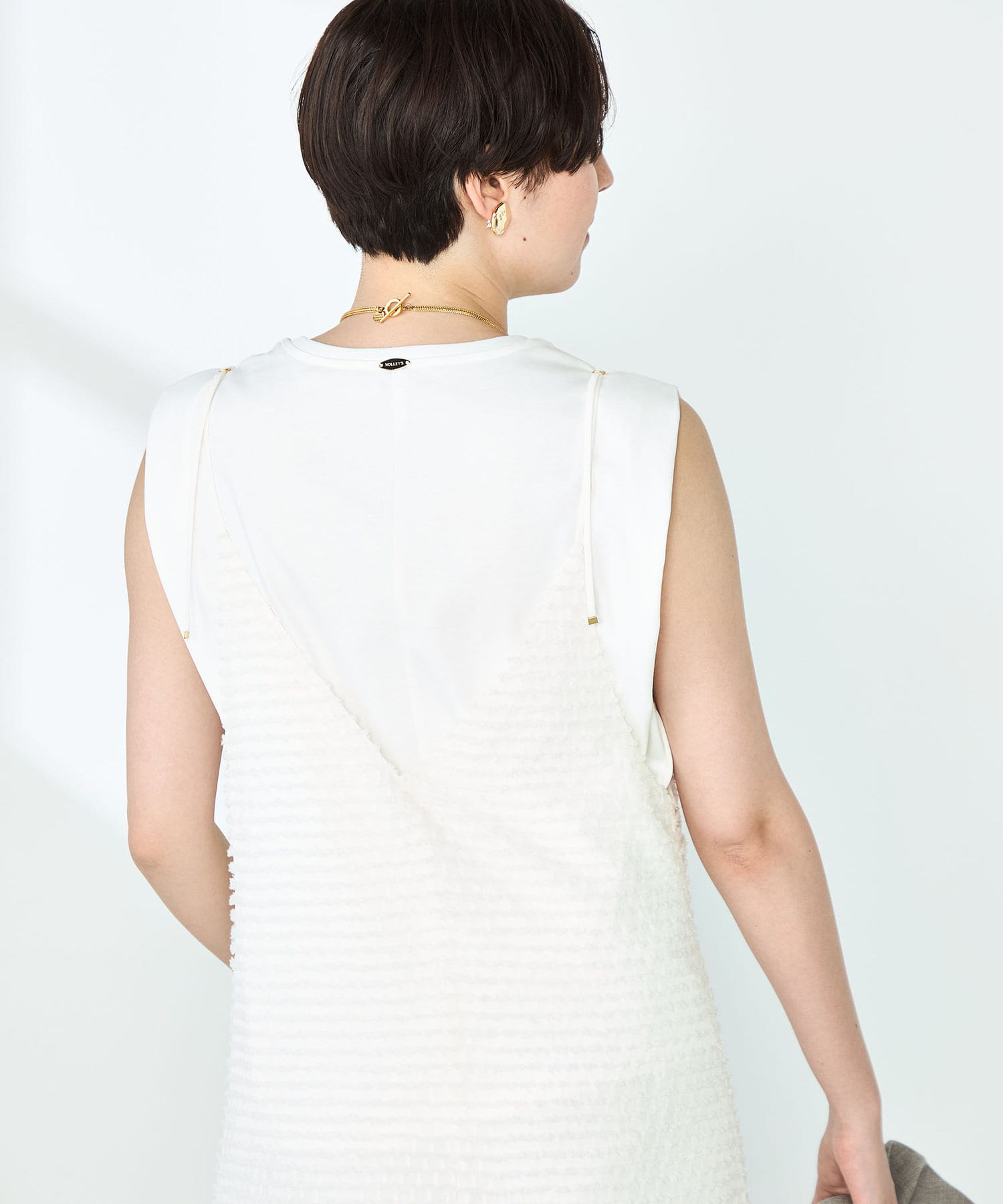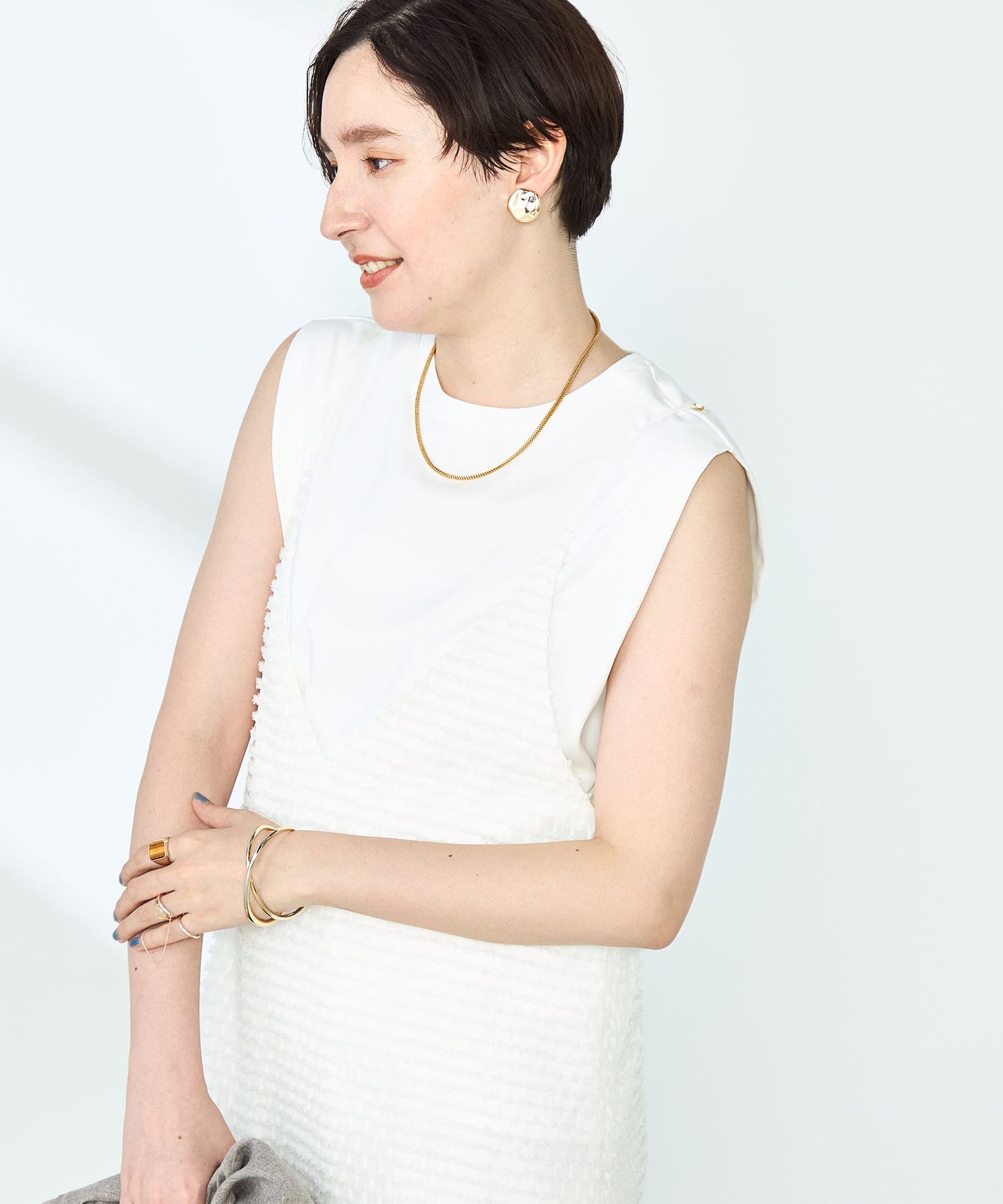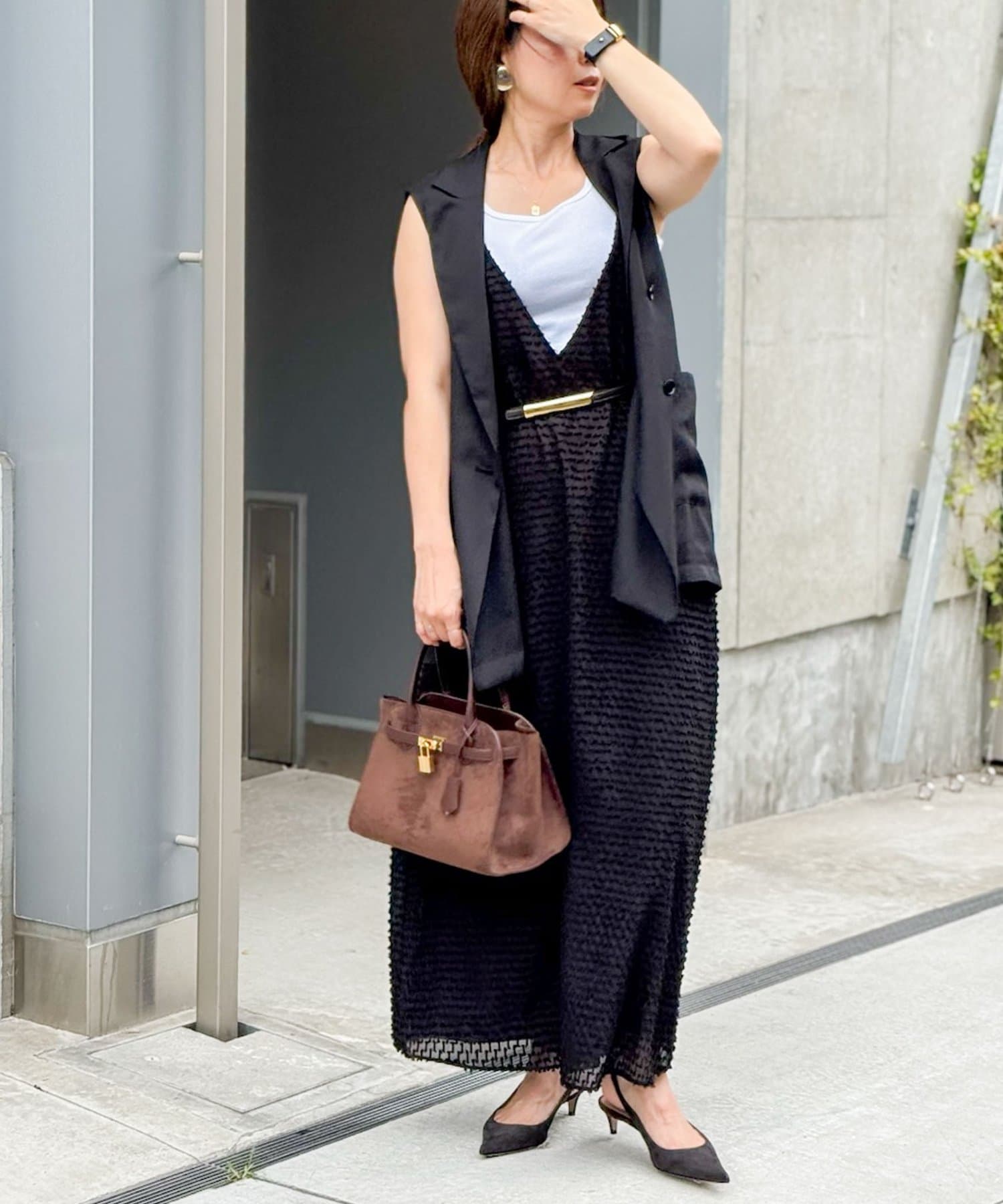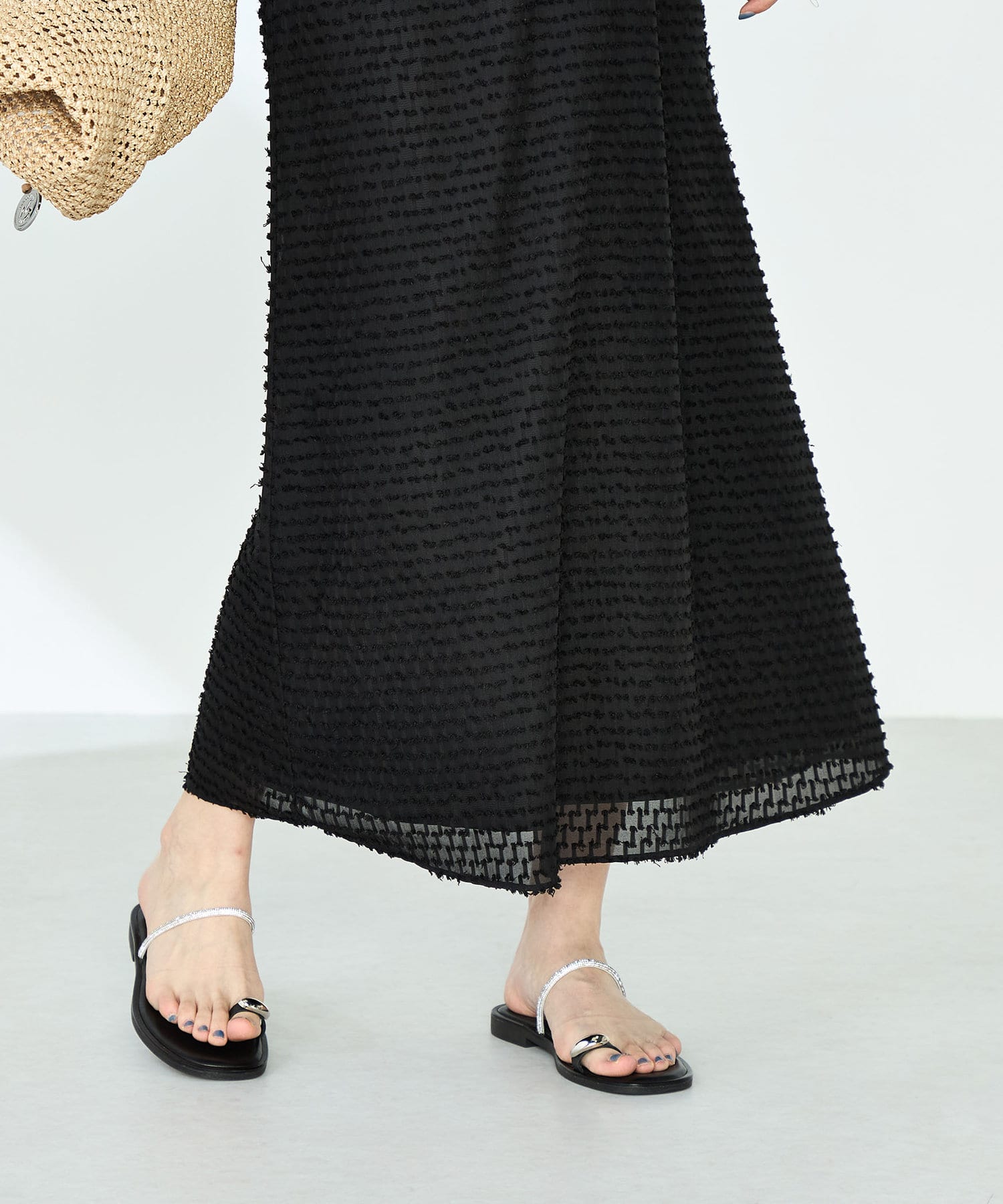・透け感のある素材に毛足のあるジャガードを施したキャミワンピース
