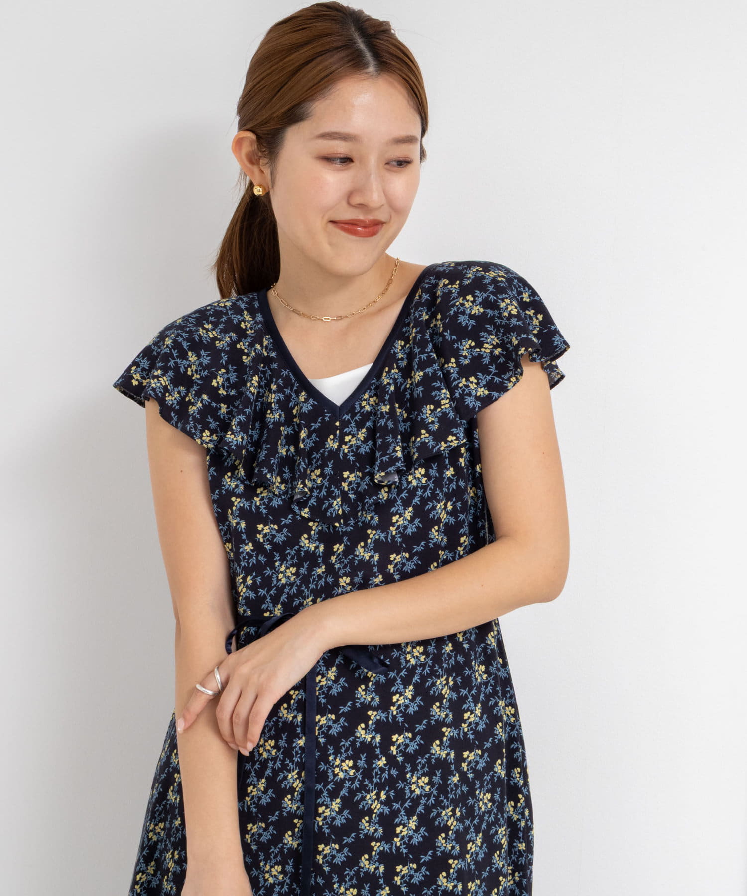 ウォッシャブルヴィーガンフラワープリントワンピース