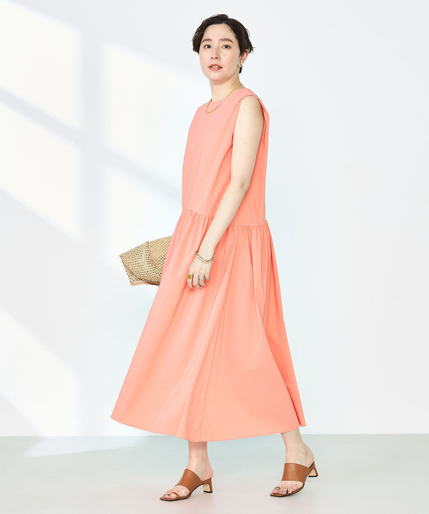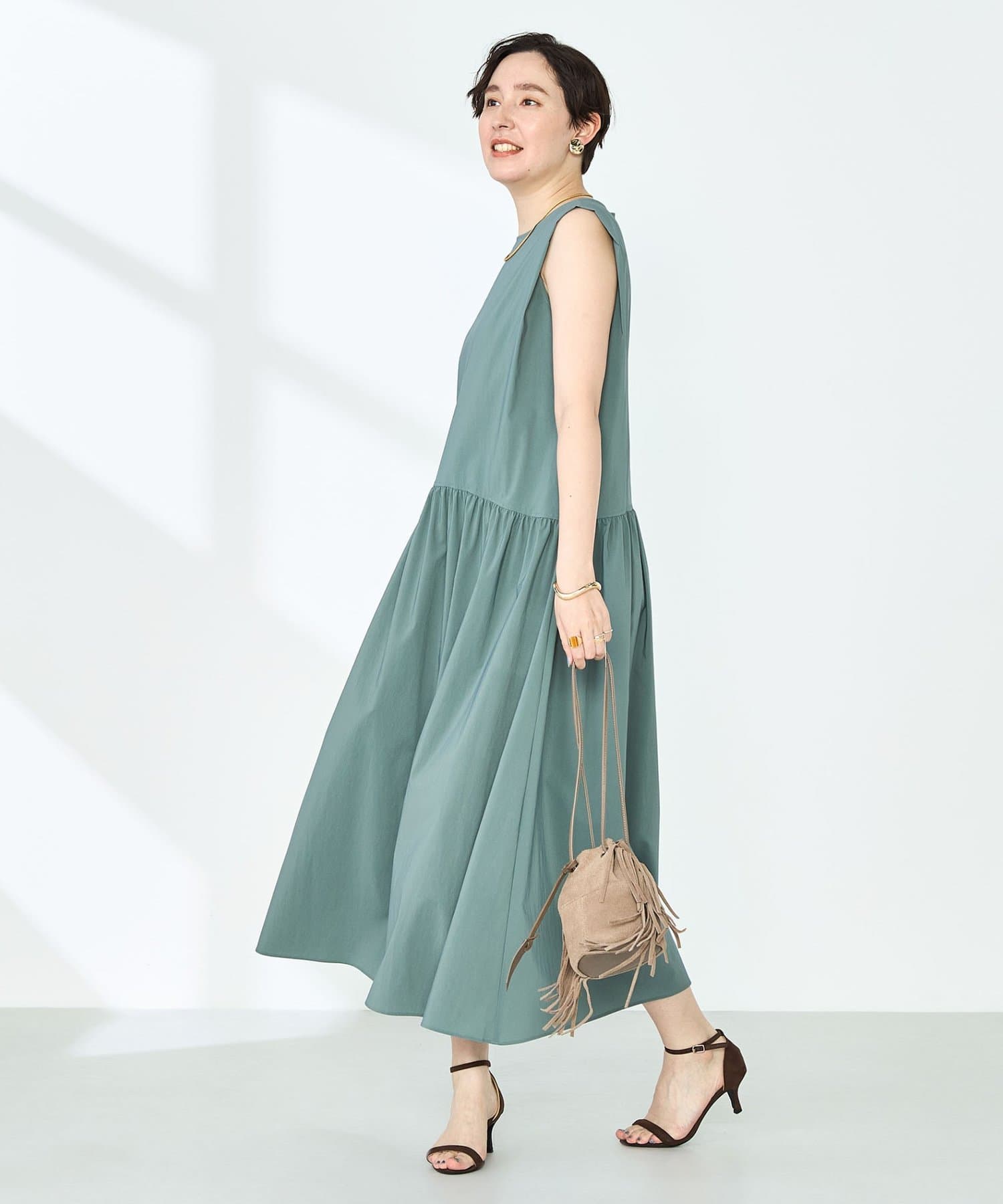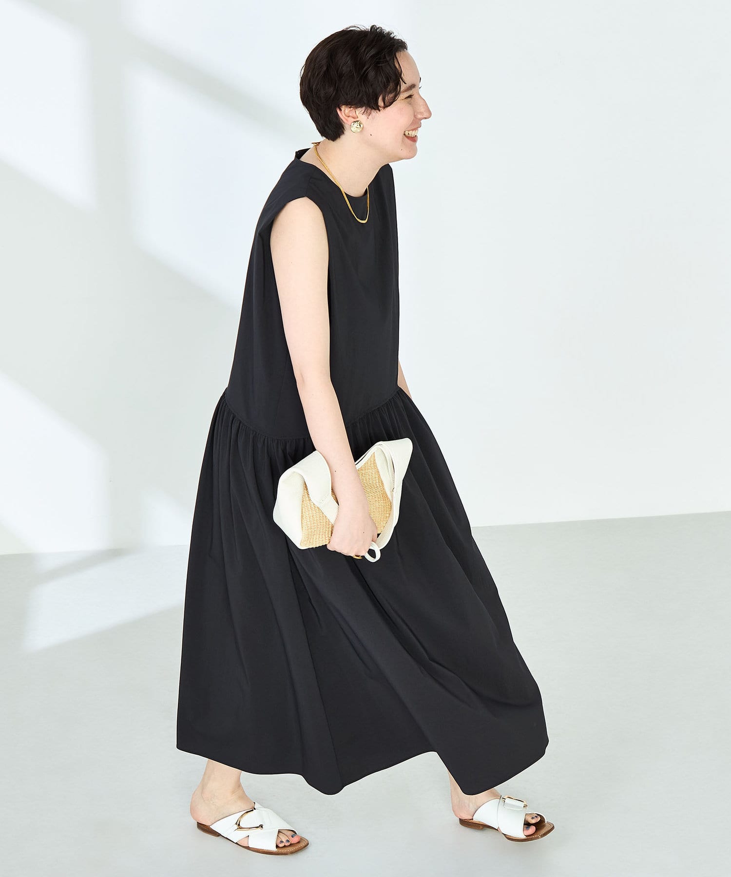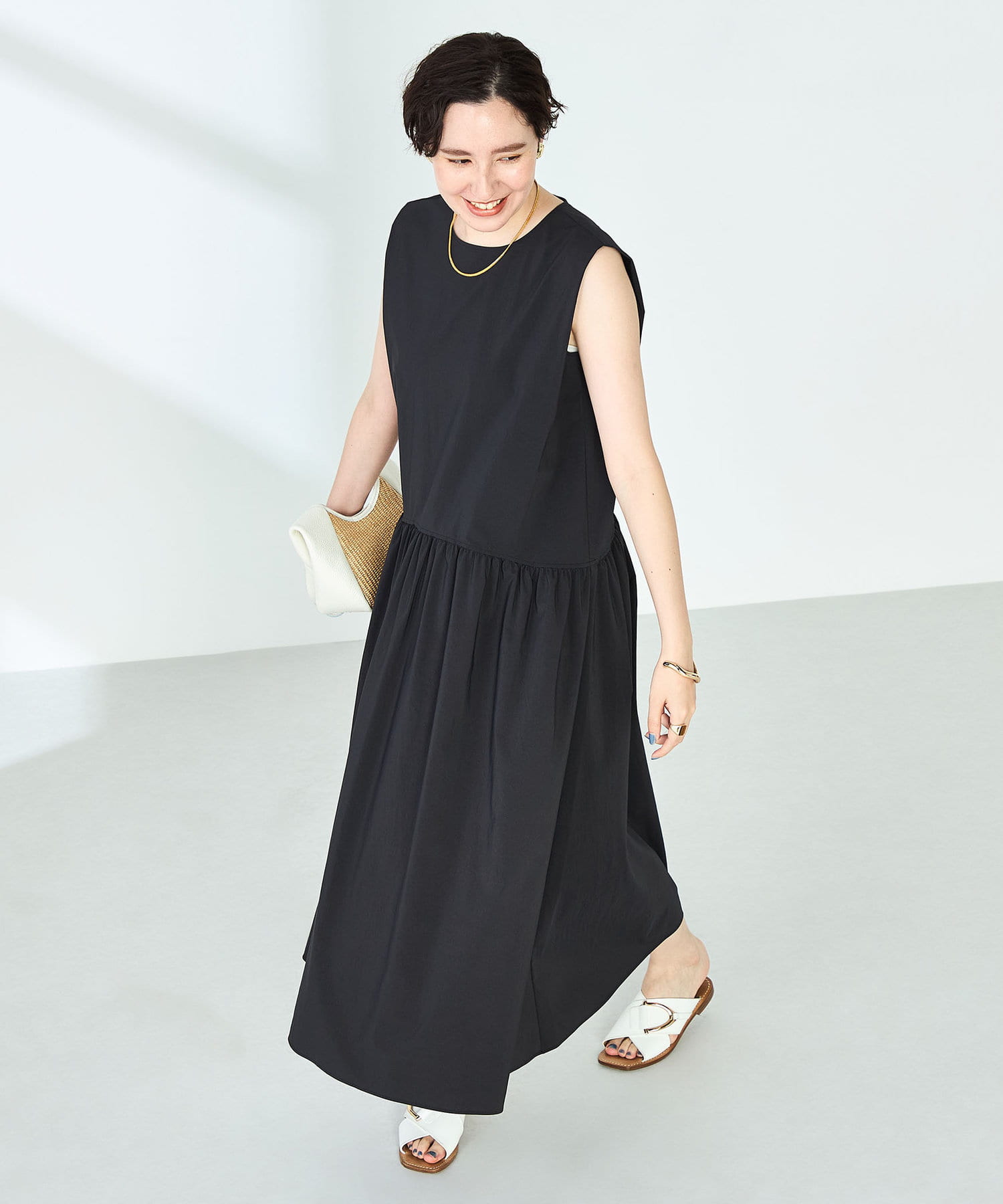 ・肩タック入りで気になる腕廻りをカバーしてくれるギャザー入りワンピース
