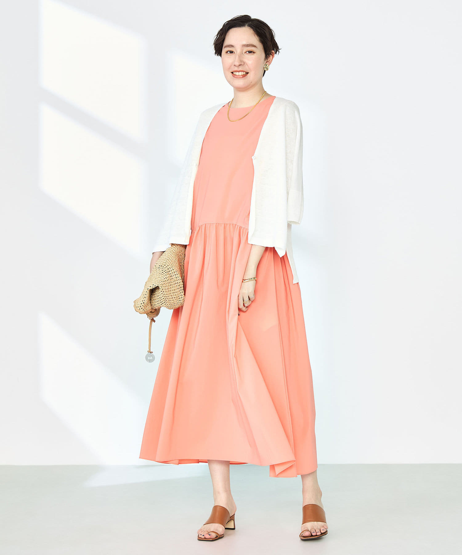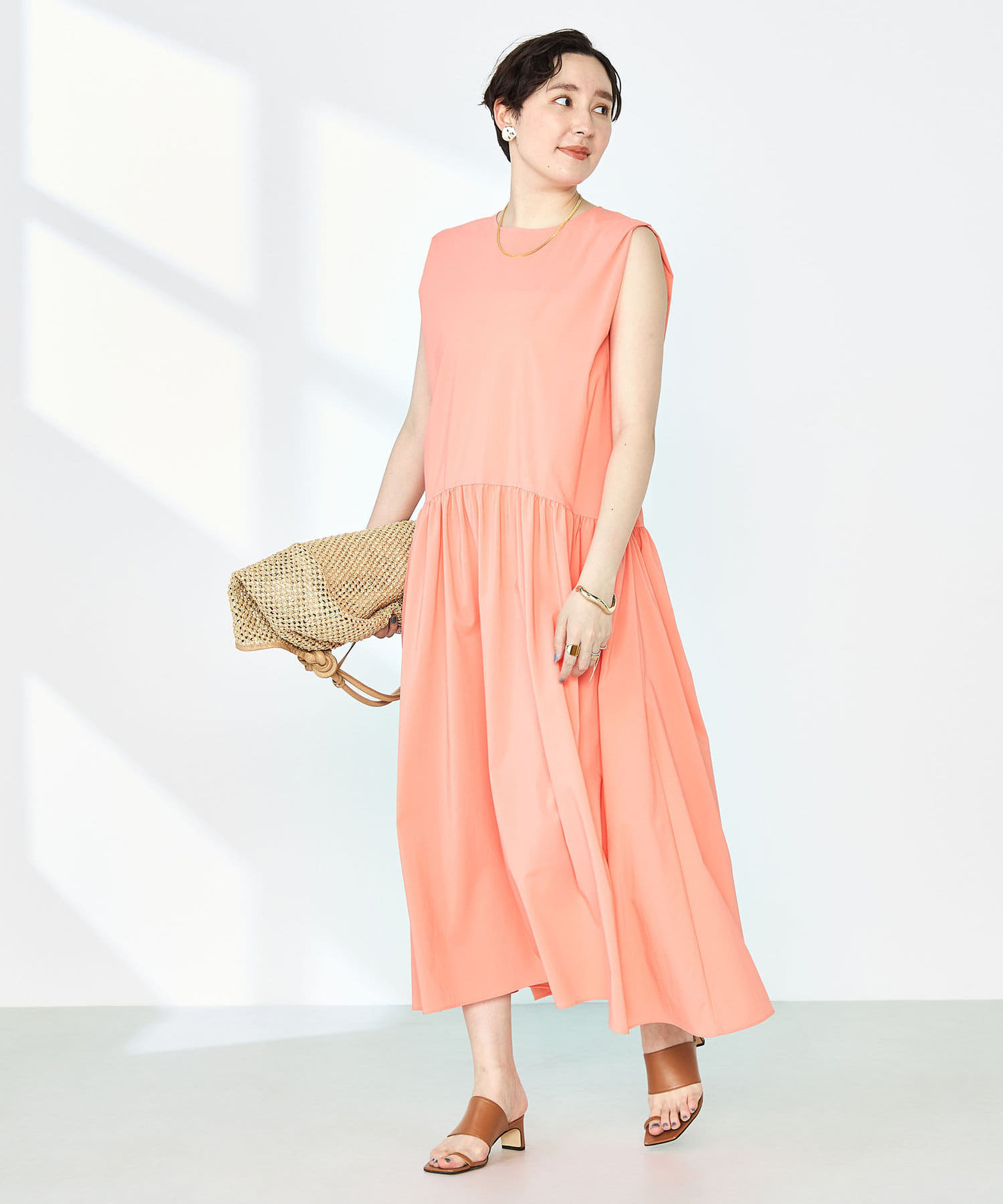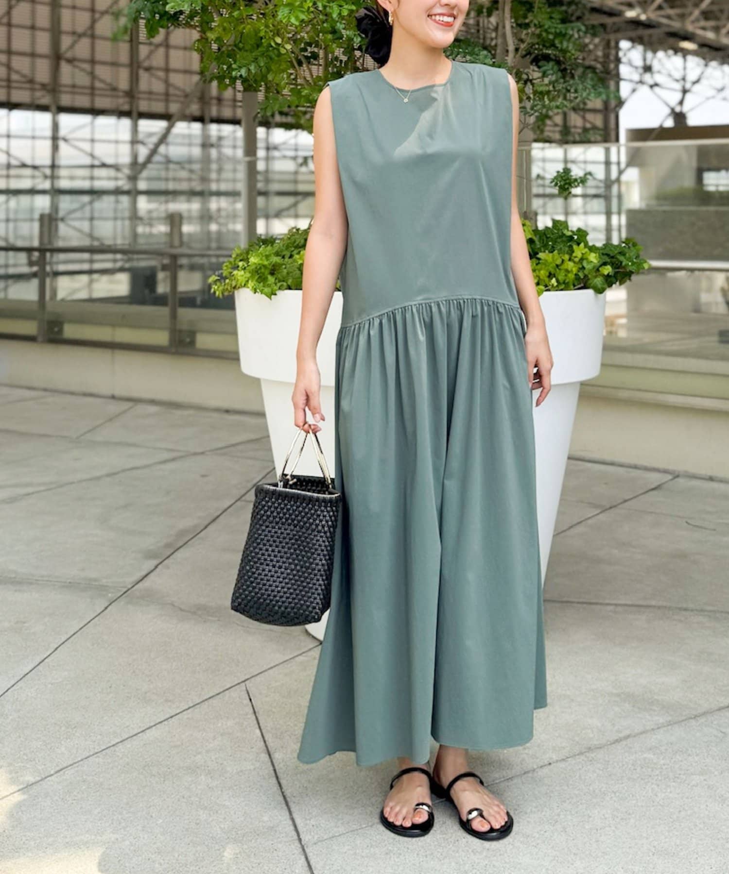 ・肩タック入りで気になる腕廻りをカバーしてくれるギャザー入りワンピース