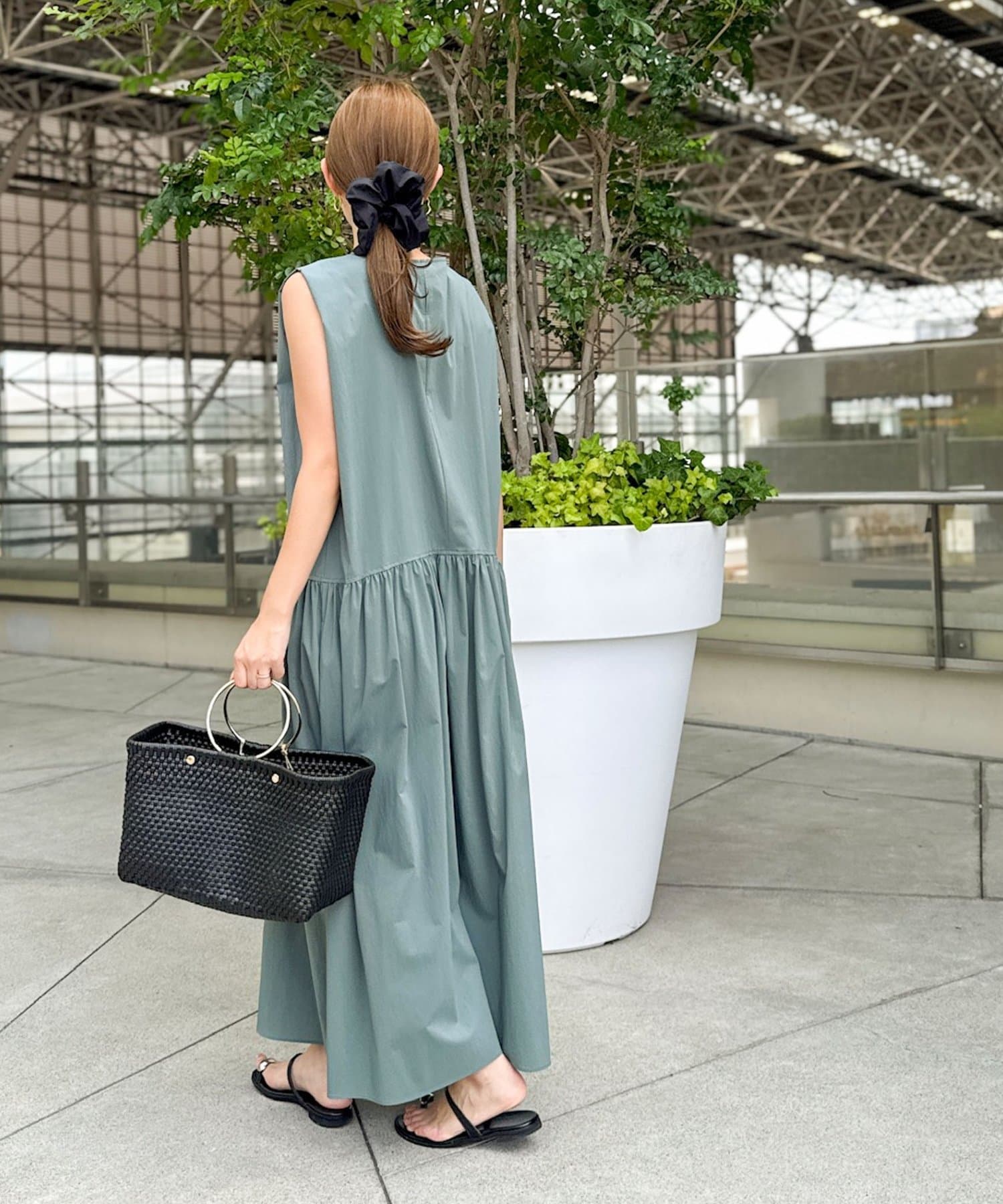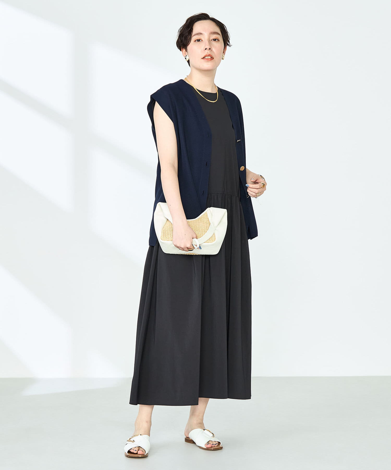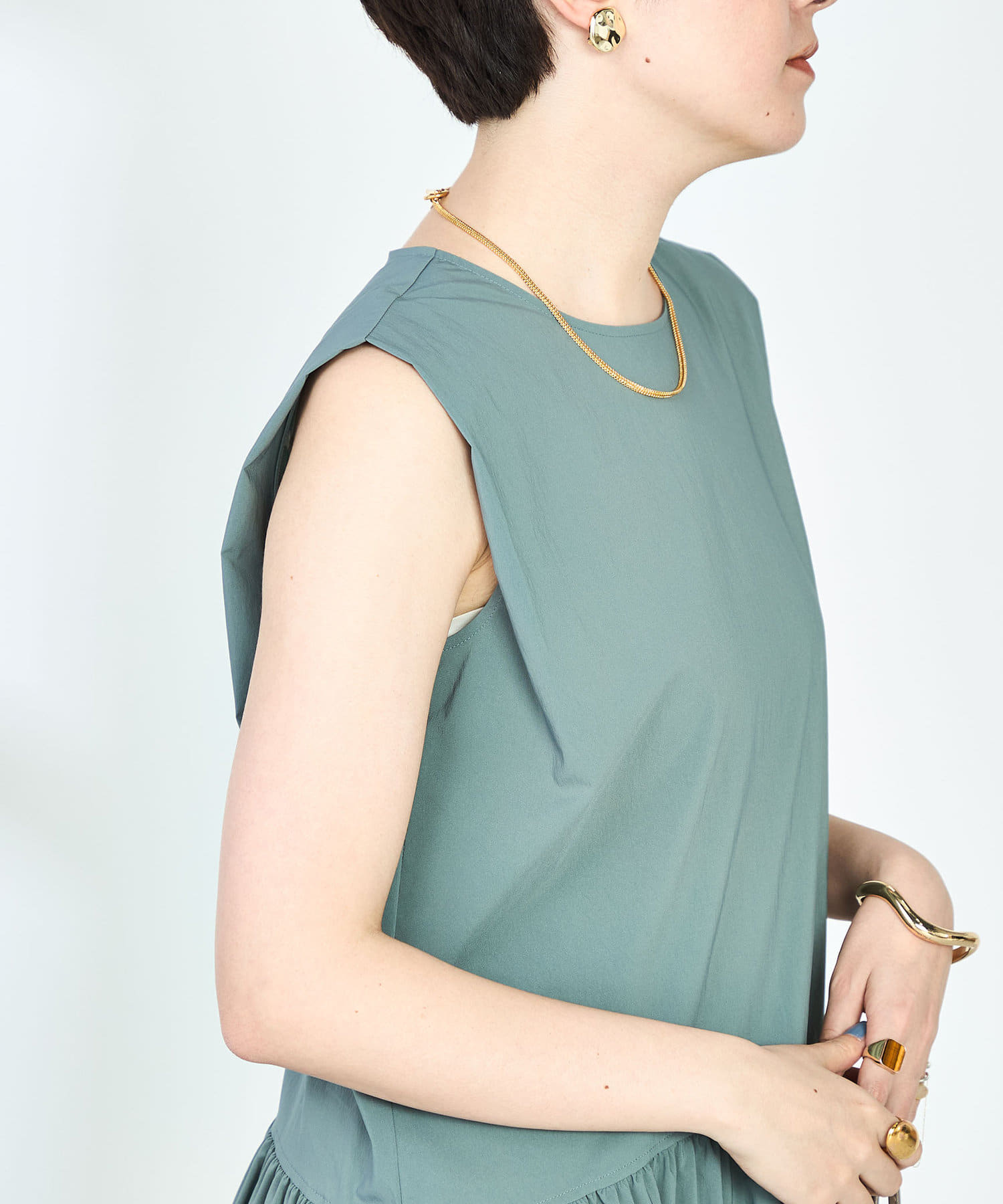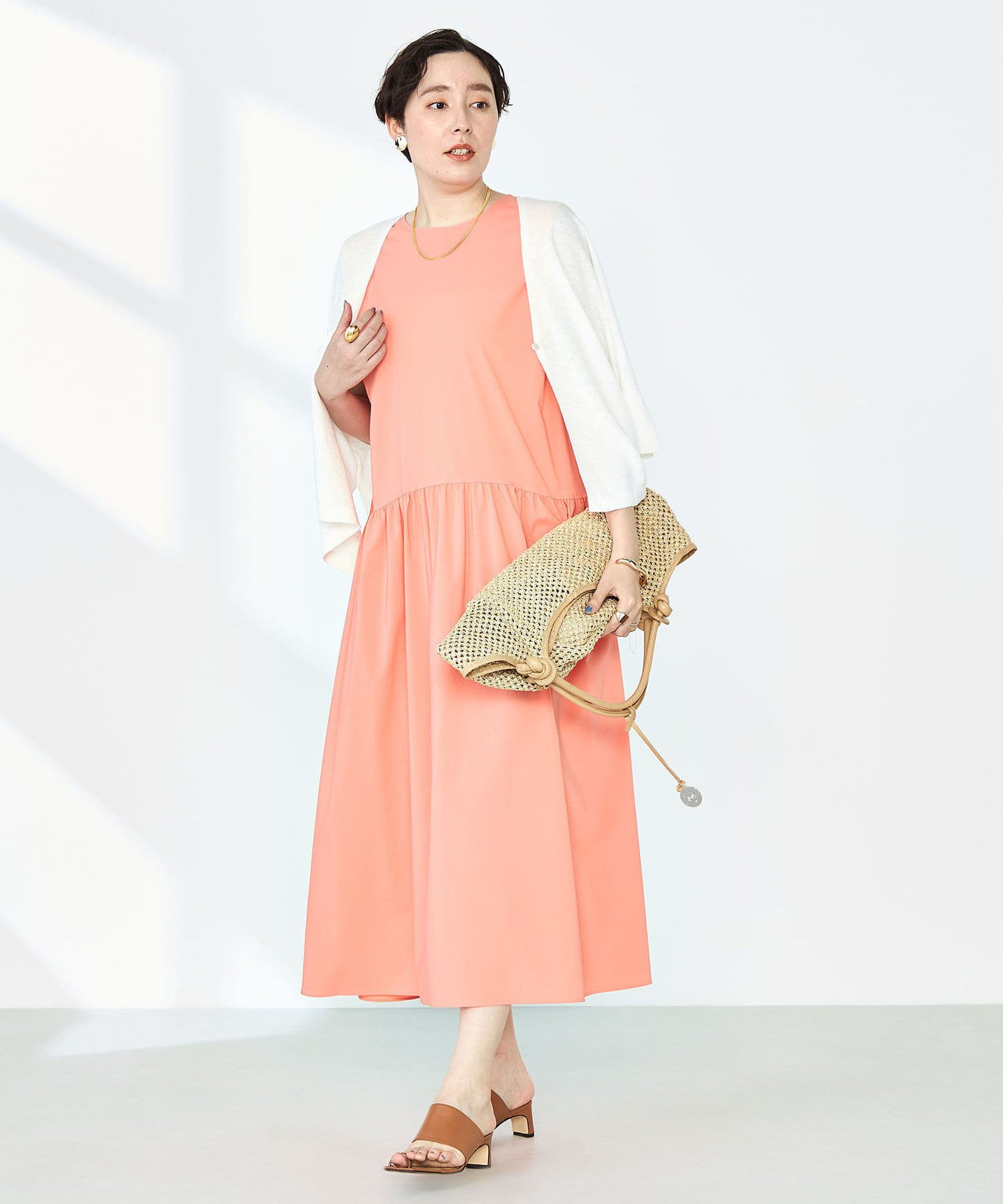 ・肩タック入りで気になる腕廻りをカバーしてくれるギャザー入りワンピース